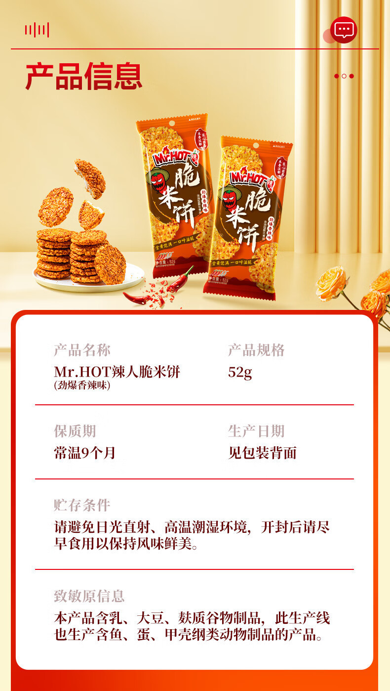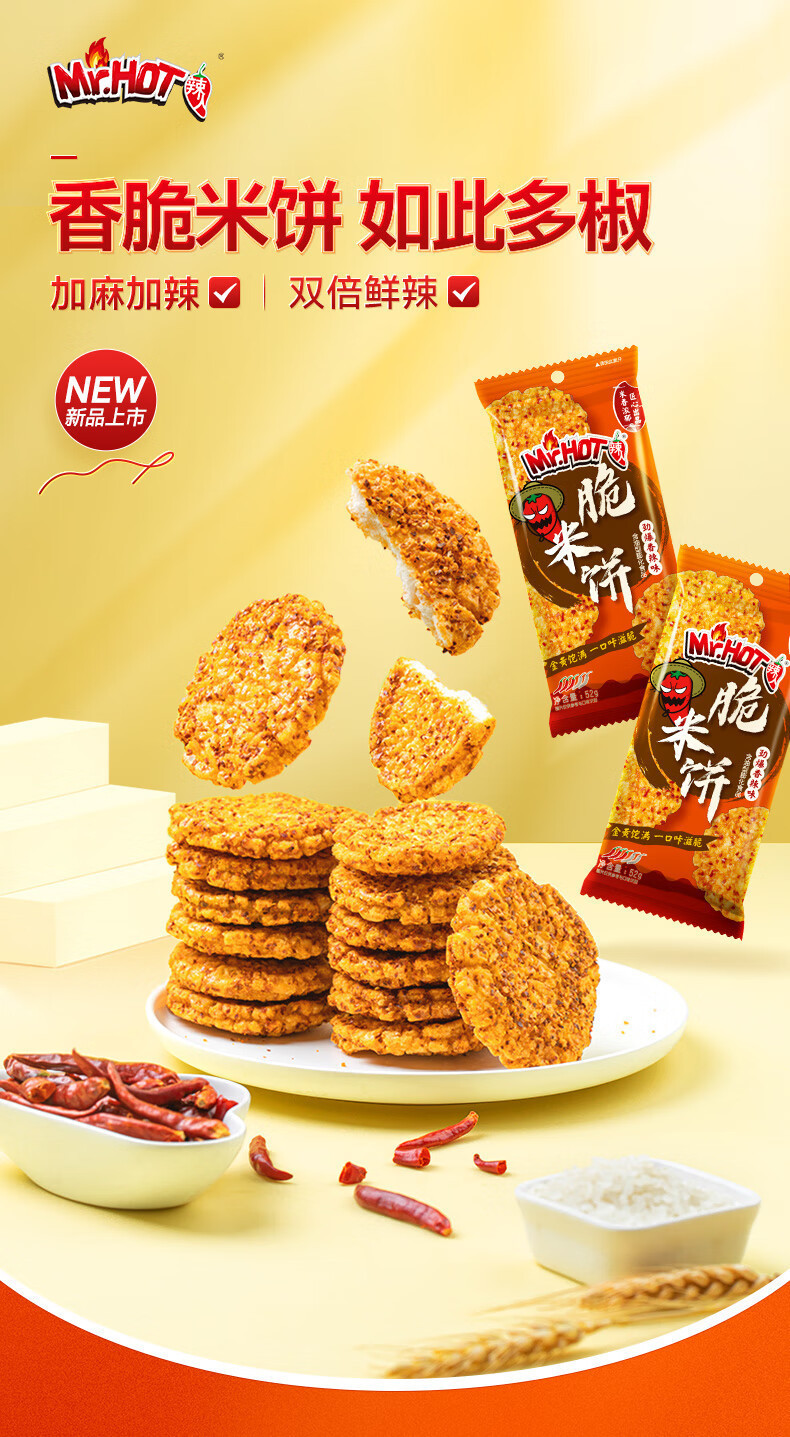 旺旺Mr.Ho大米饼52g香辣味辣人脆米饼劲爆香辣味零食小吃膨化零食