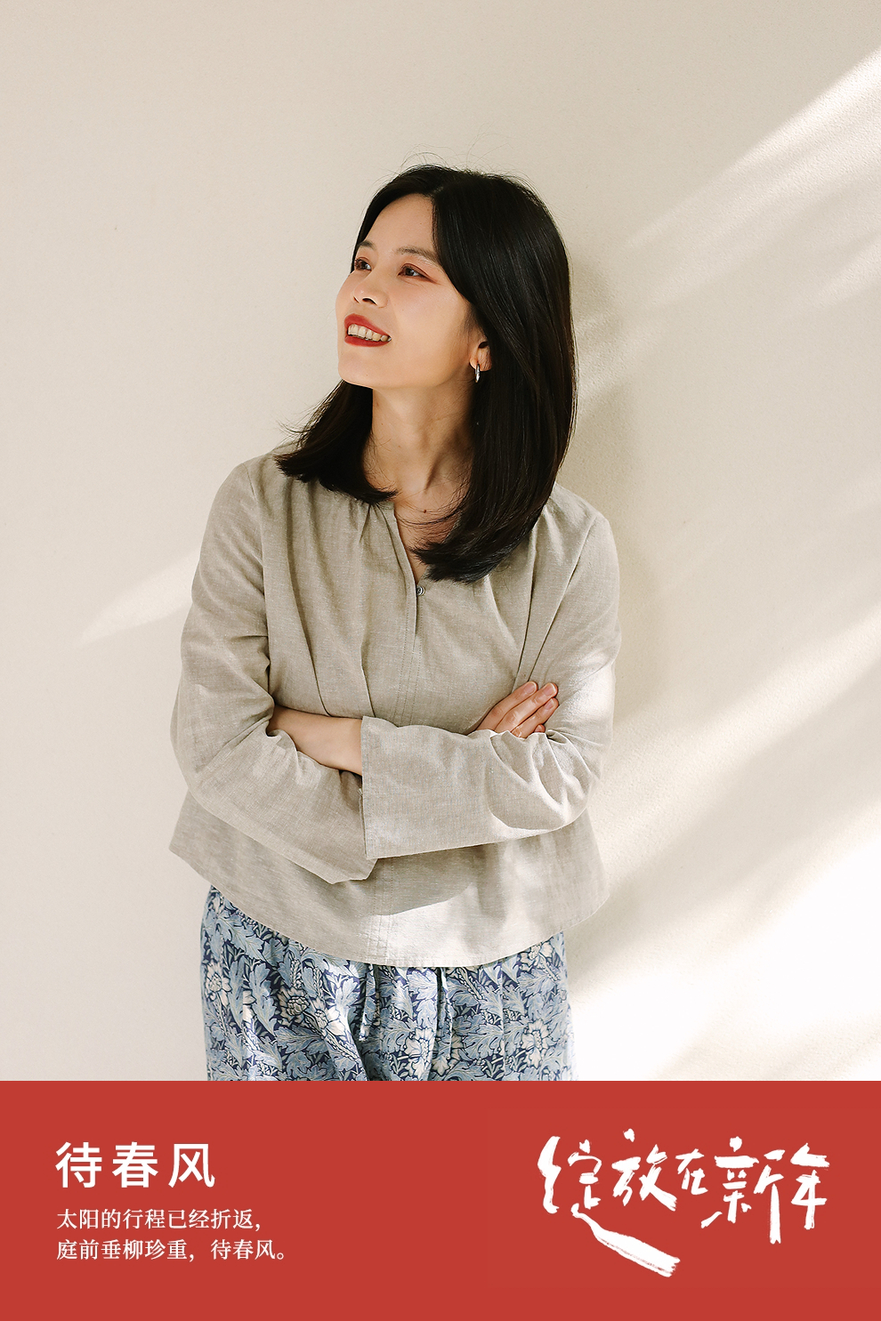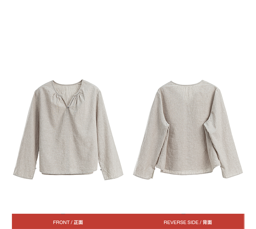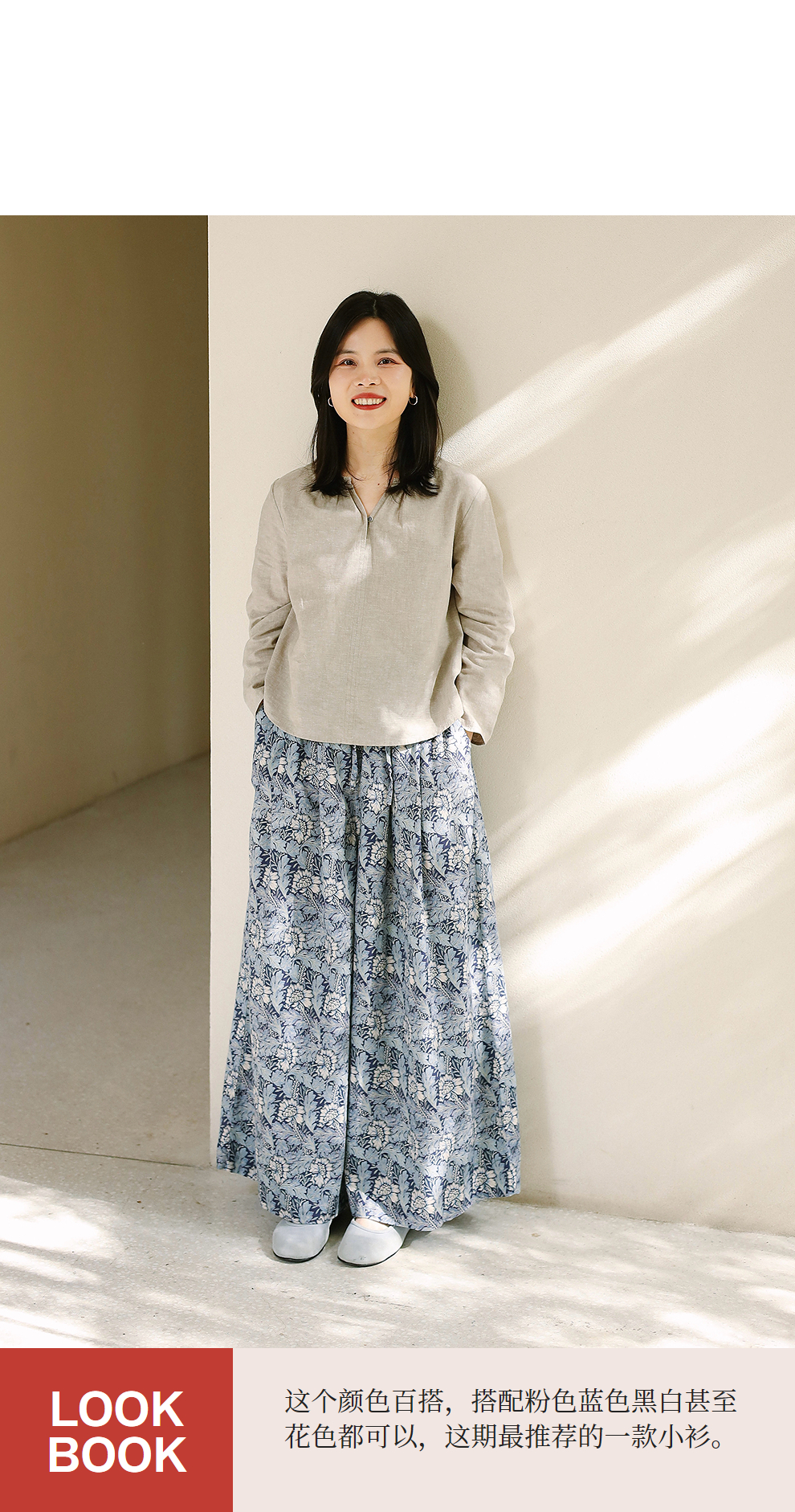 绽放旅行女装155朵/小欢喜衬衫色织棉麻灰显瘦复古文艺长袖小衫