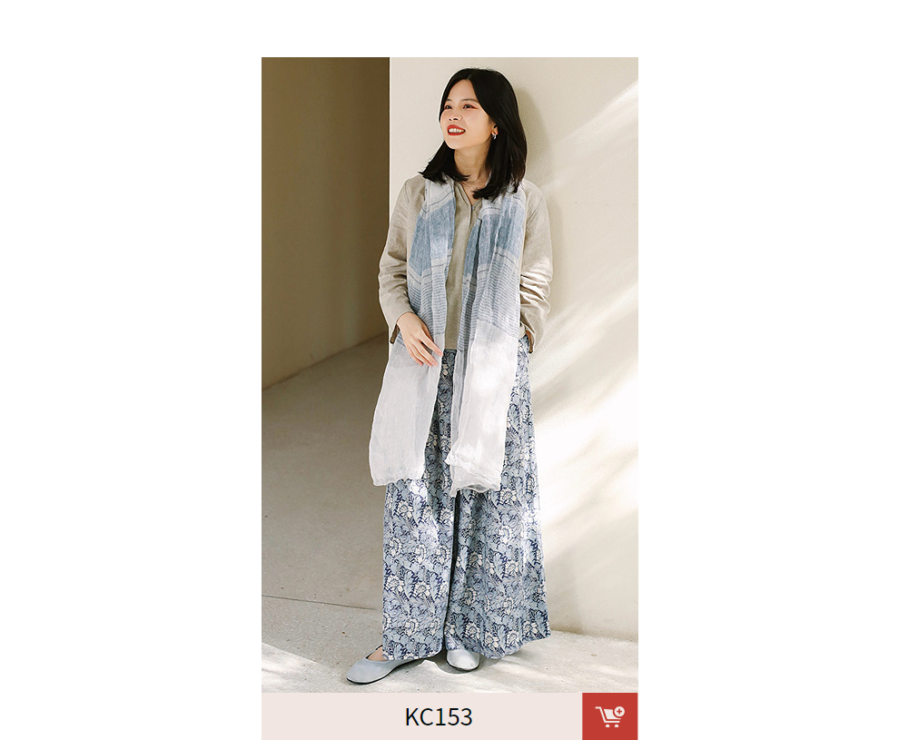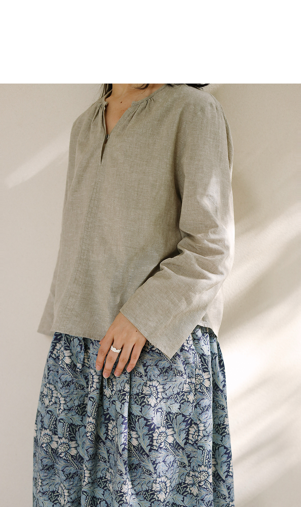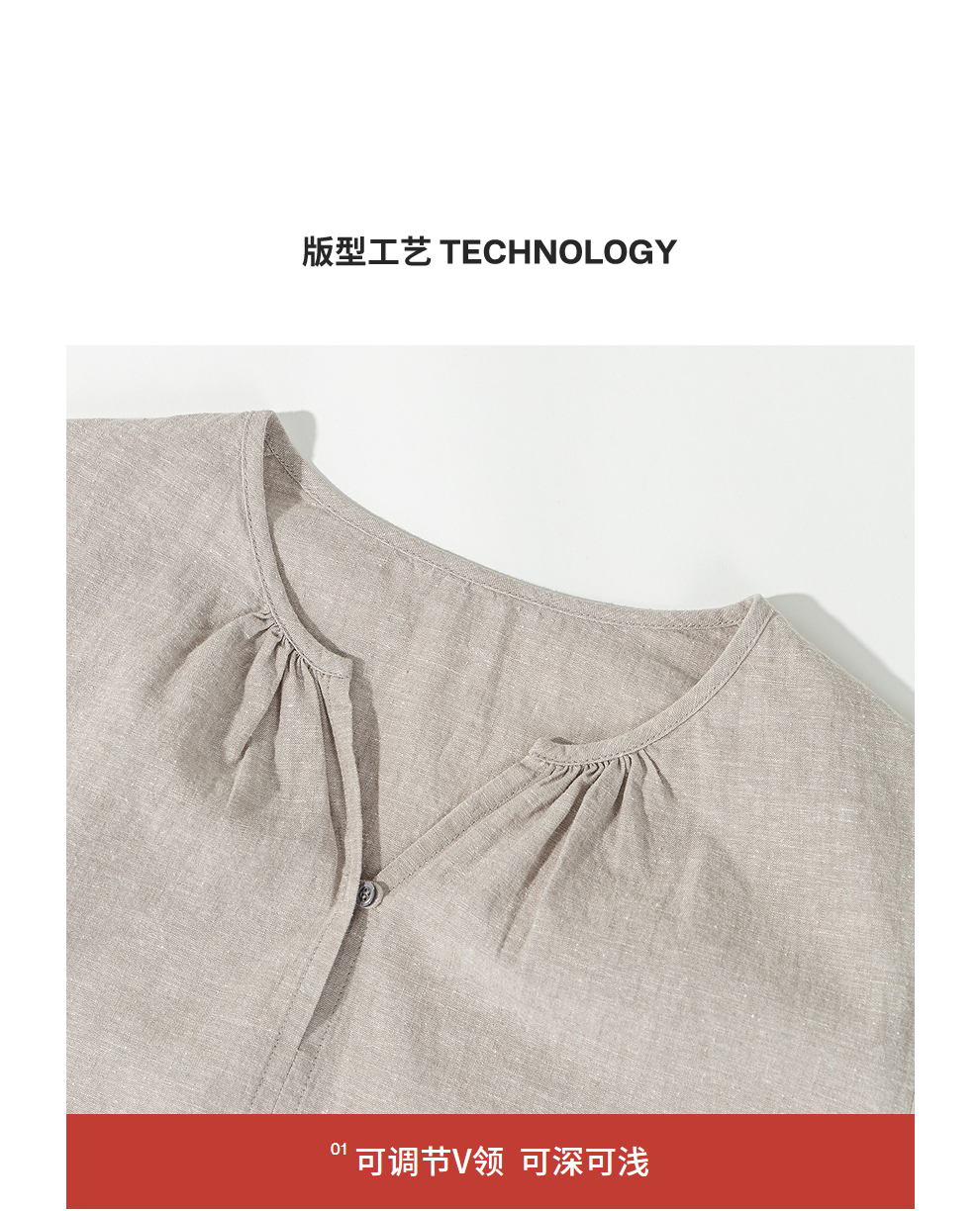 绽放旅行女装155朵/小欢喜衬衫色织棉麻灰显瘦复古文艺长袖小衫