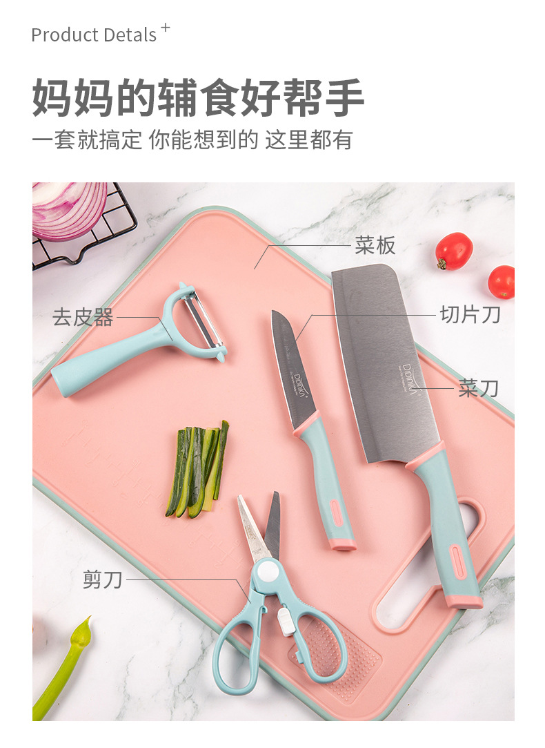 【双面双用 一套搞定】迪迪尼卡 didinika辅食菜板五件套装刀具研磨器多功能辅食菜板材质婴儿刀具