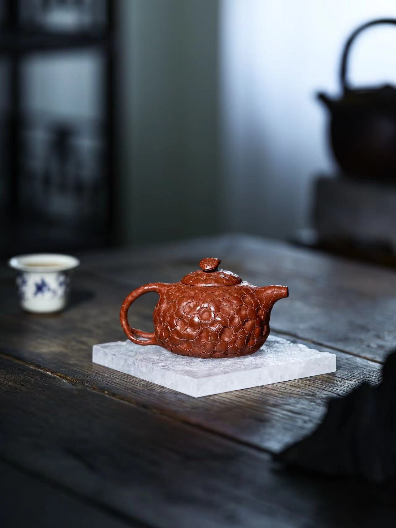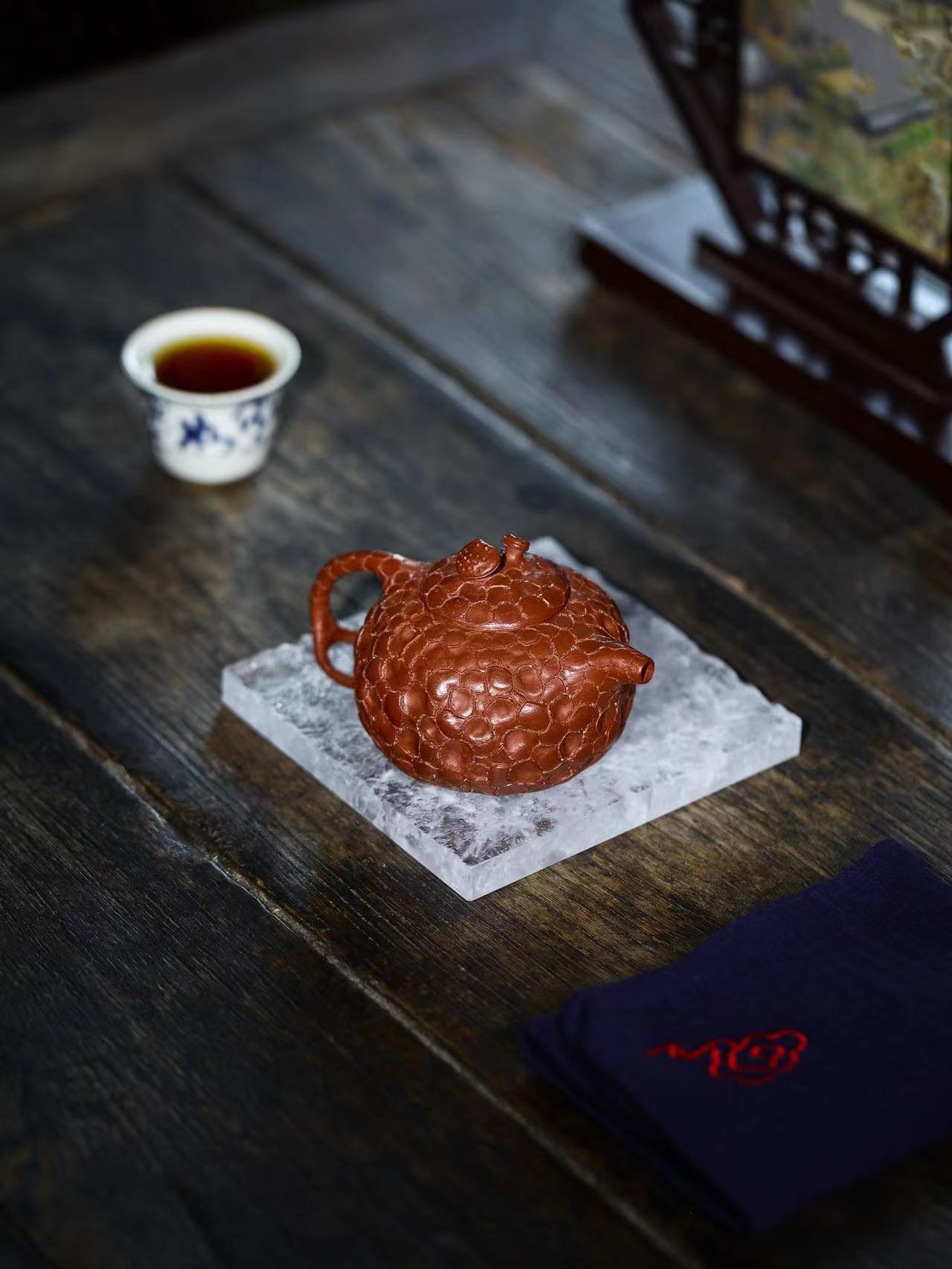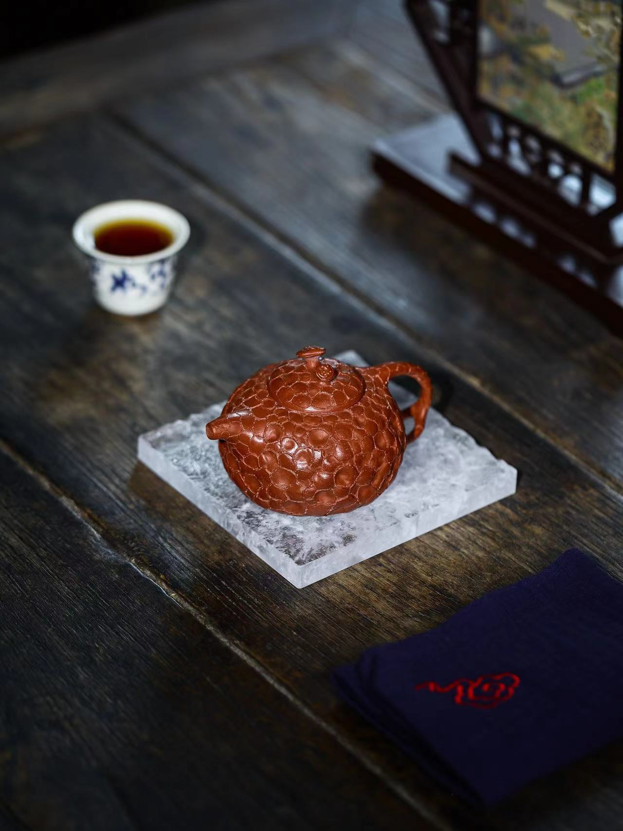 这一款精品紫砂壶,收藏送礼都是很不错的。优质稀缺的大红袍朱泥,颜色红润,油性足,日常把玩泡养很快就能出包浆,褶皱感明显。国家高级工艺师王文浩是紫砂壶王寅春的传人,深得真传,对于器型把控、细节处理都非常之到位。