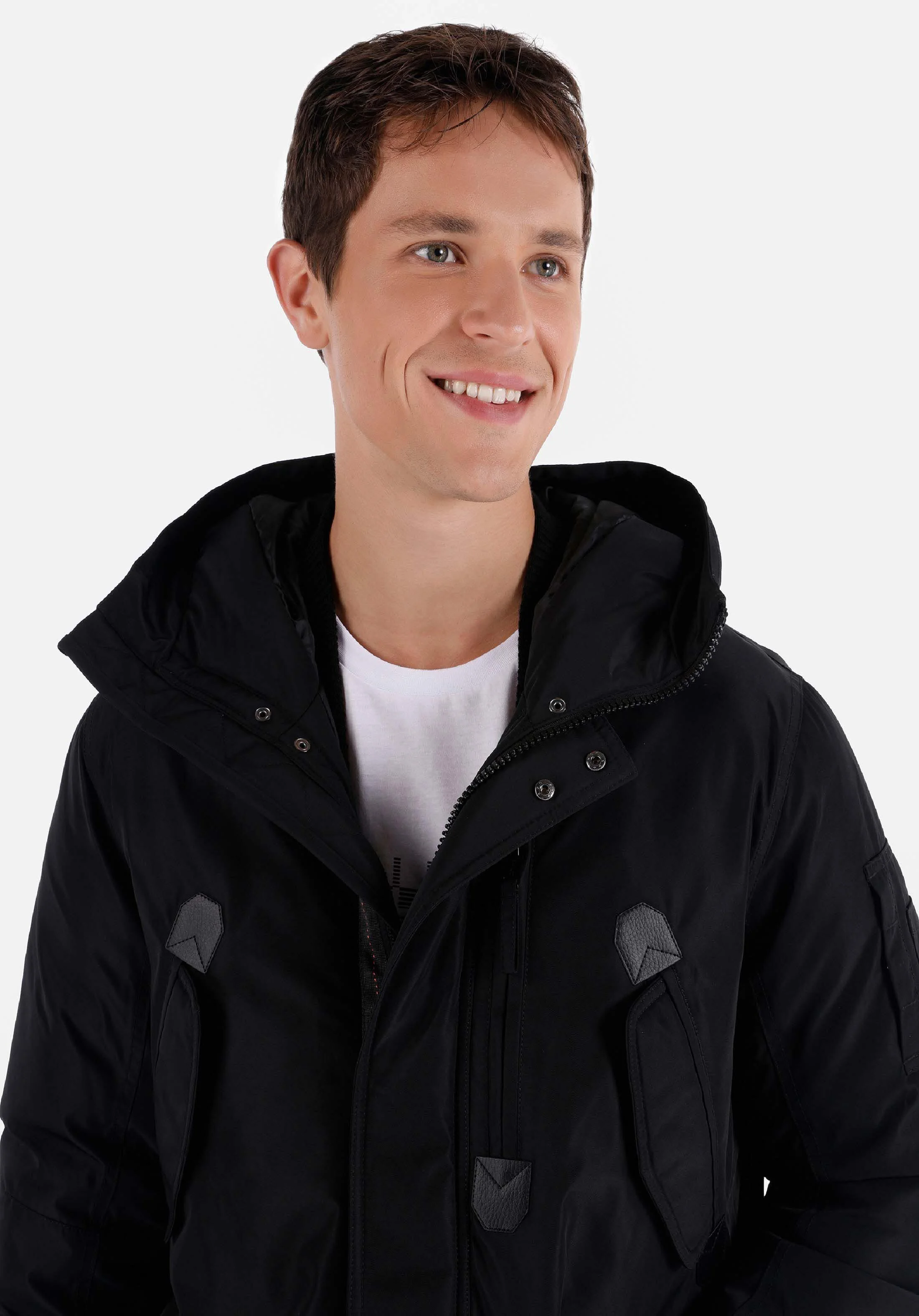 贝壳三 户外工装风加厚黑色派克棉衣御寒保暖连帽棉服男C110828