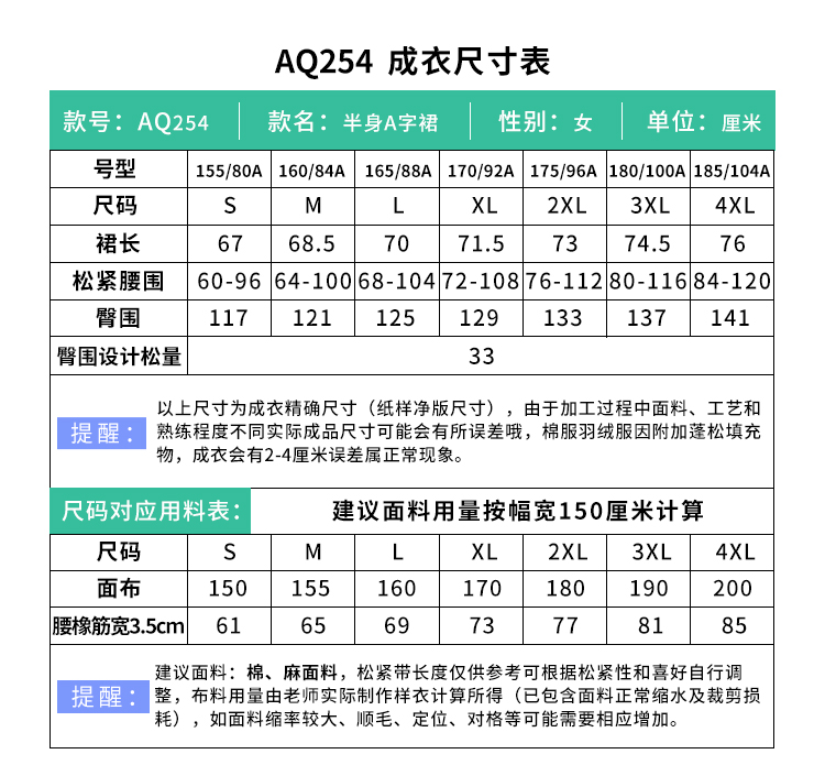 裁缝学苑AQ254新款半身裙纸样女装小个子A字裙中长款复古伞裙样板