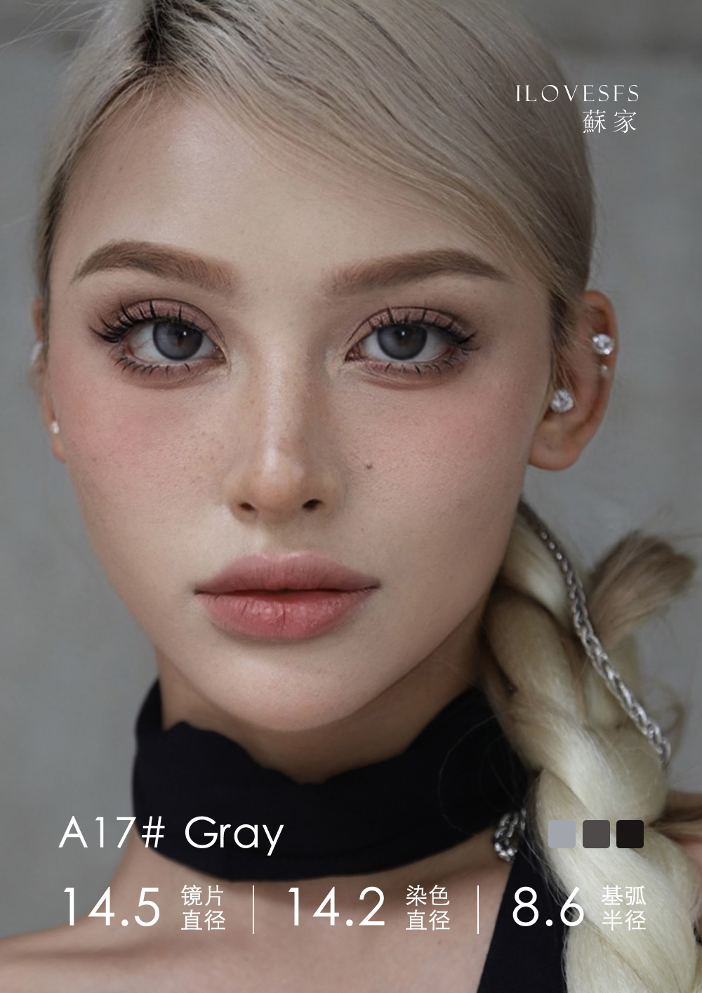 A17#Gray 牛乳半糖 高光灰 14.5mm【1片装】进口-舒适推荐 / 半年抛