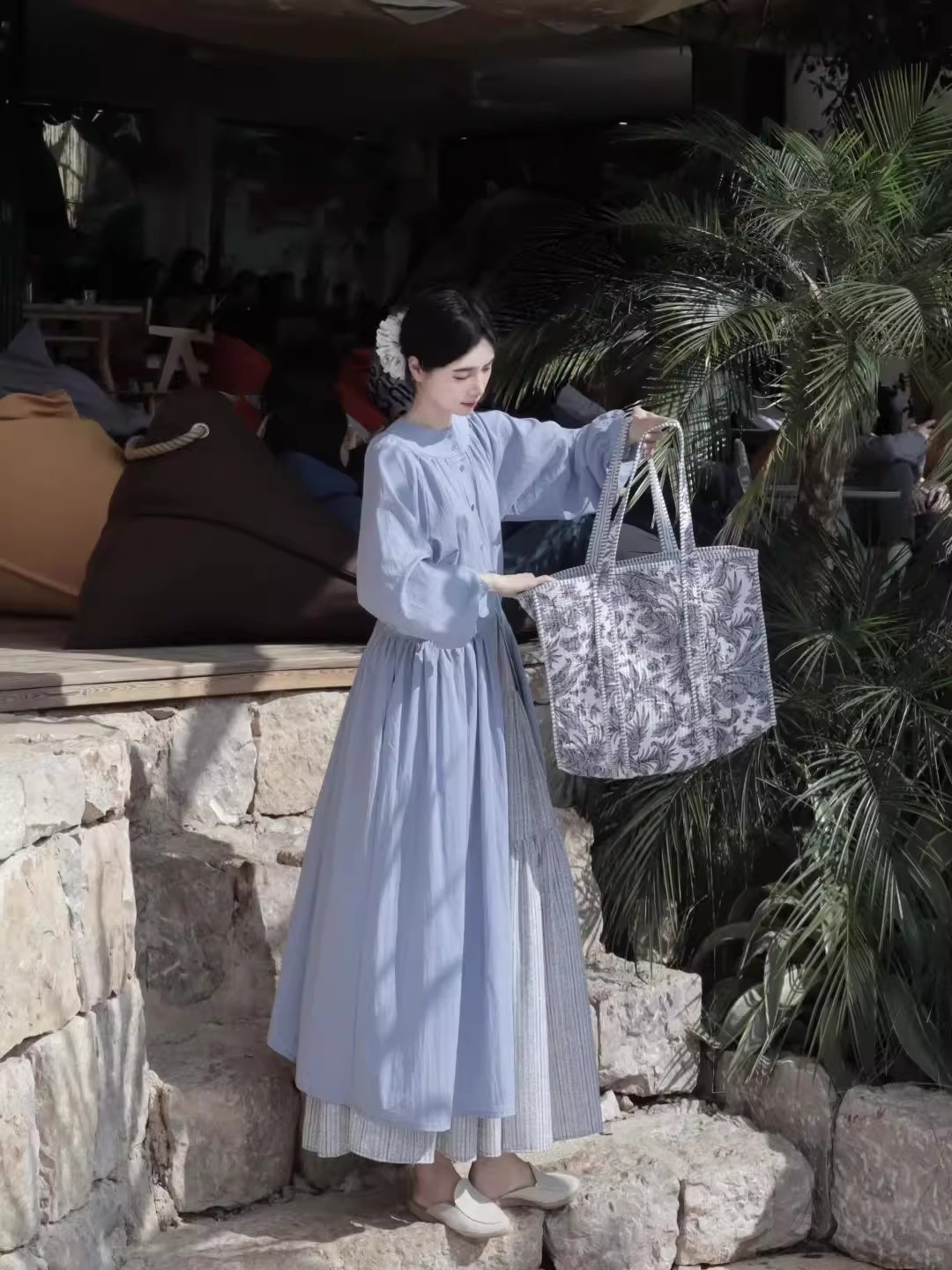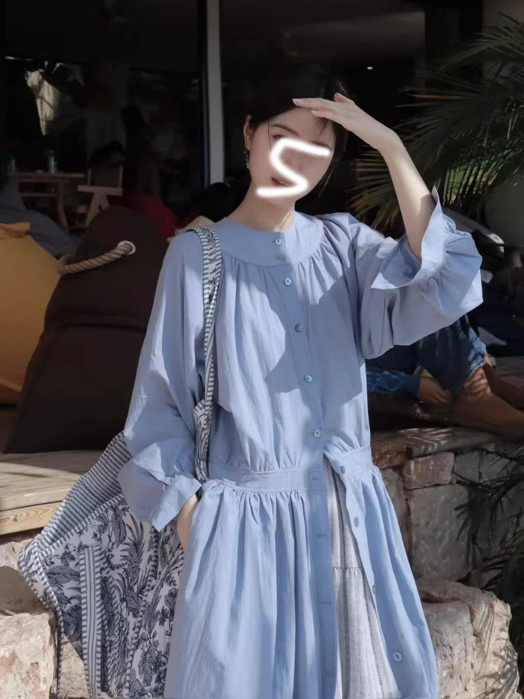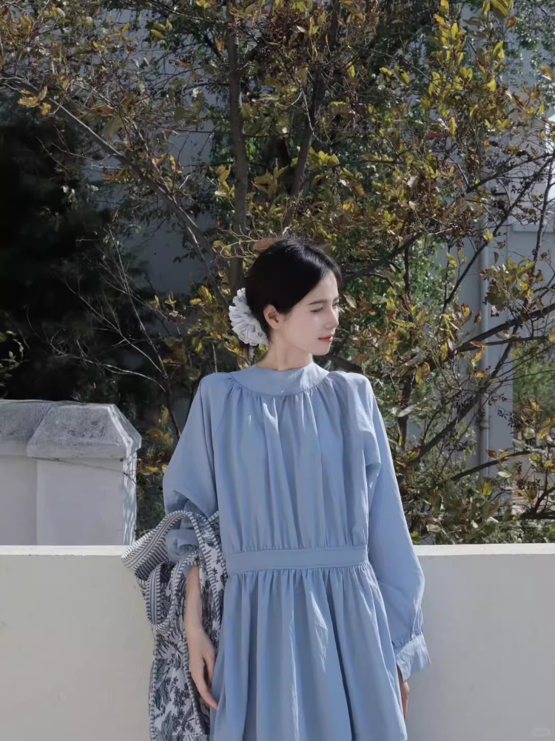裁缝学苑AH23法式高级圆领长袖连衣裙纸样女装长款裙子样板图纸