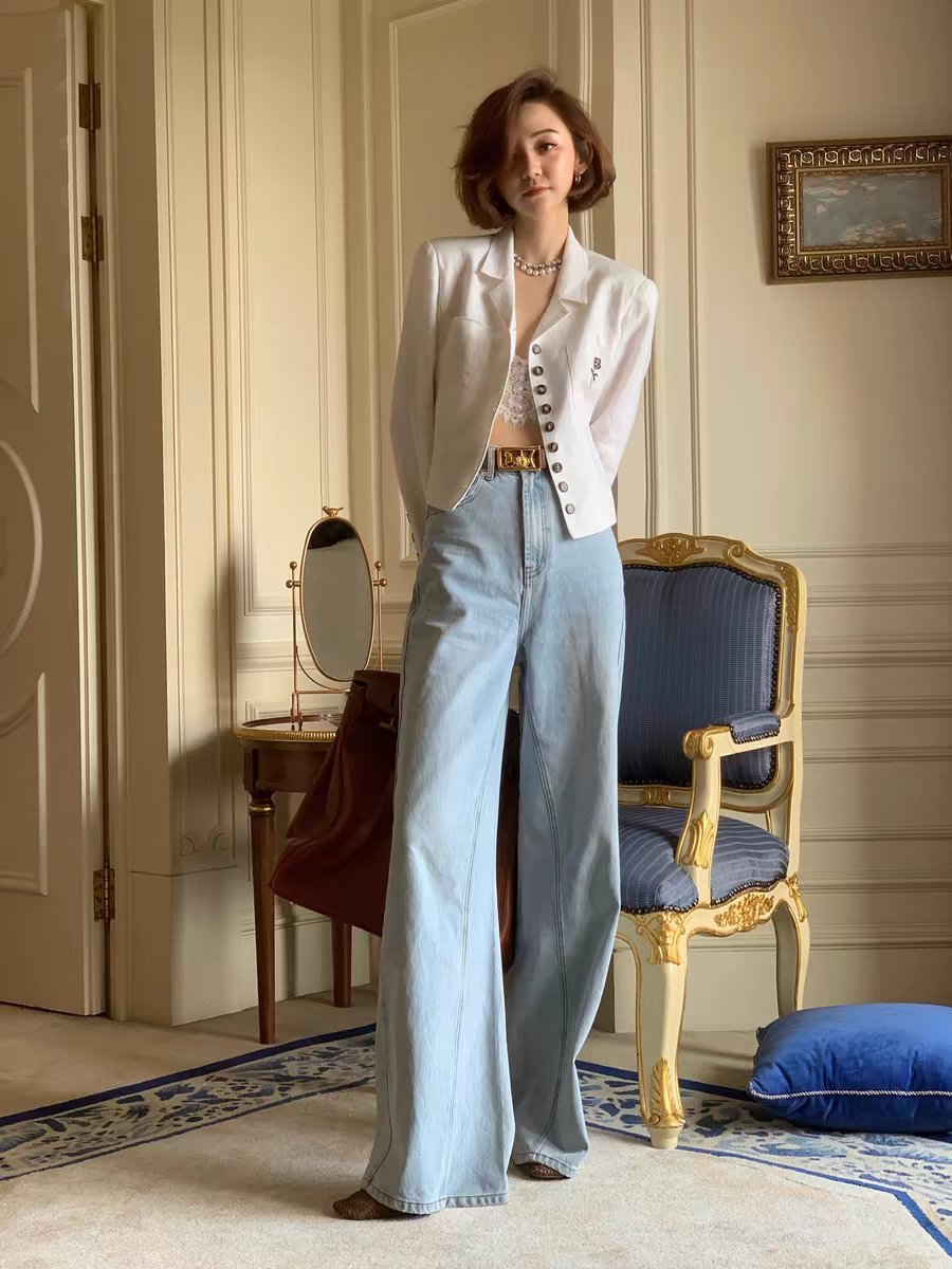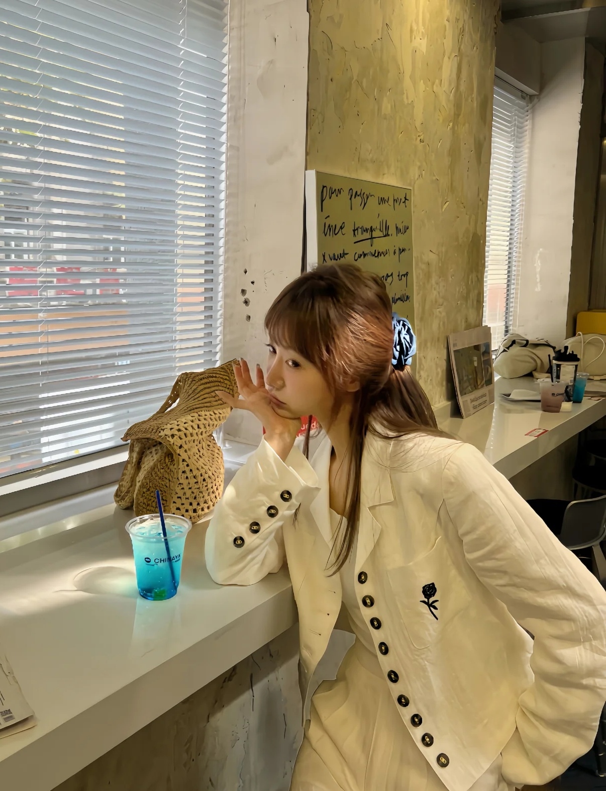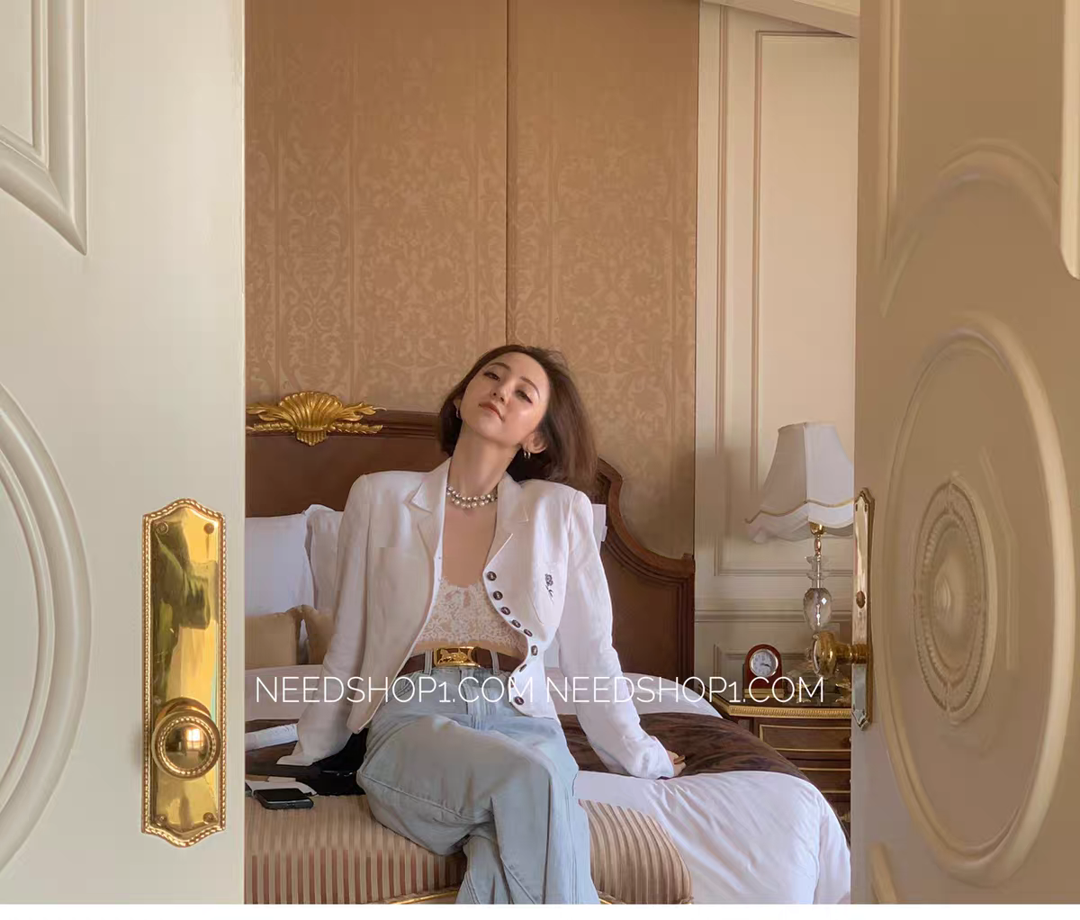 选用亚麻混纺面料,打造轻量感通勤小西装,