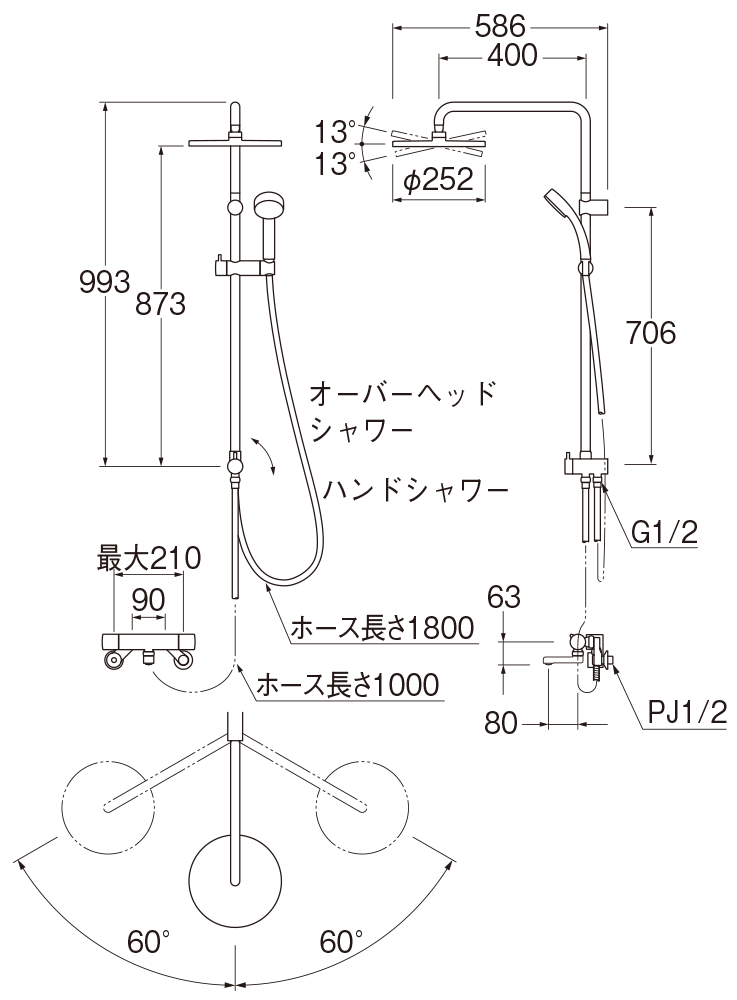 日本三荣SANEI顶棚淋浴花洒恒温龙头套【2024年度 販売終了】