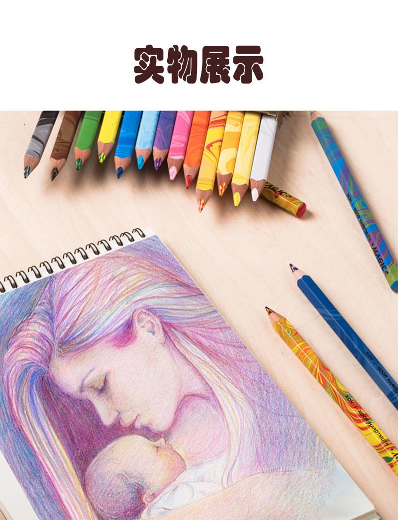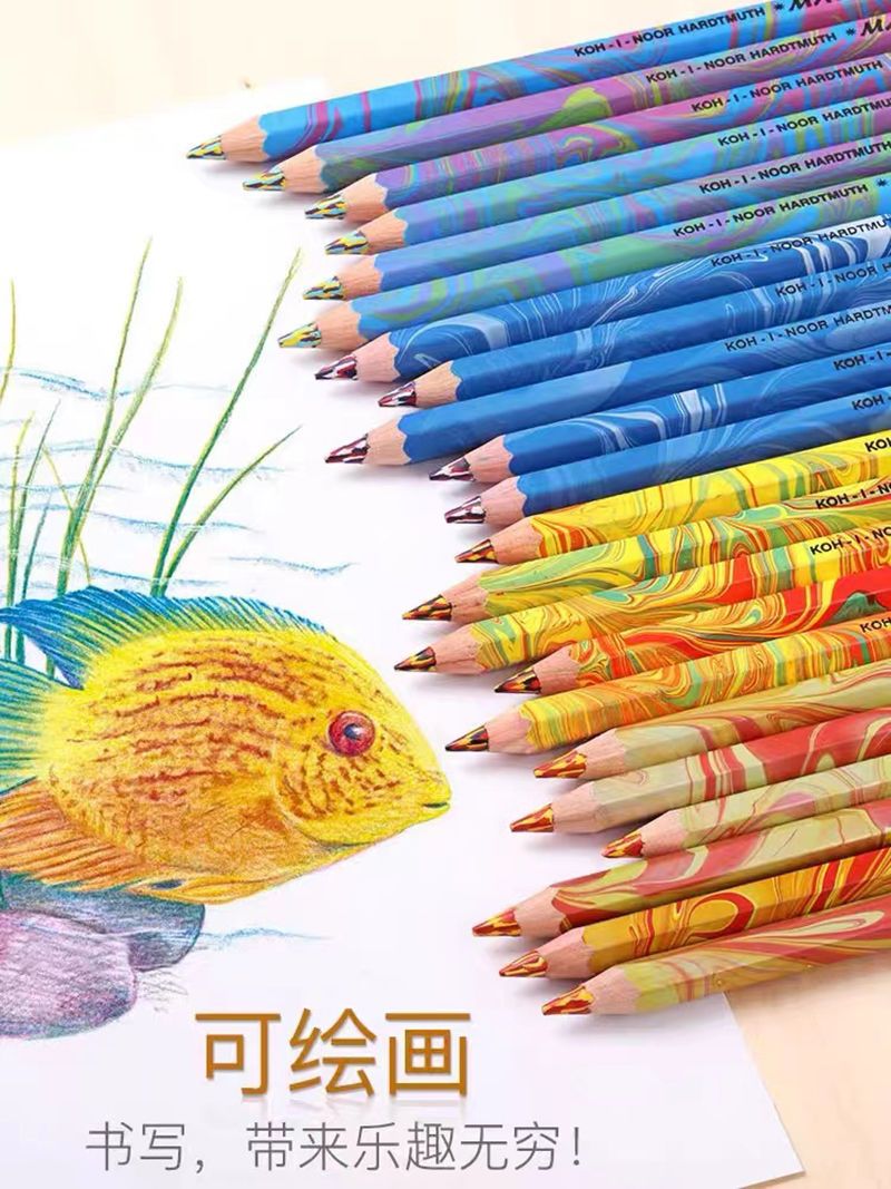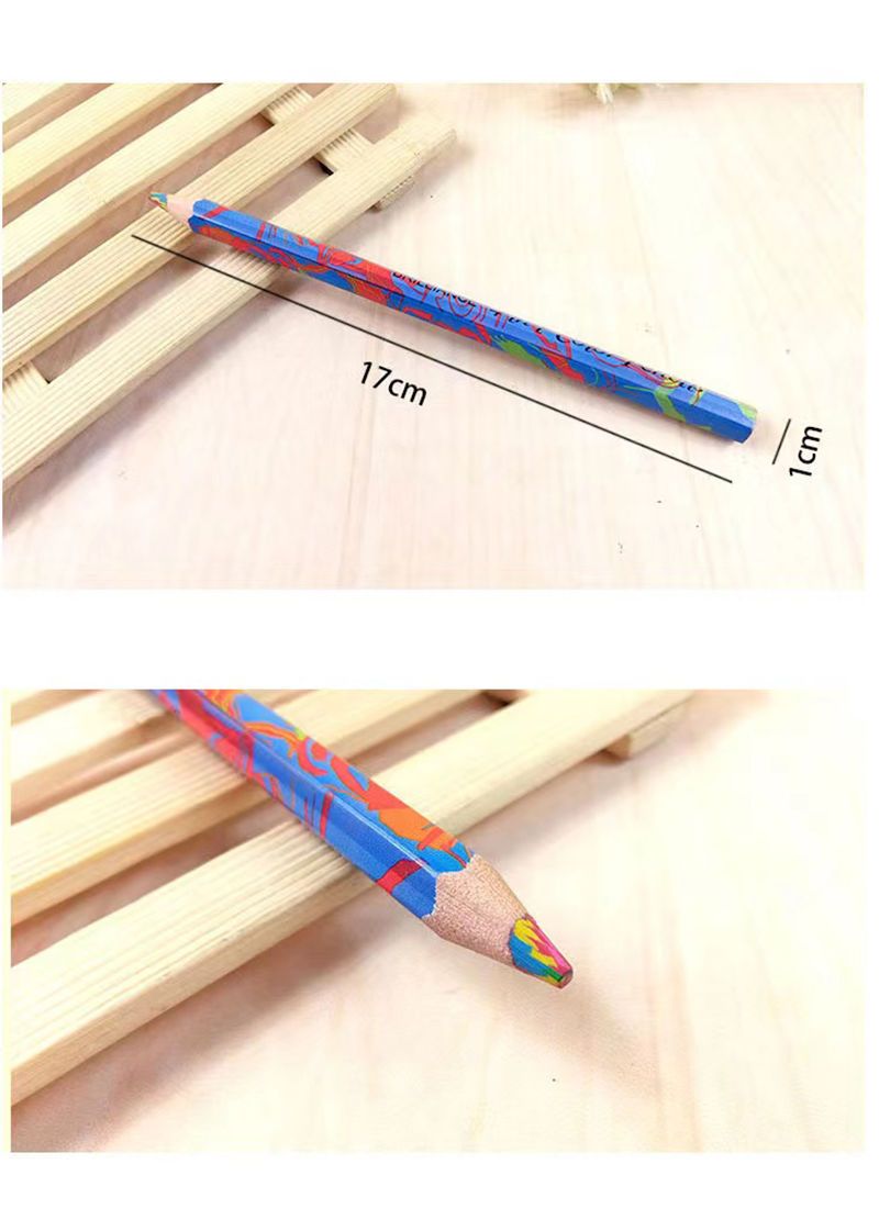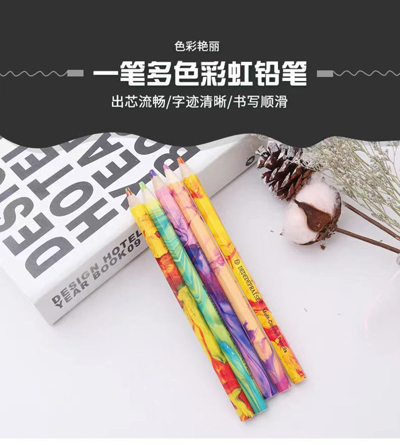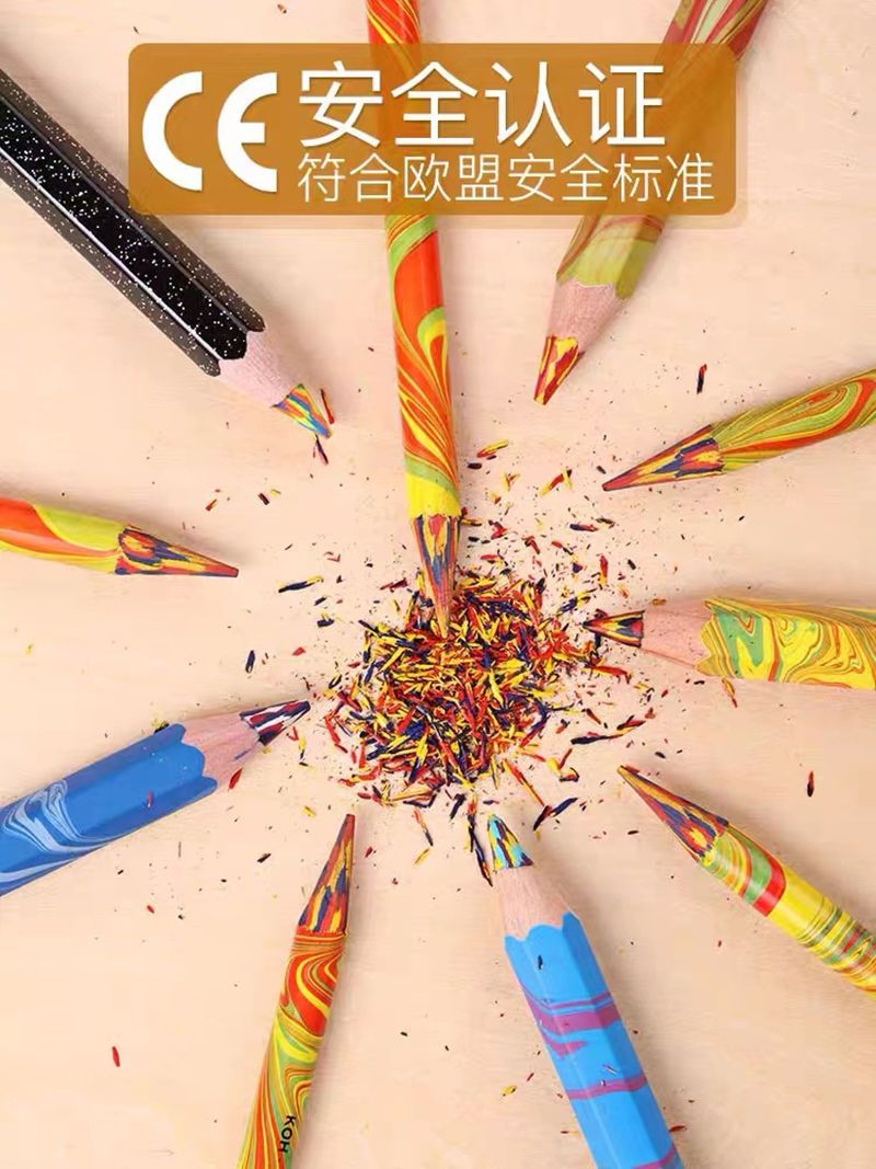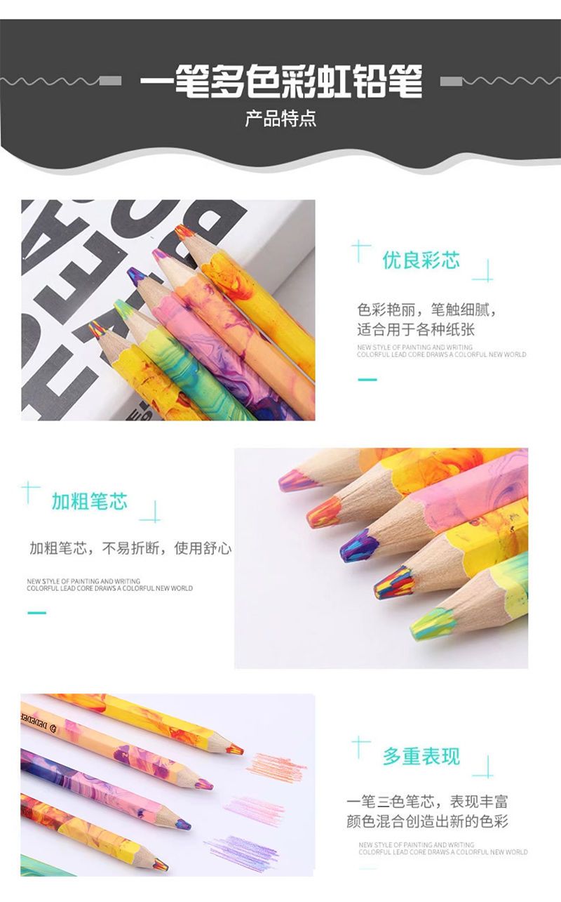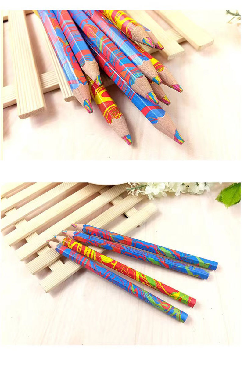 网红彩虹铅笔魔幻迷彩铅笔一笔多色混色彩铅学生书写美术绘画笔