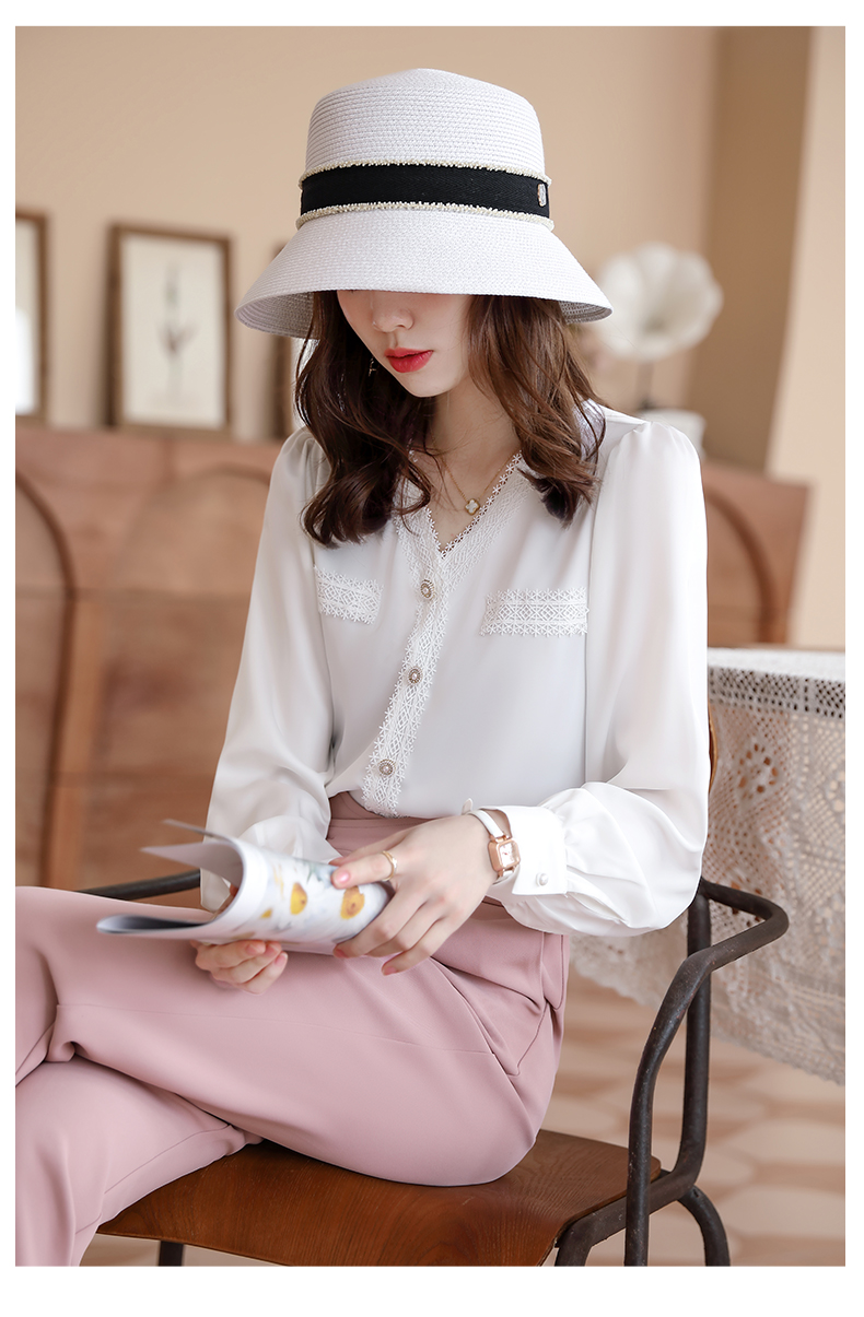 职业衬衫女时尚洋气法式少女气质设计感小众内搭长袖蕾丝花边衬衣