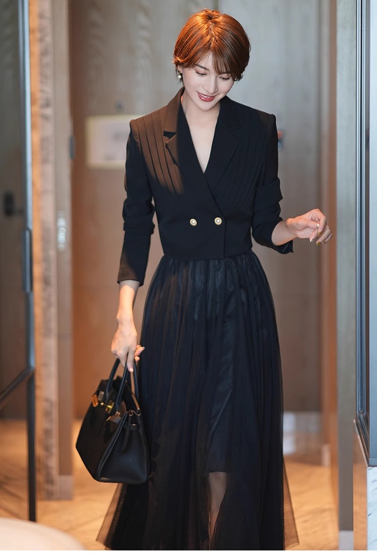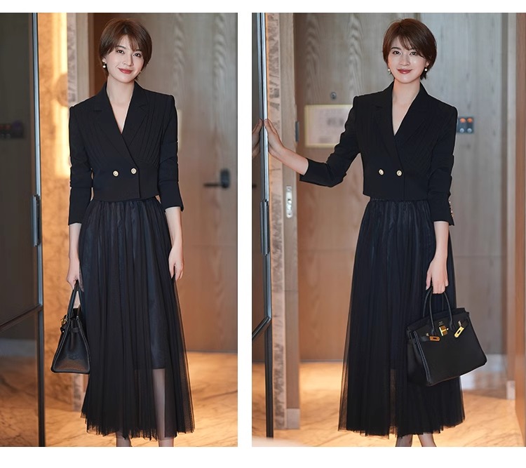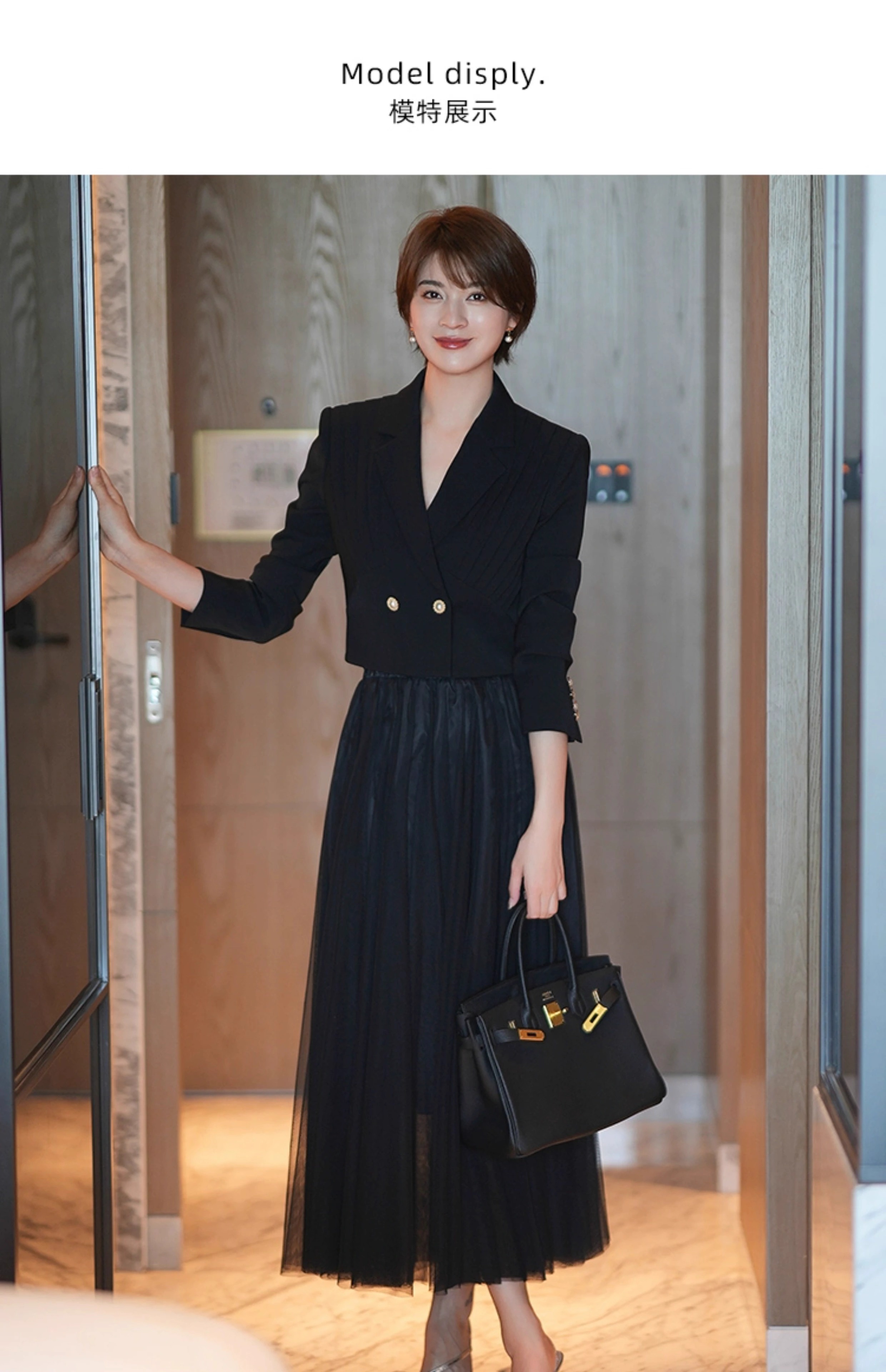 秒199元起!小香风套装女秋季高级气质名媛显瘦短款西装上衣纱裙两件套