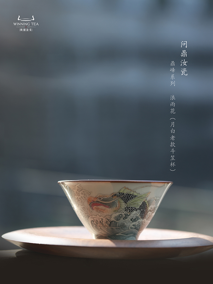 问鼎汝瓷鼎峰系列月白老款斗笠杯(浪雨花)