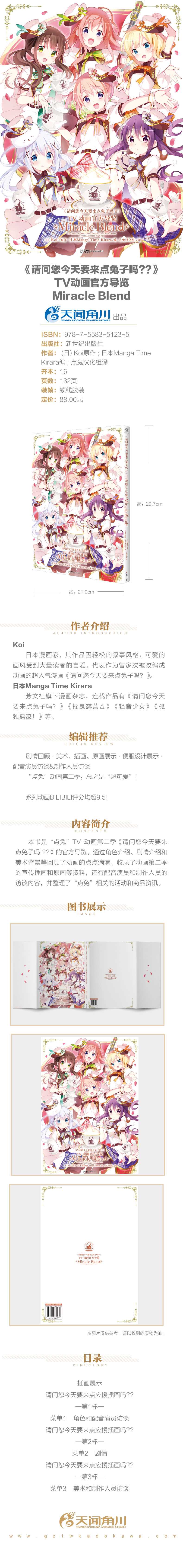 本书是;点兔TV动画第二季《请问您今天要来点兔子吗??》的官方导览。通过角色介绍、剧情介绍和美术背景等回顾了动画的点点滴滴,收录了动画第二季的宣传插画和原画等资料,还有配音演员和制作人员的访谈内容,并整理了;点兔相关的活动和商品资讯。