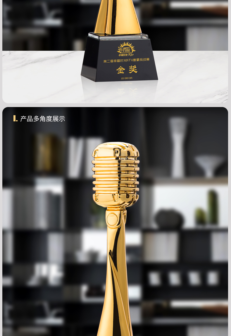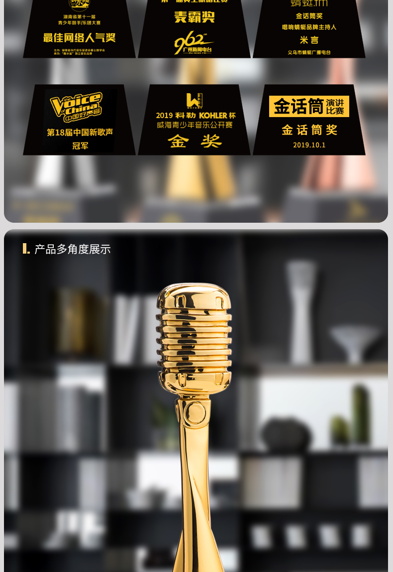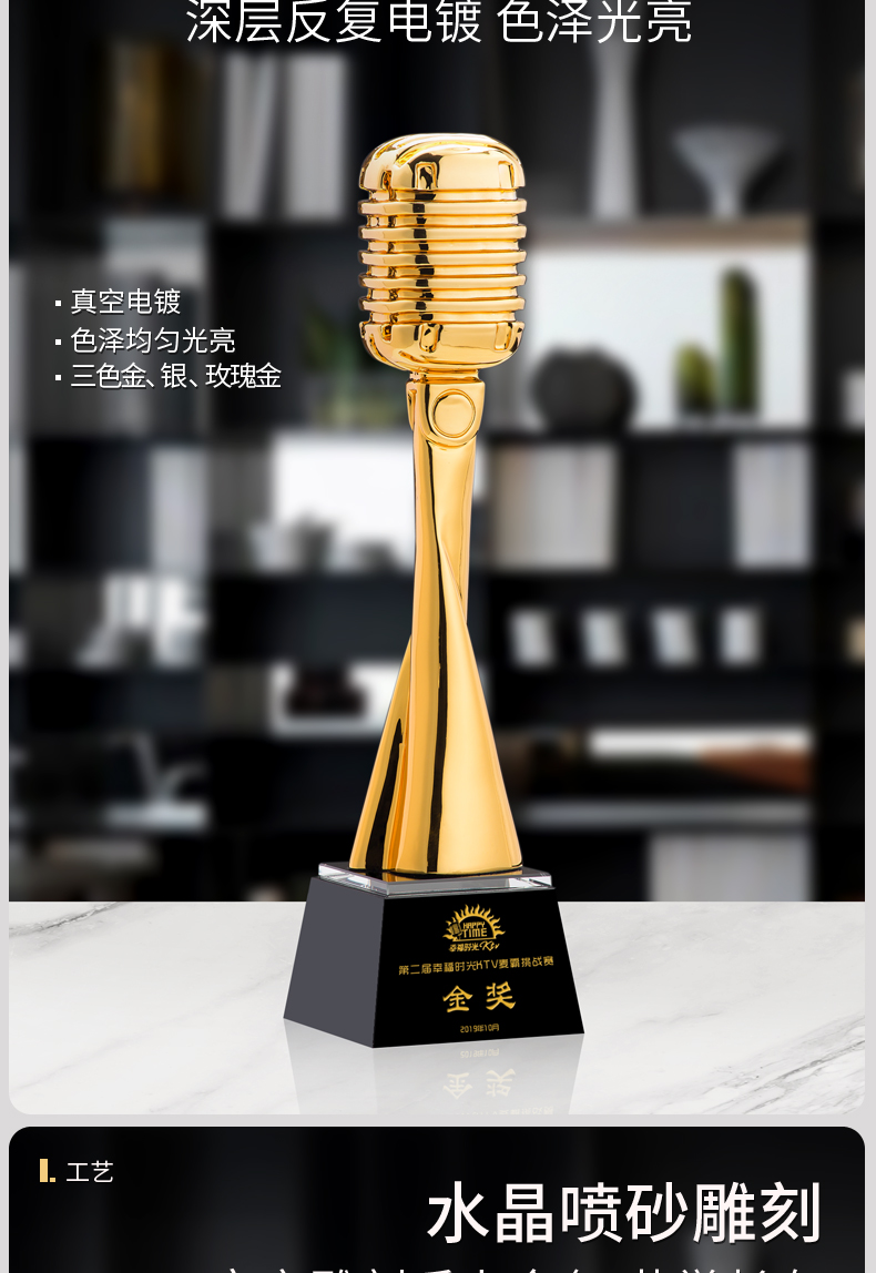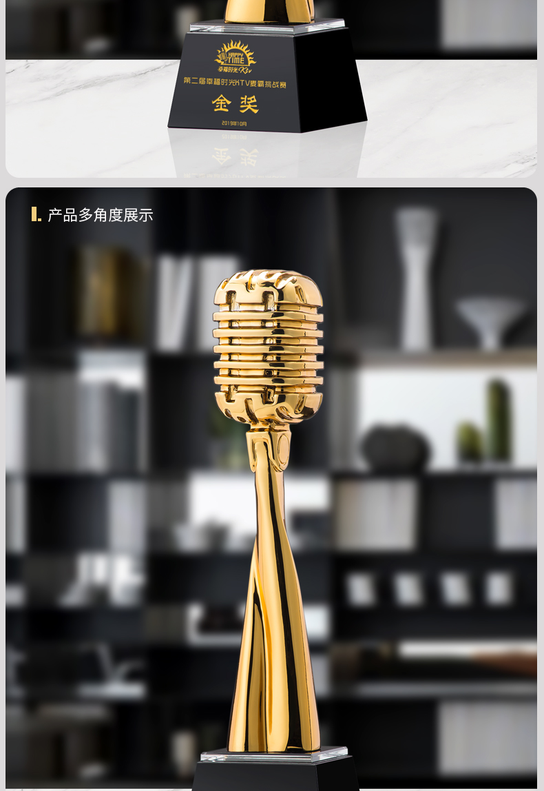 音乐金话筒奖杯定制创意镀金金属奖杯歌唱演讲比赛主持人好声音奖