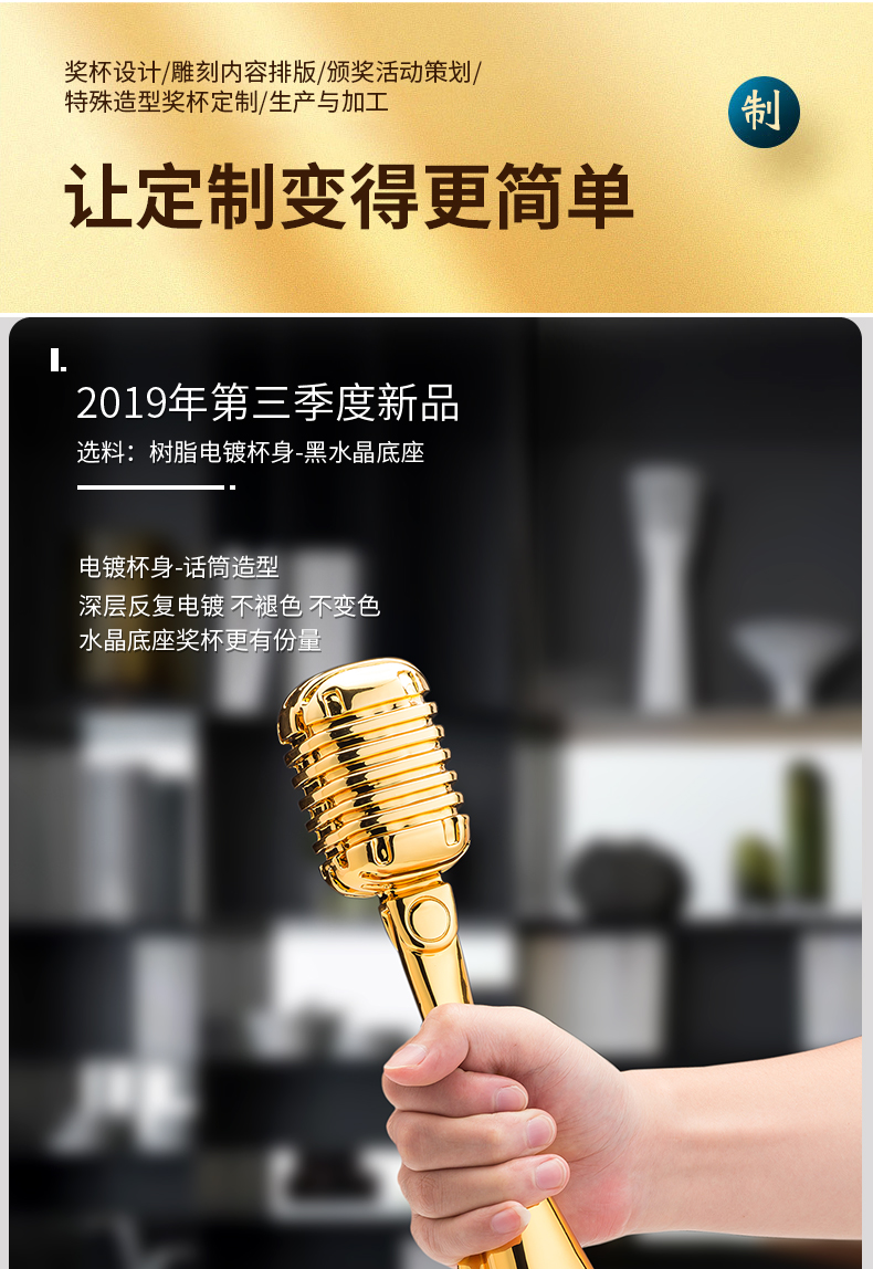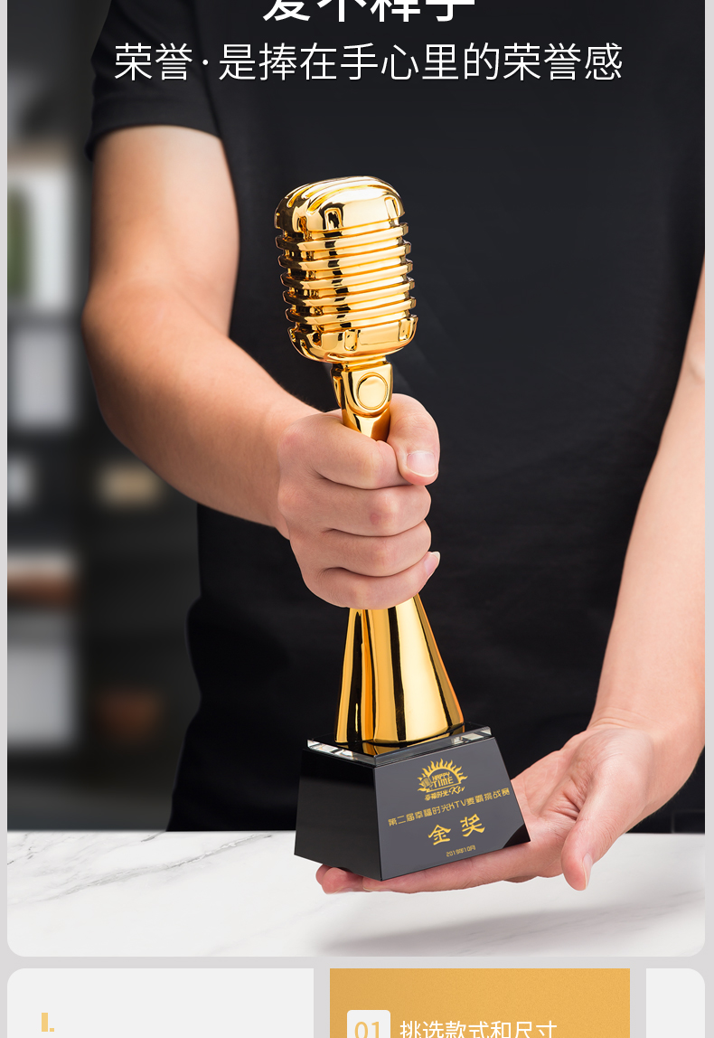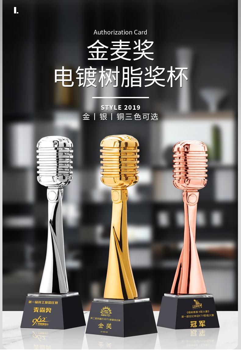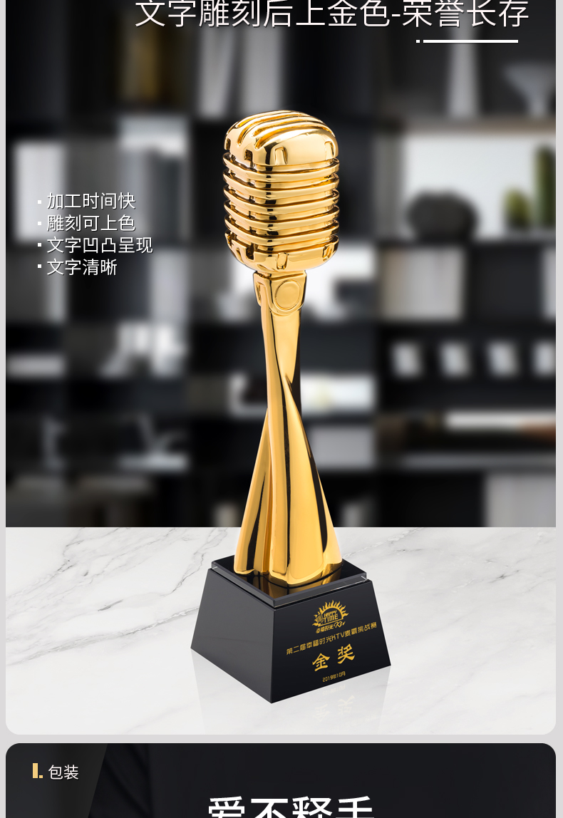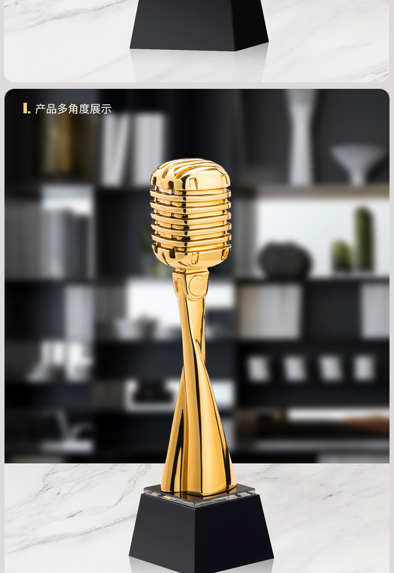音乐金话筒奖杯定制创意镀金金属奖杯歌唱演讲比赛主持人好声音奖