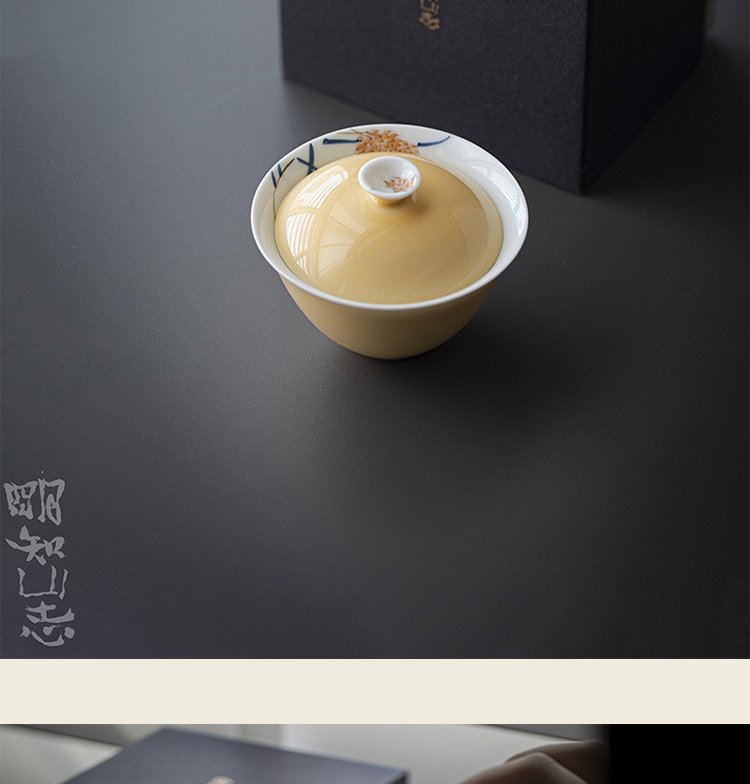 永利汇手绘麦穗防烫两才盖碗高档杏黄陶瓷泡茶杯单个茶具送礼盒
