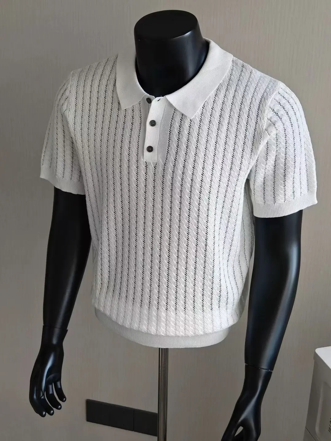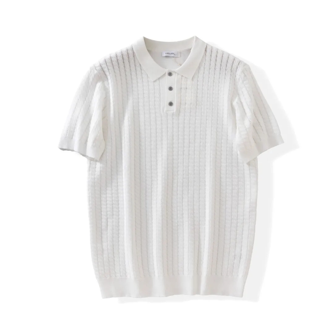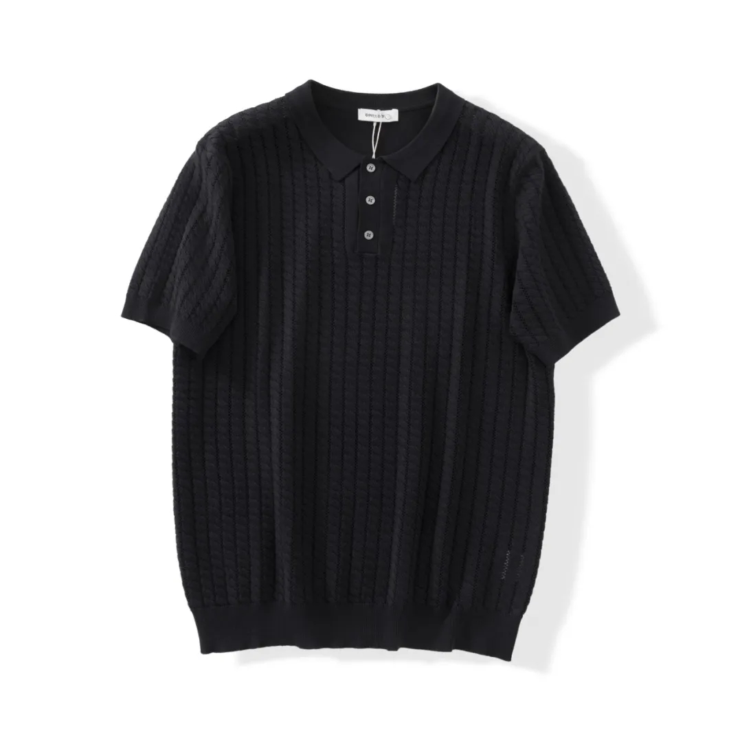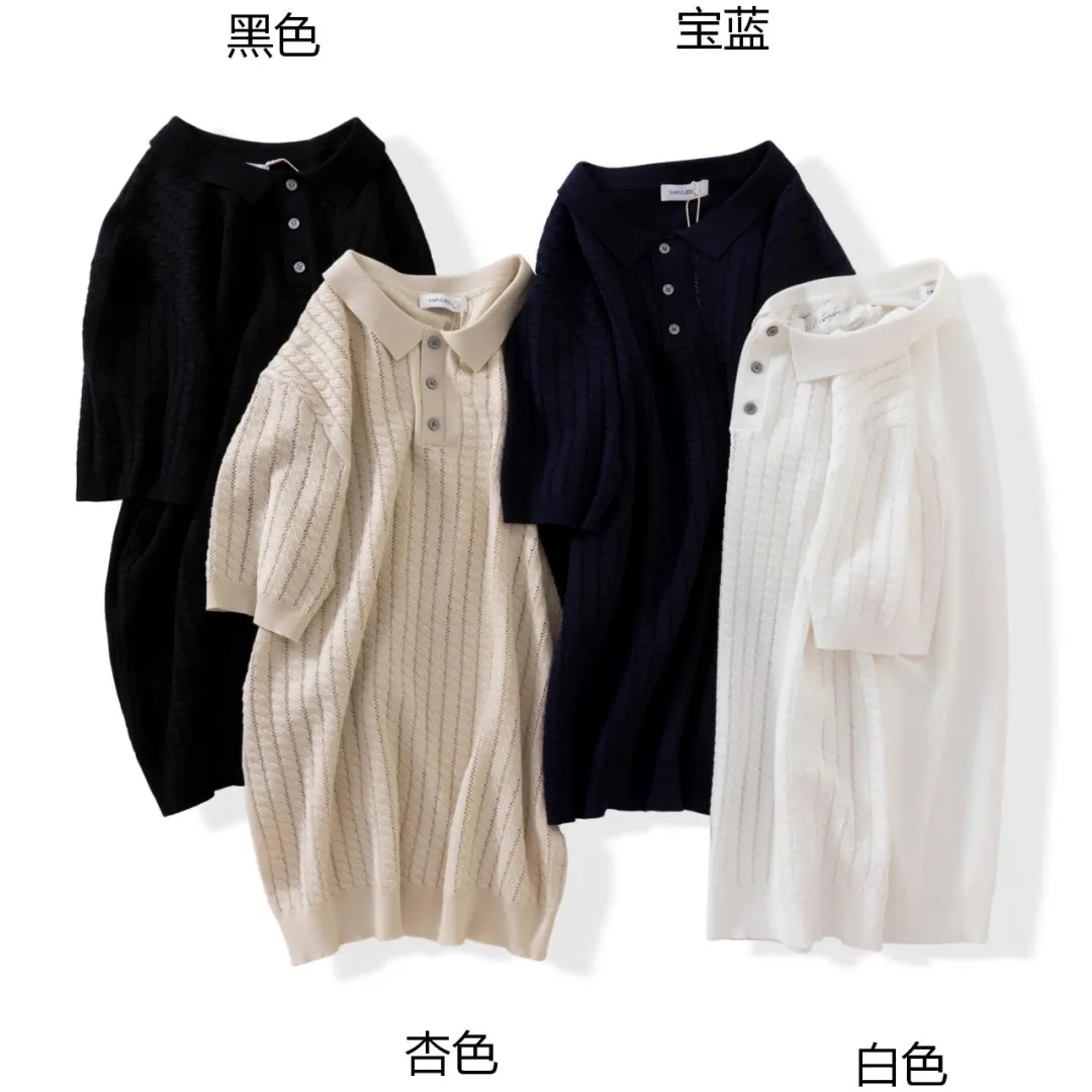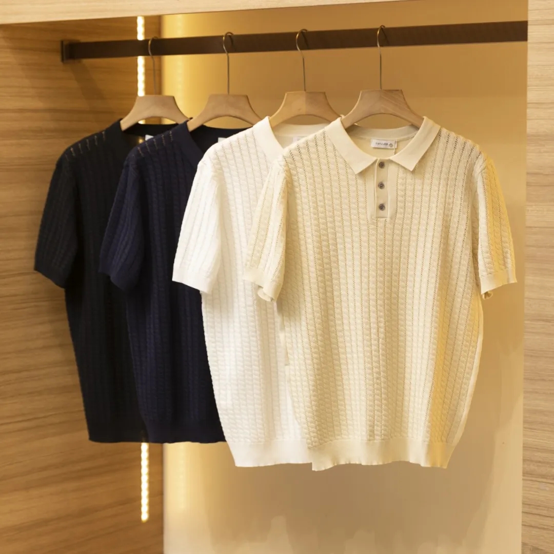 【lyyk-F87107】男子复古翻领针织镂空冰丝短袖POLO衫!!