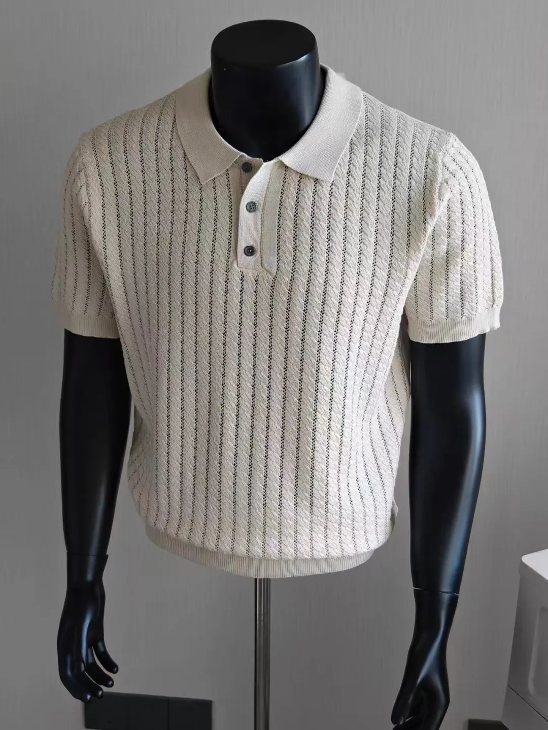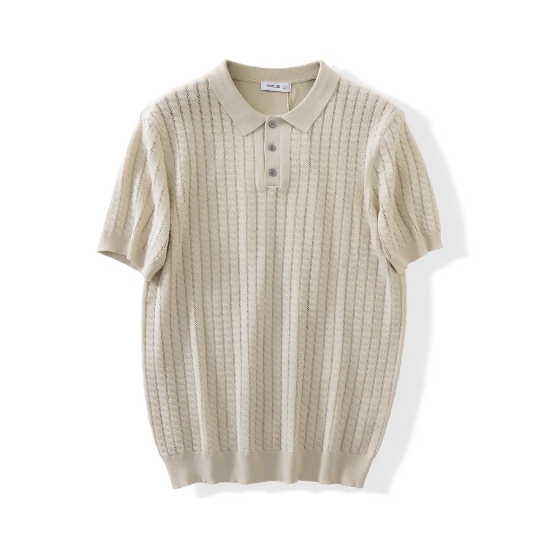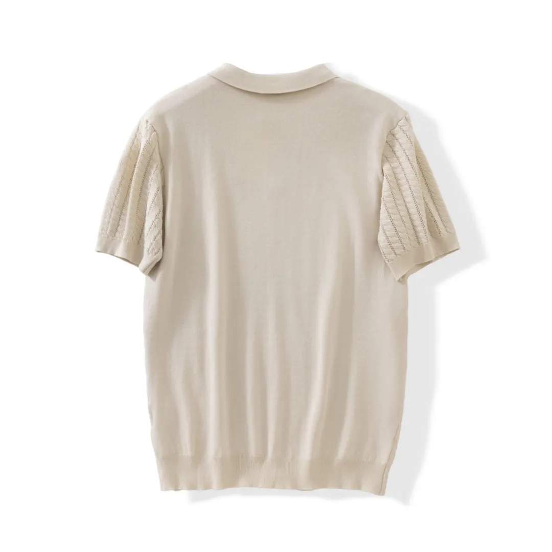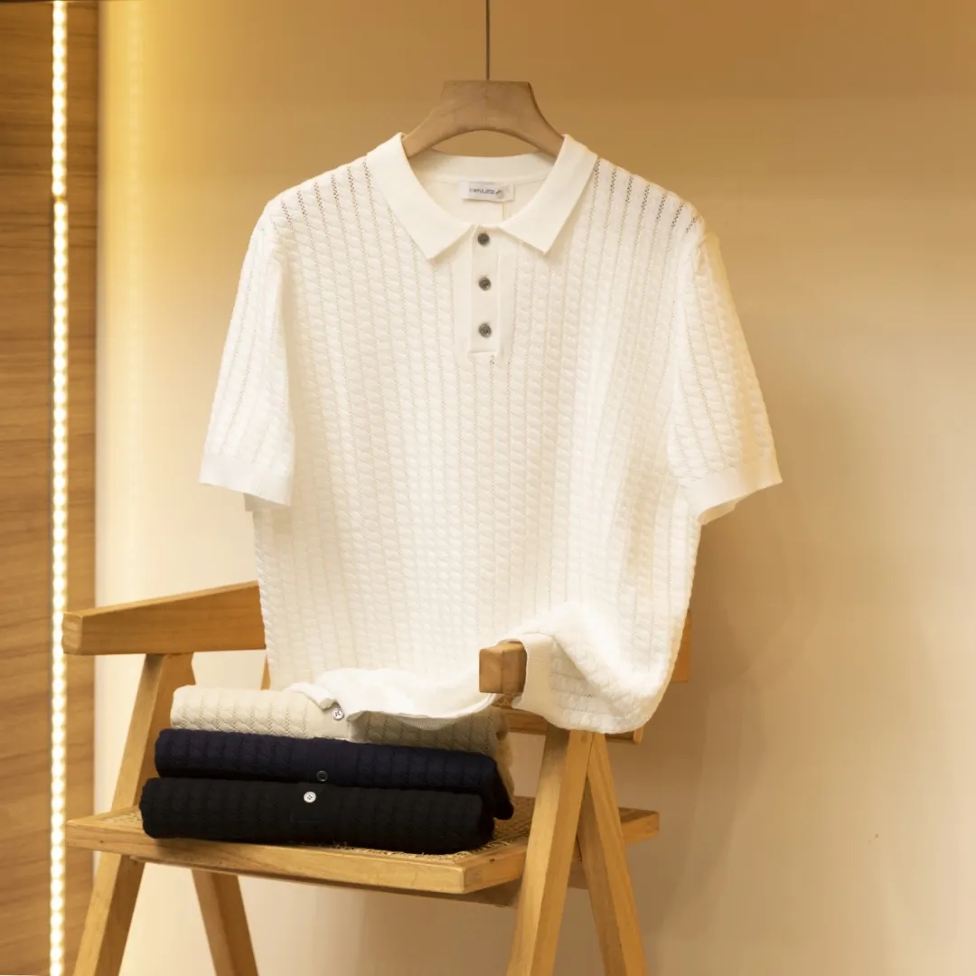 【lyyk-F87107】男子复古翻领针织镂空冰丝短袖POLO衫!!