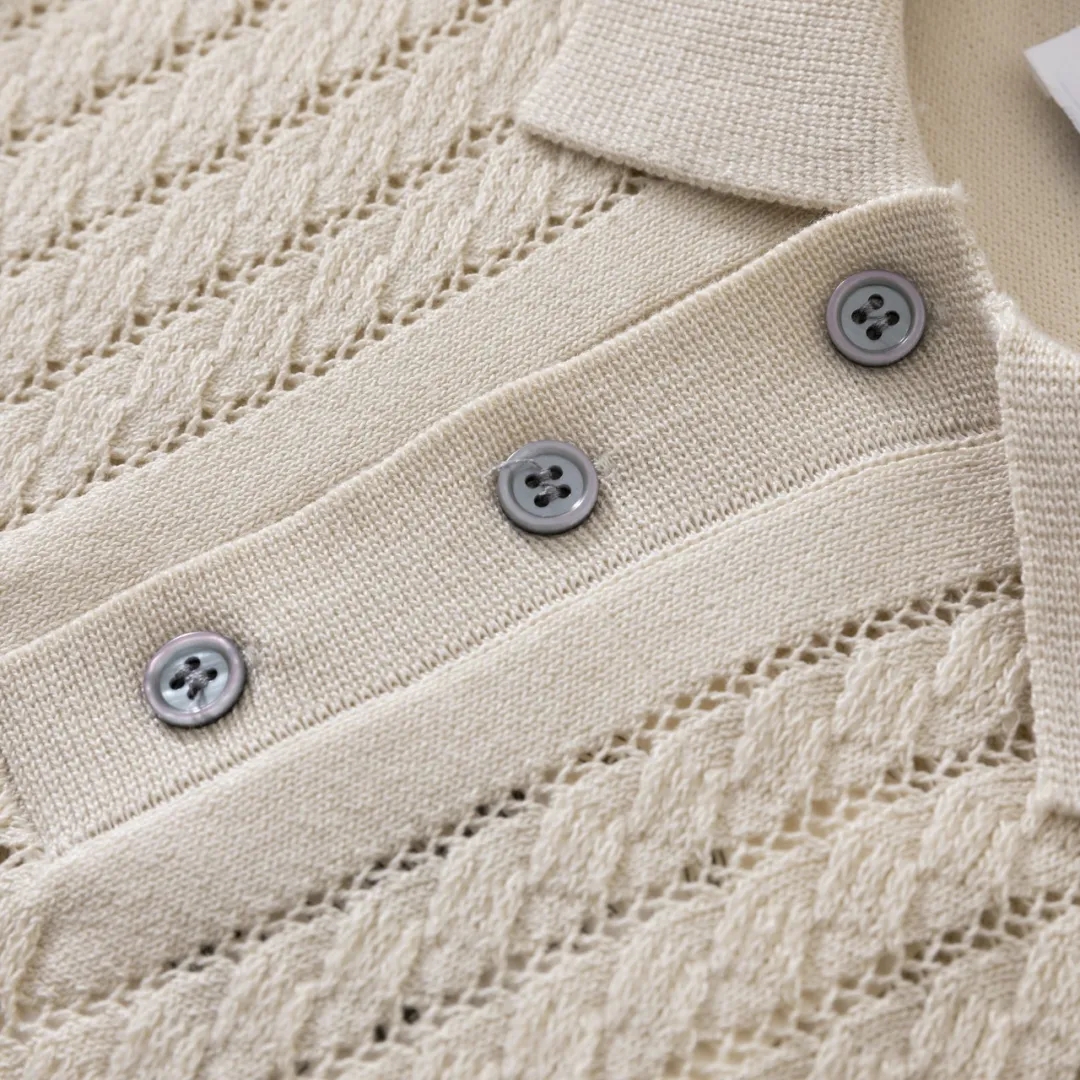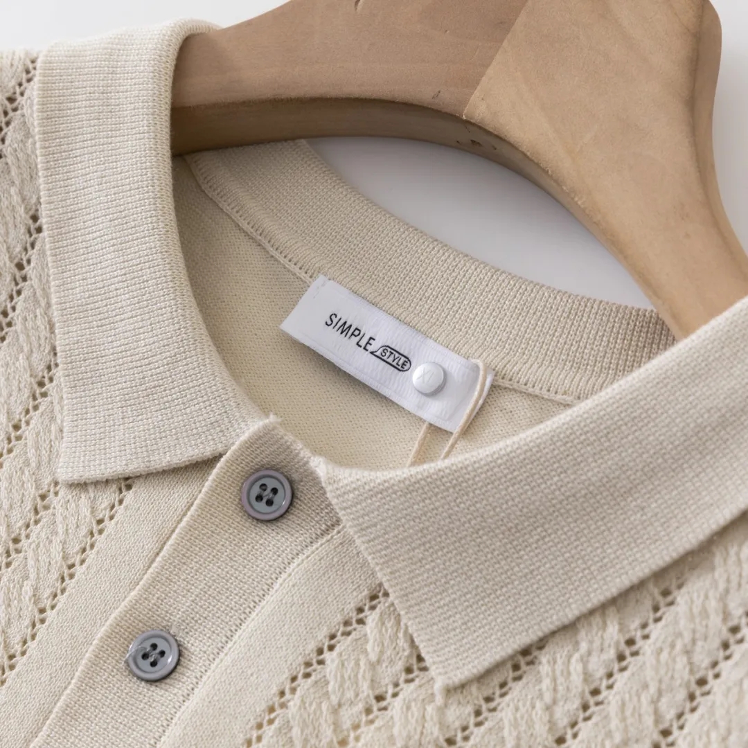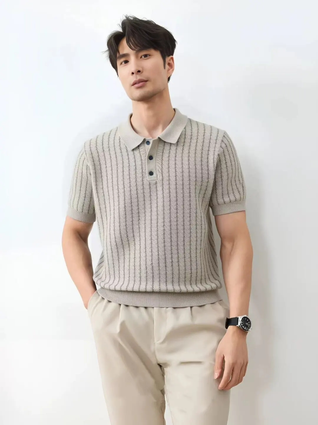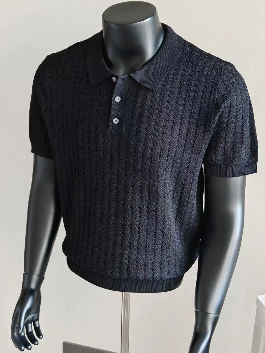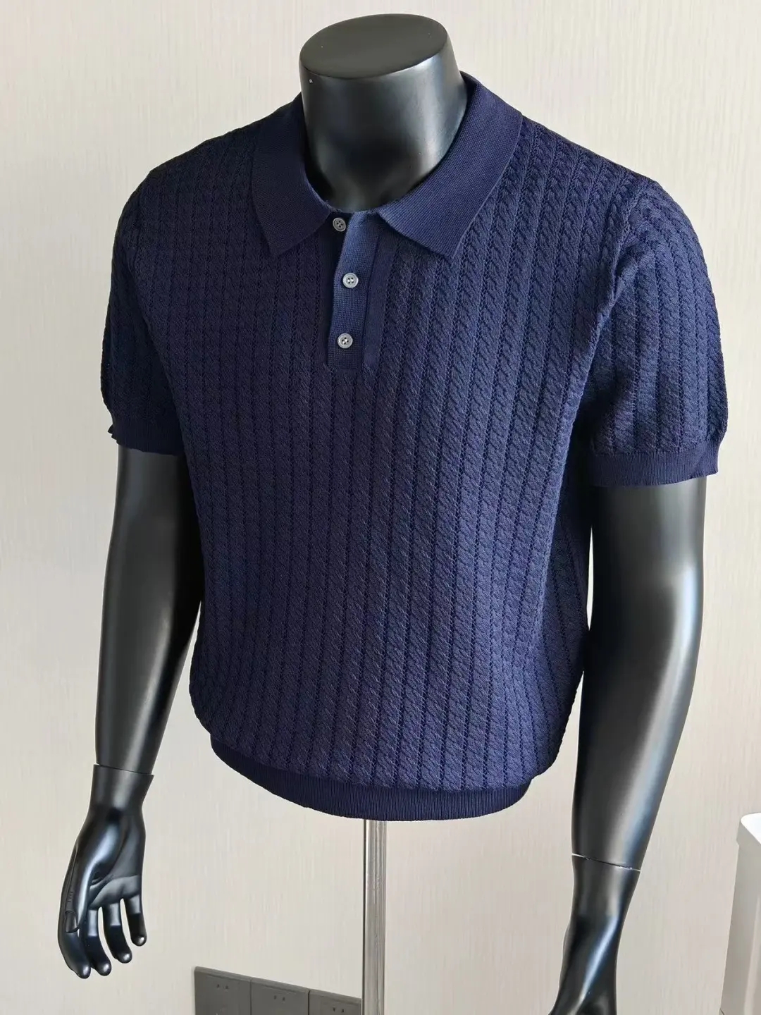 【lyyk-F87107】男子复古翻领针织镂空冰丝短袖POLO衫!!