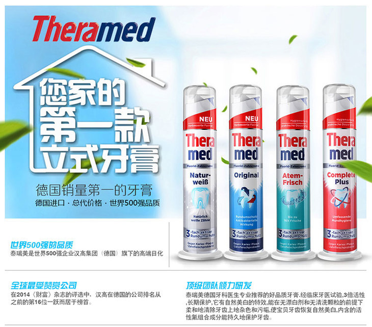 德国 汉高 泰瑞美 立式按压牙膏系列 【2支装】