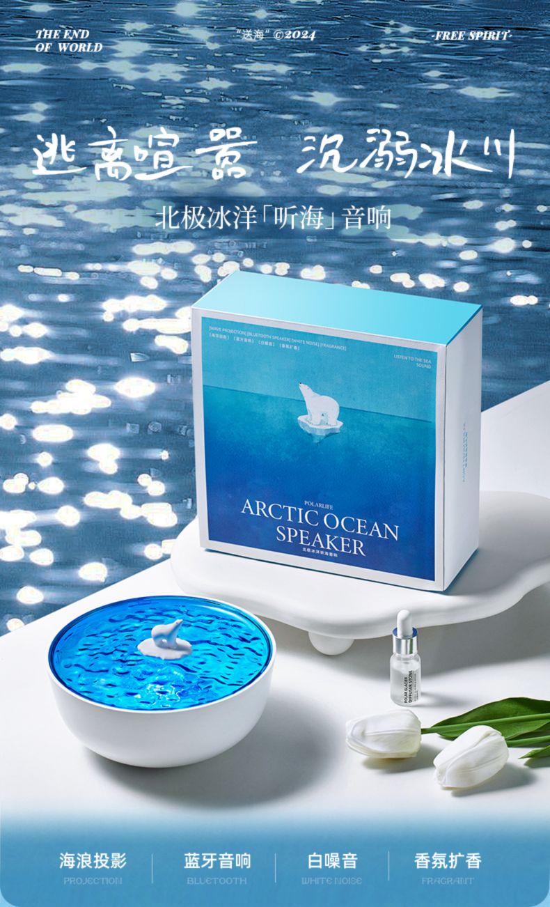 极地物种听海蓝牙音箱海浪投影氛围灯音响情人节生日礼物送男女生