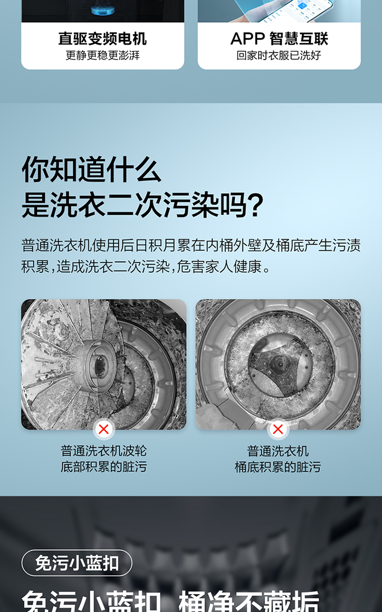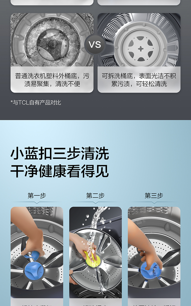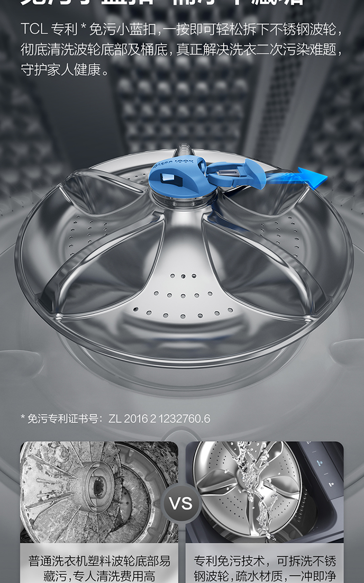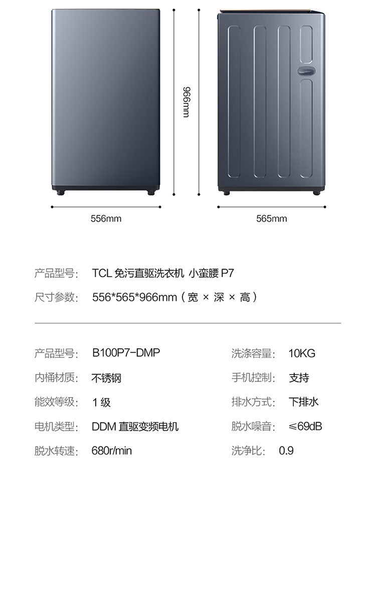 【TCL洗衣机】TCL 10公斤免污直驱波轮洗衣机 B100P7-DMP 小蛮腰