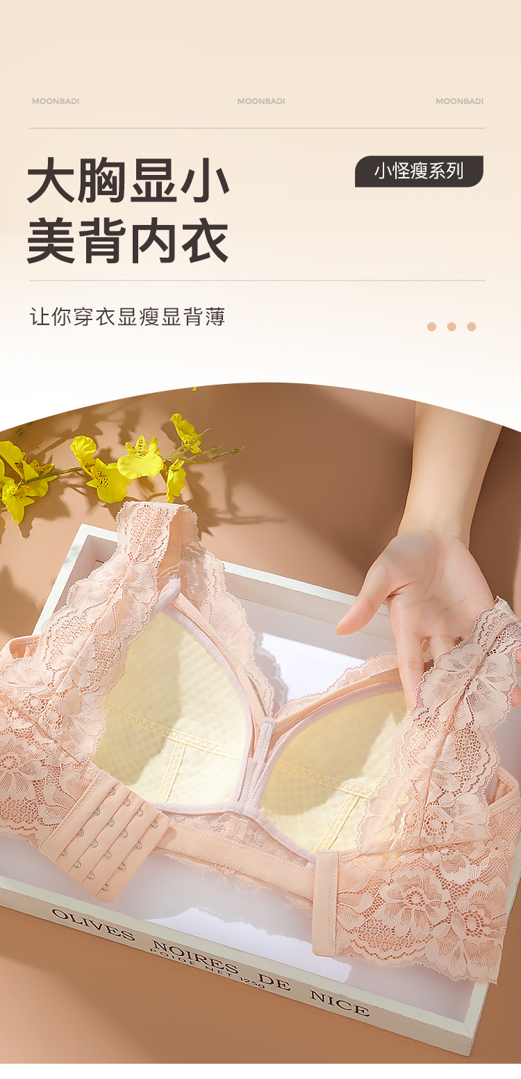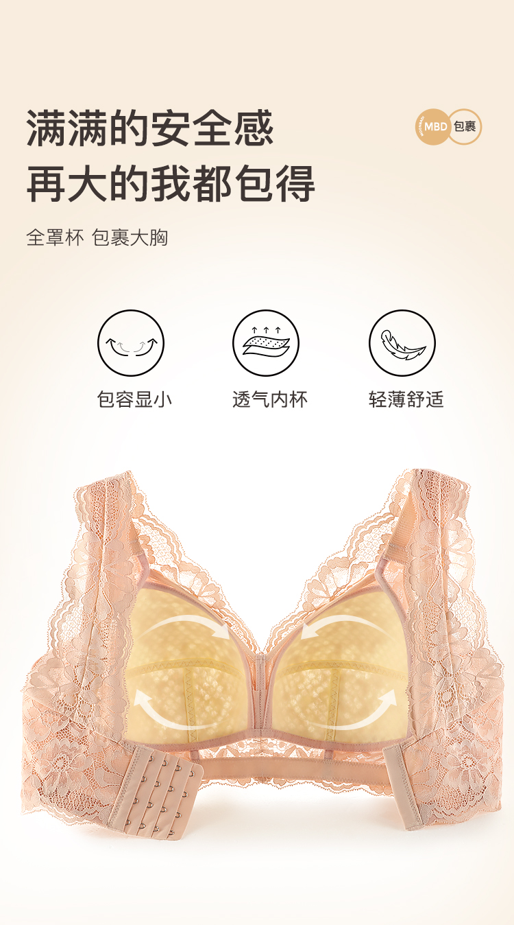 【大胸显小 美背塑形】大码蜂巢杯内衣女透气全罩杯文胸舒适侧收花漾美背