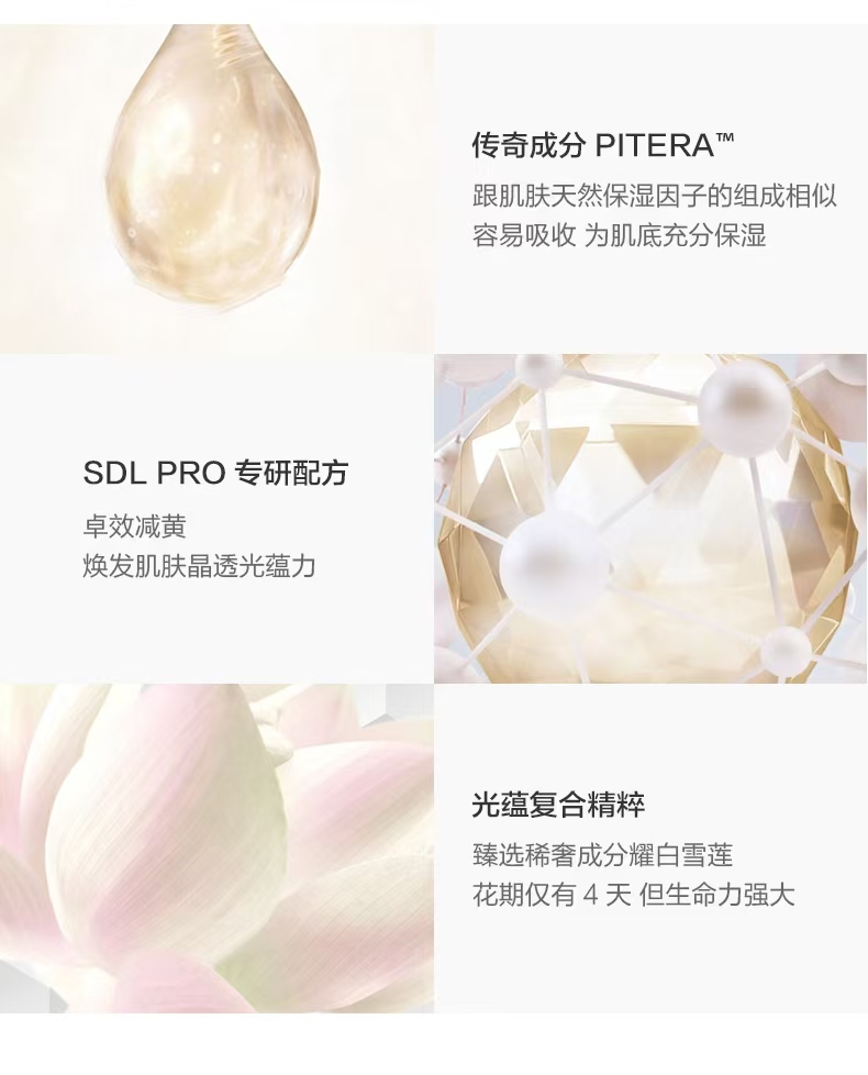 PITERA™+专利红没药醇PRO~修护的同时促生光蛋白~还可以做到抗氧化改善泛红!让肌肤又嫩又透又亮。