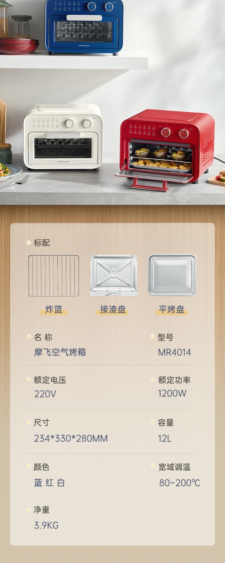 摩飞空气炸烤箱MR4014蓝色
