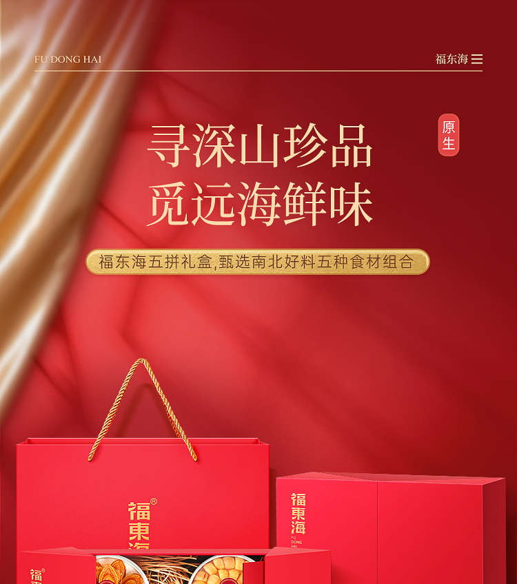福东海 鲍鱼元贝鹿茸菇松茸西洋参305克五拼礼盒 五宝养生组合滋补品送长辈见面礼滋补品