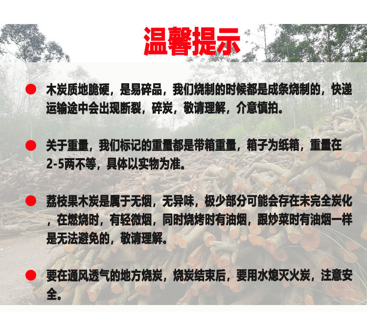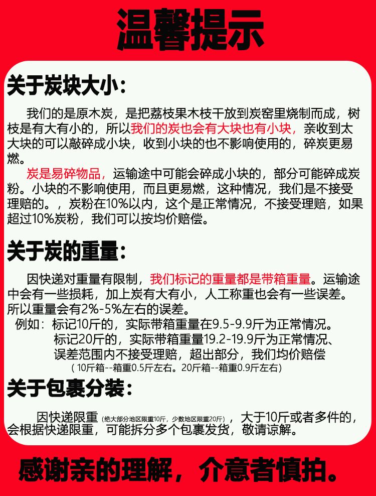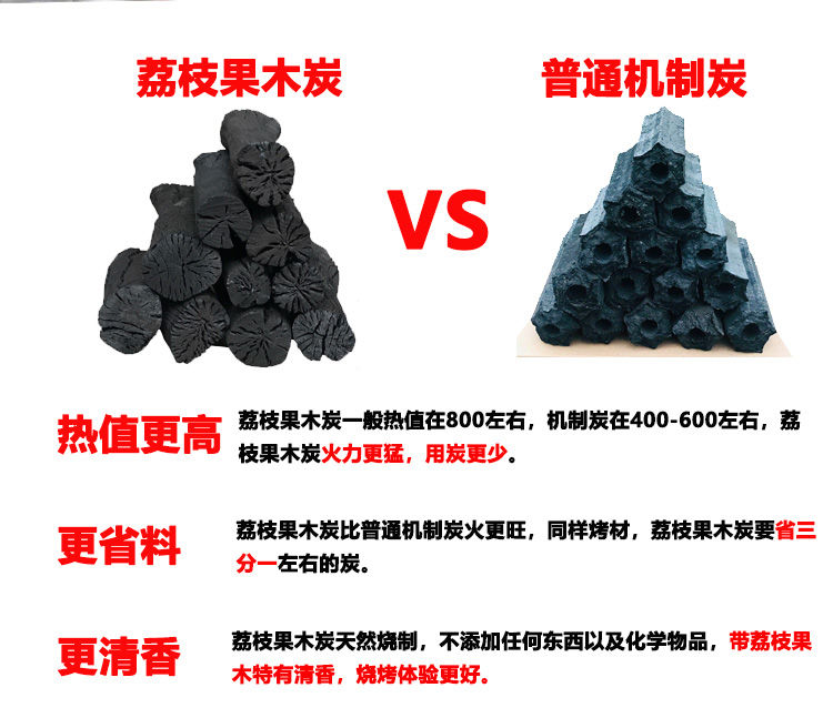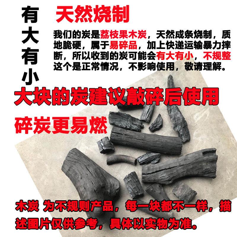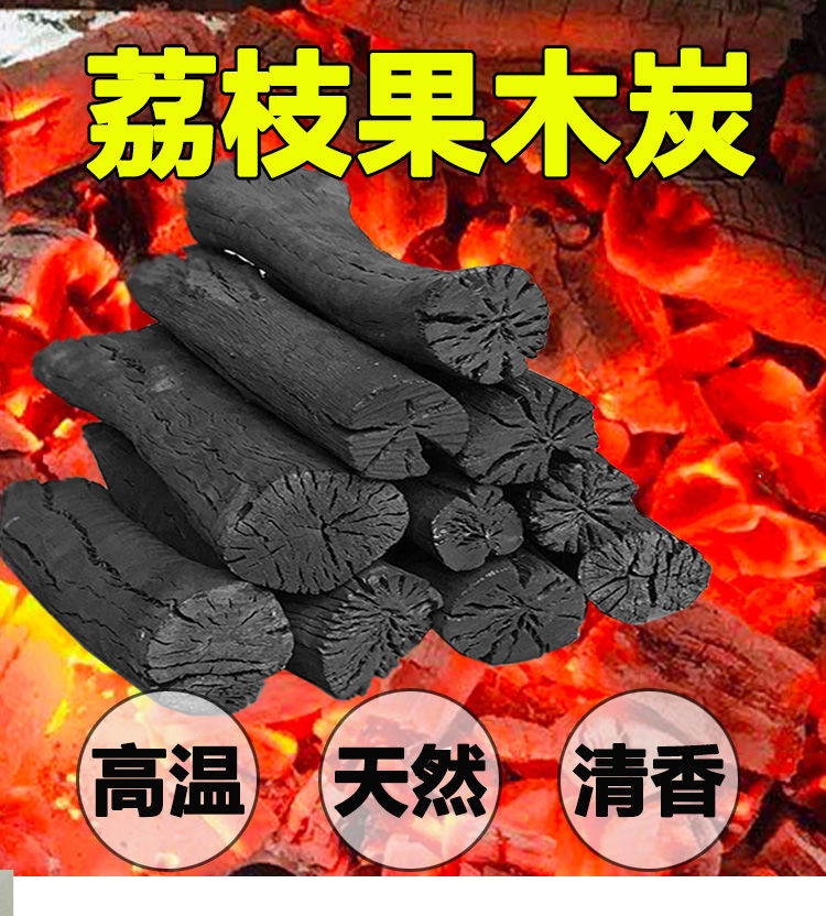 烧烤炭荔枝果木炭烧烤木炭专用无烟取暖炭耐烧易燃木炭原木烧烤碳