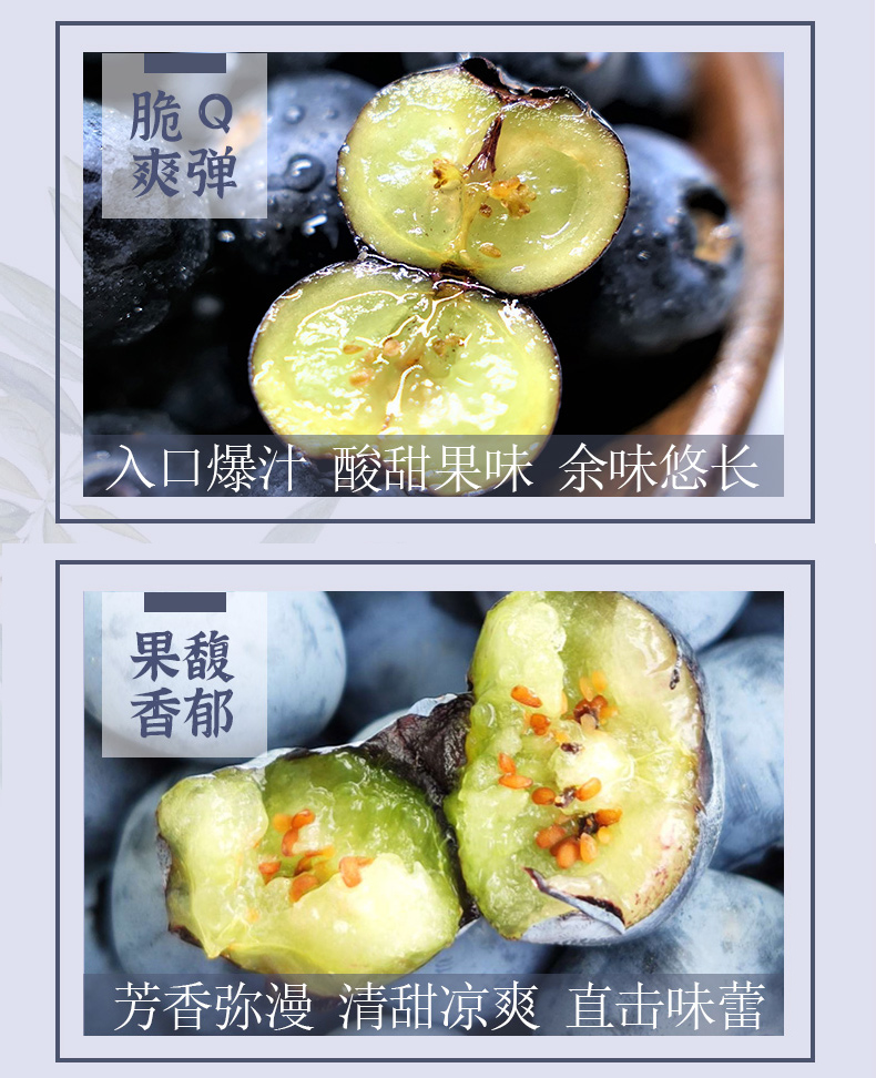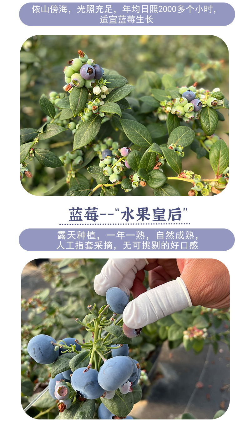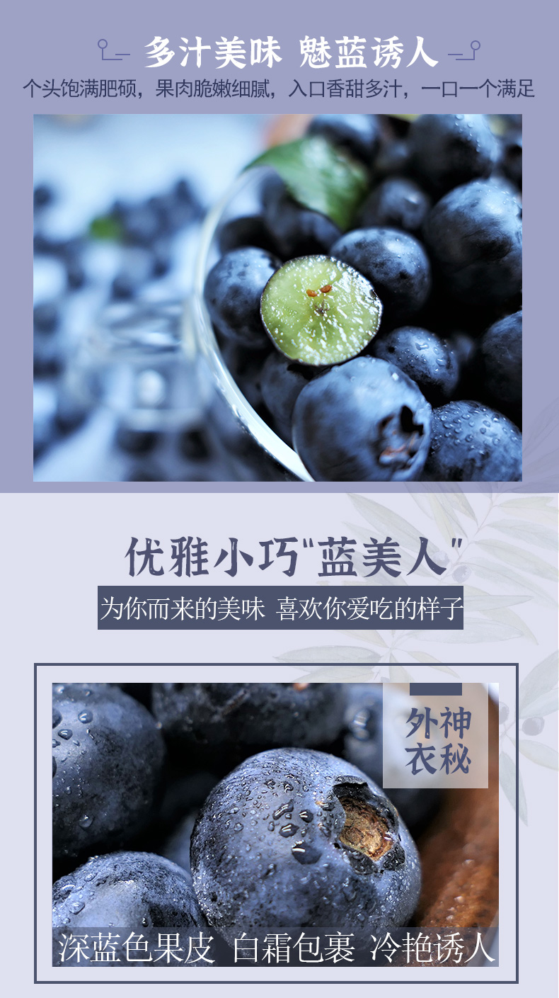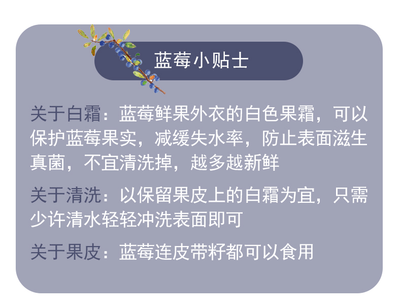 1.蓝莓表面的白色粉末为果霜,清水简单冲洗即可食用