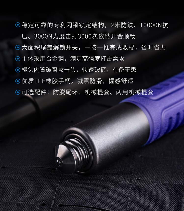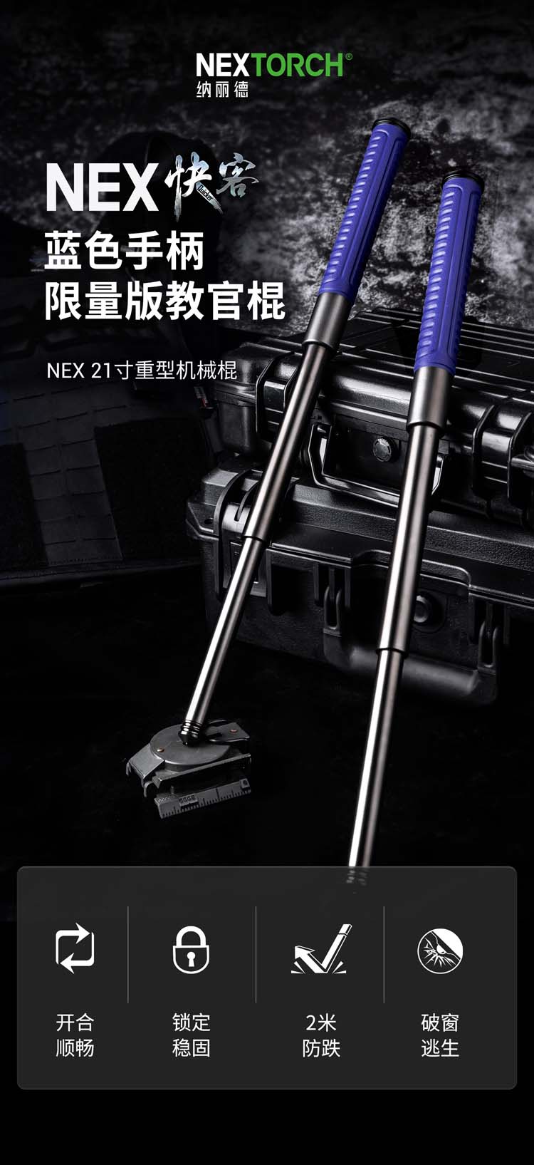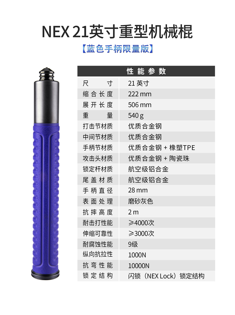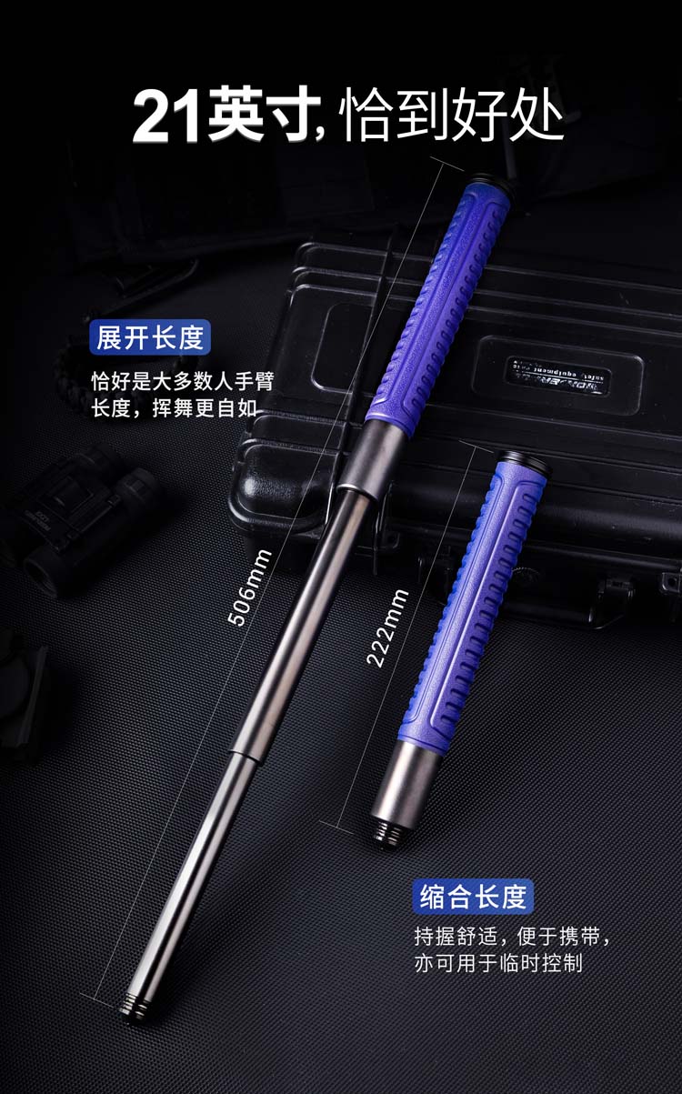 纳丽德 21英寸DLC涂层重机蓝色勤务教官棍机械甩棍防身武器三节棍