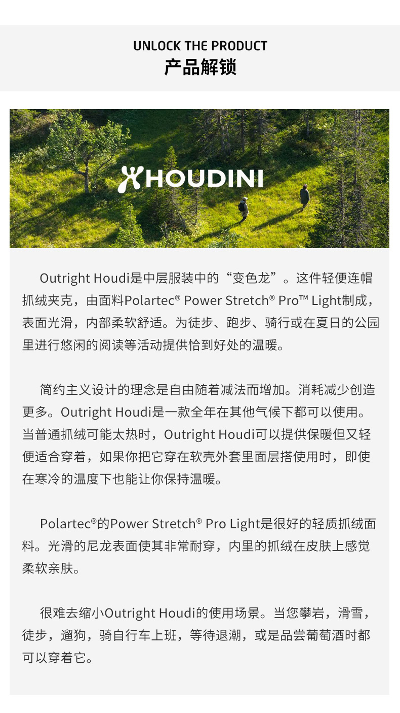 HOUDINI胡丁尼 Outright Houdi 直率户外女秋季保暖连帽抓绒衣外套 129664