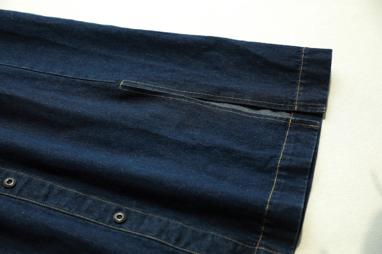 后腰松紧,有腰两侧有插兜,下摆前片两侧有开叉,小细节多经得住时间