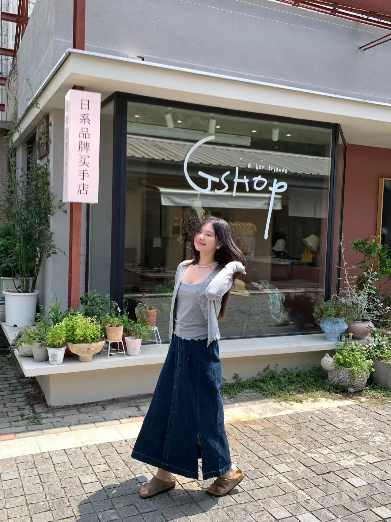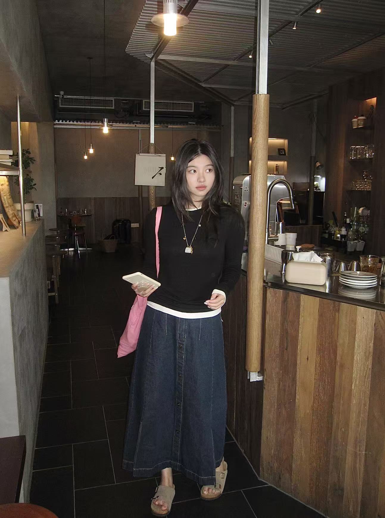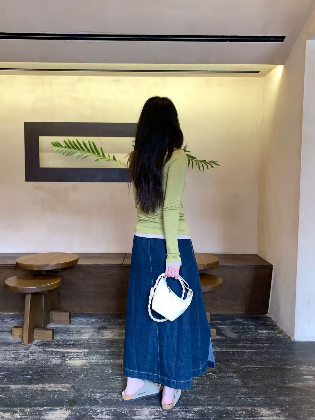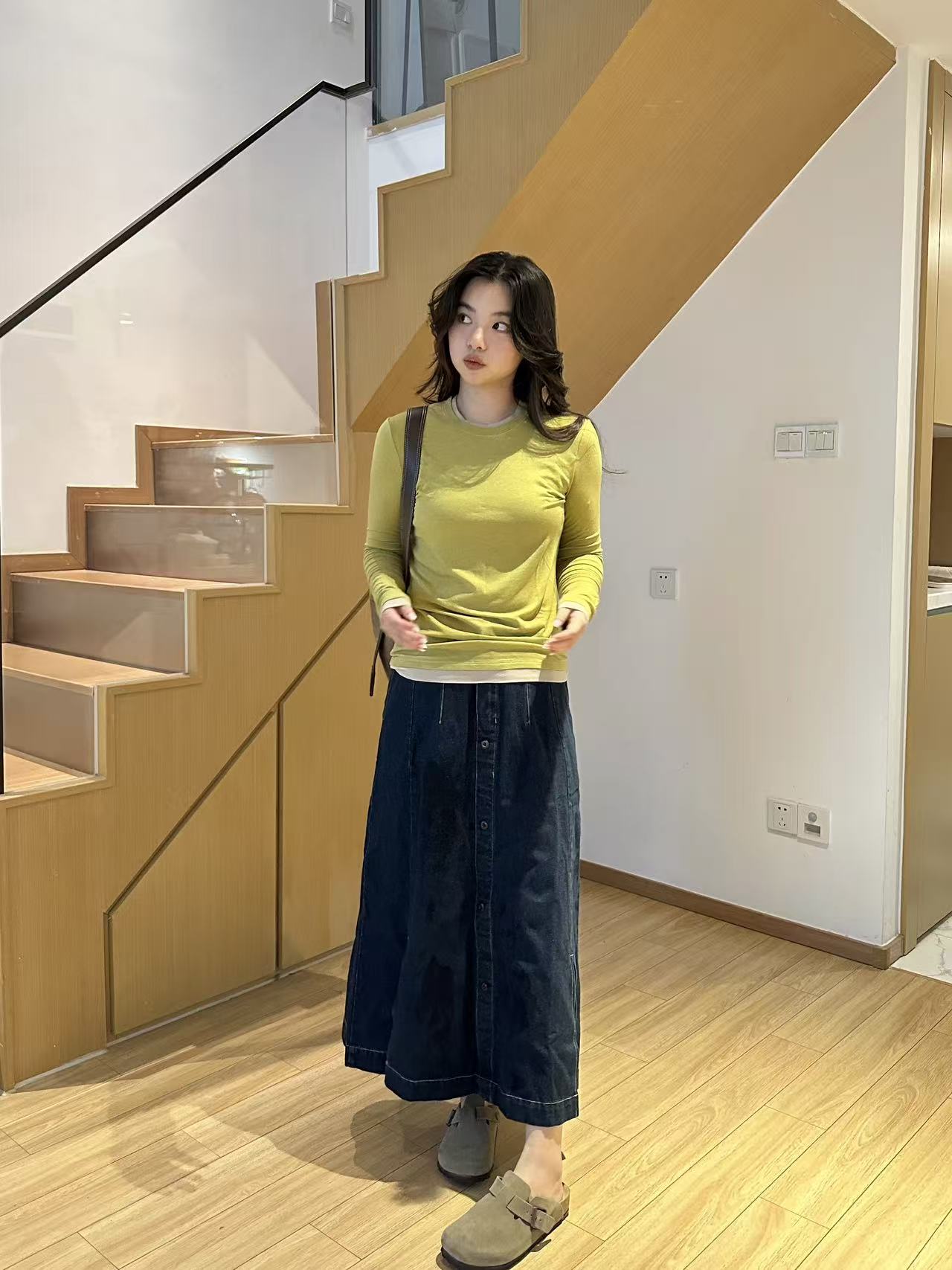秋冬的牛仔半裙就是好穿,不粘毛好配搭,配板鞋运动鞋小皮鞋靴子都好看
