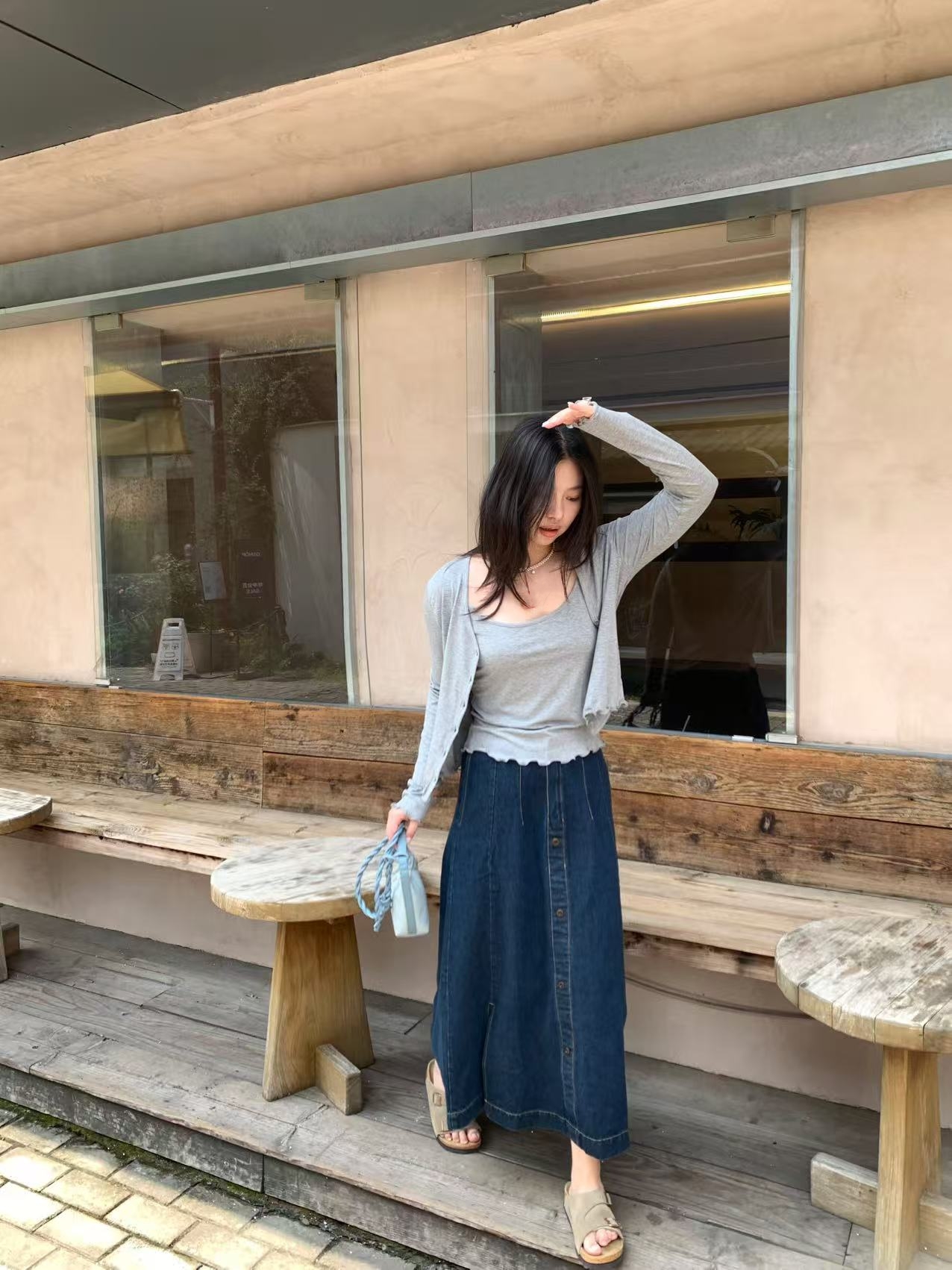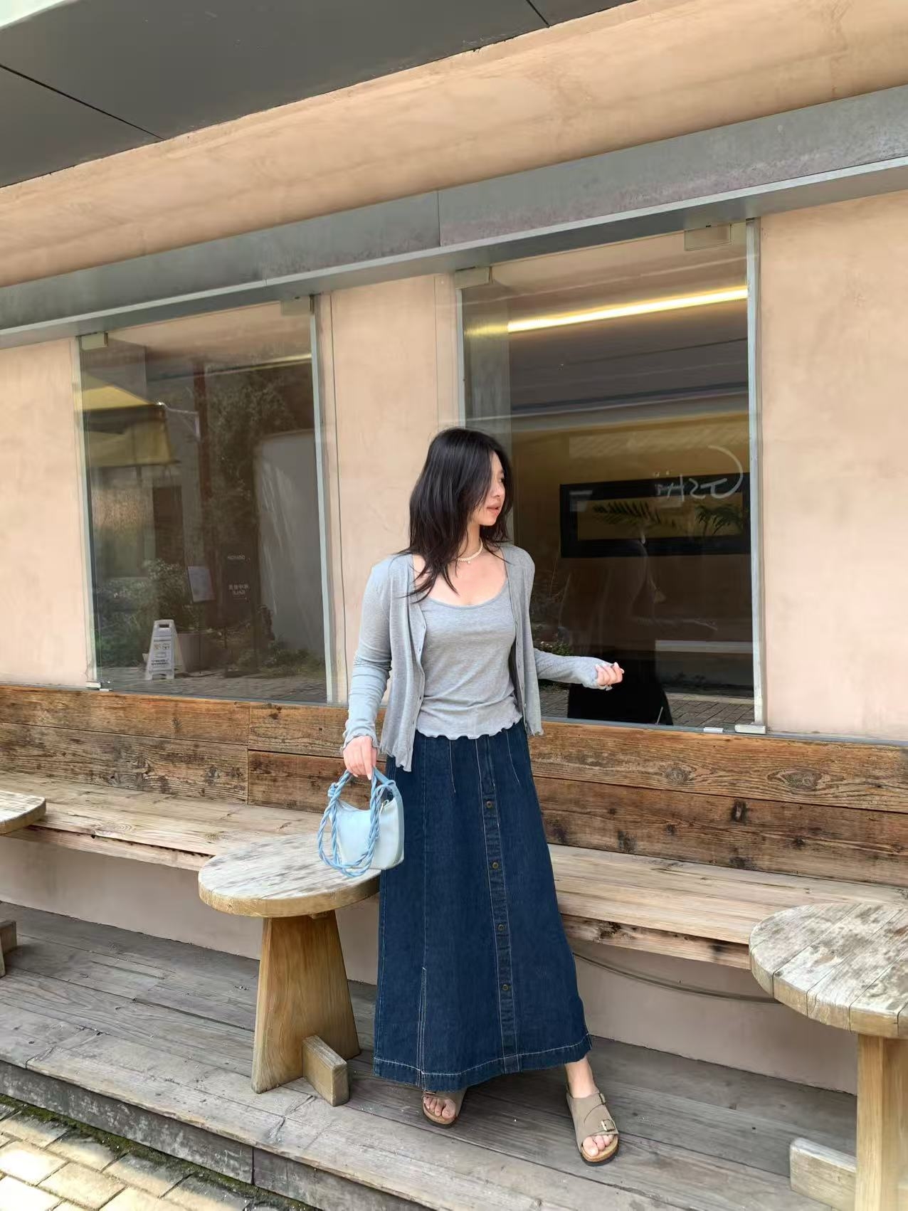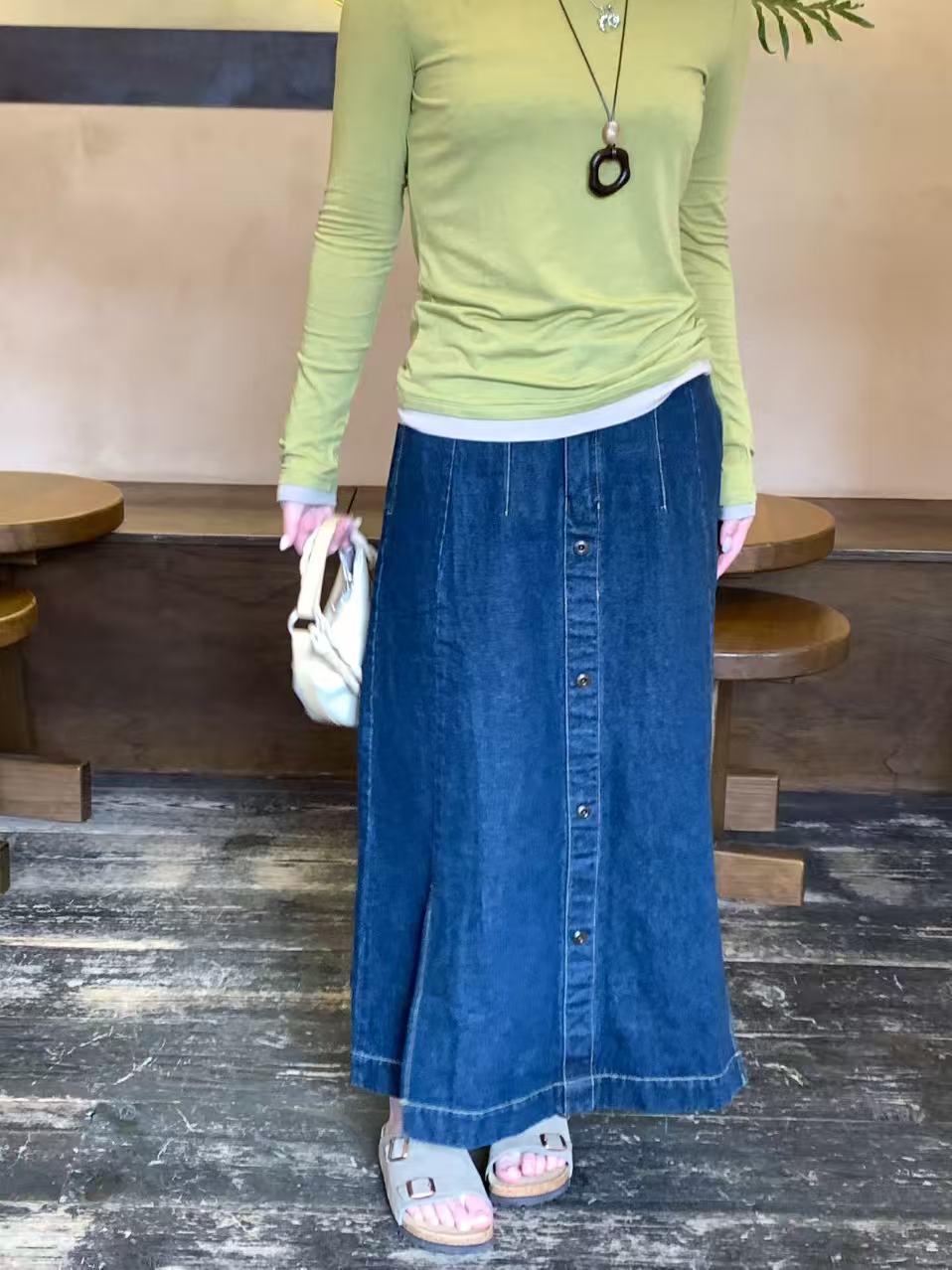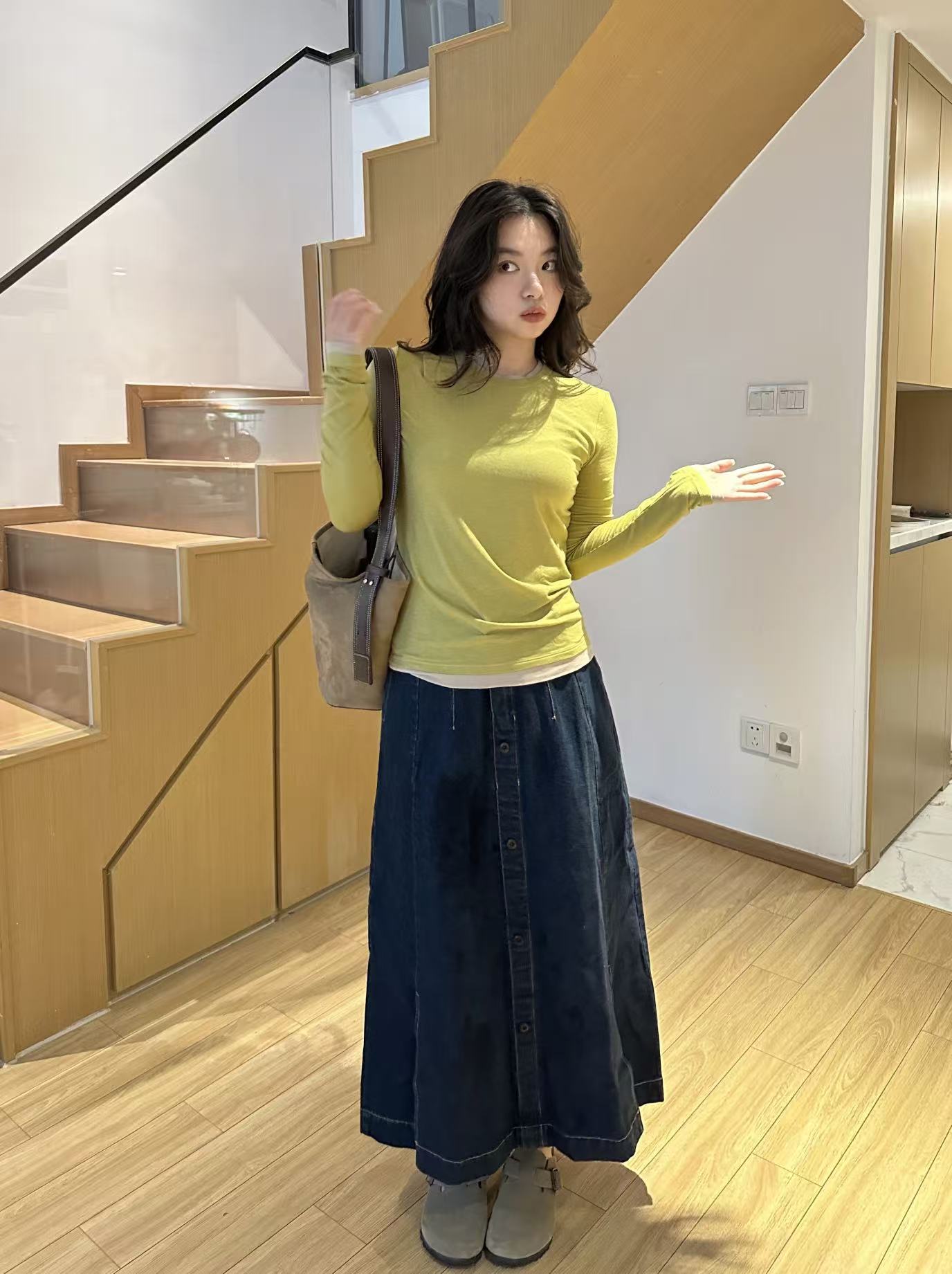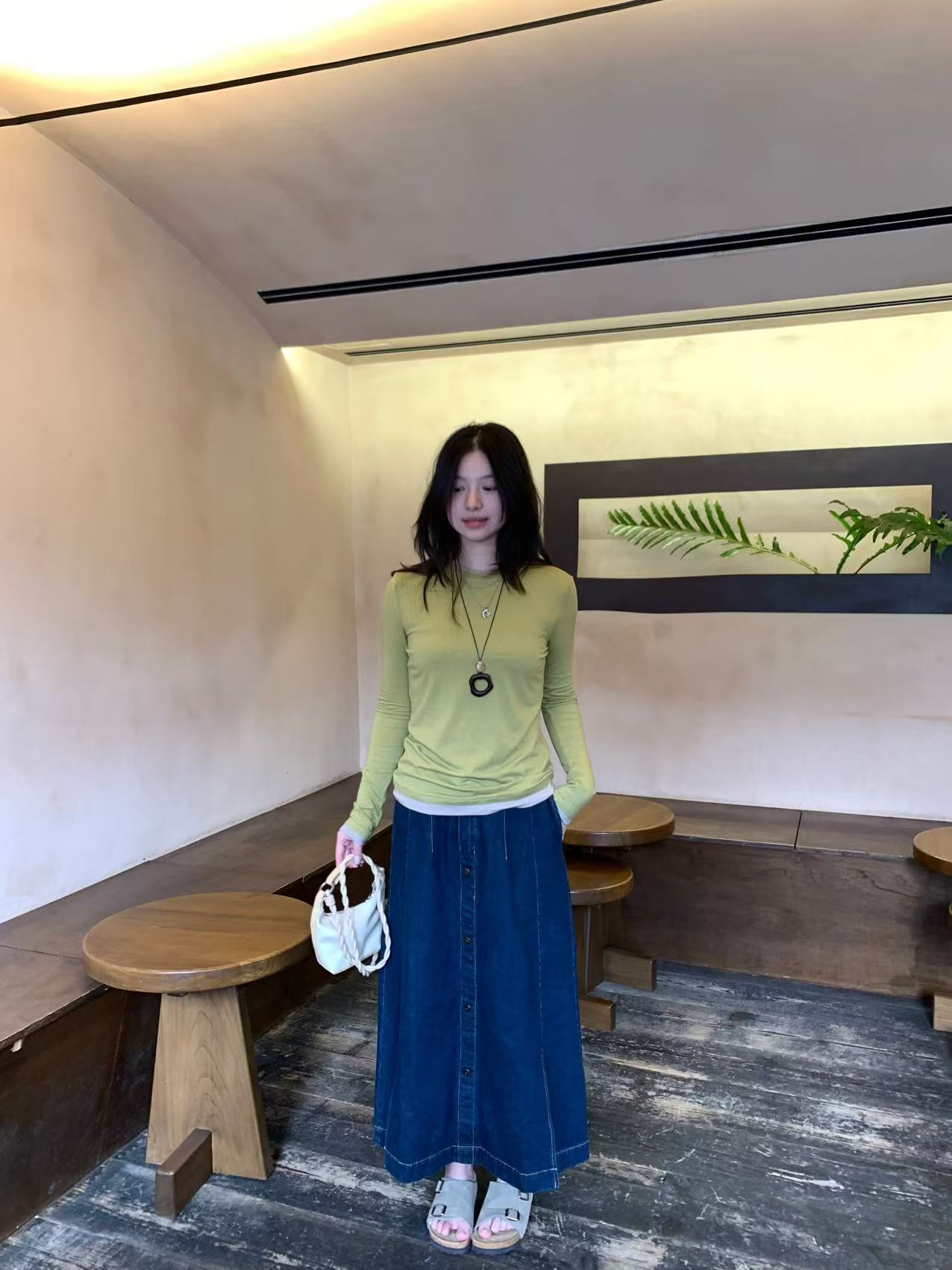 秋冬的牛仔半裙就是好穿,不粘毛好配搭,配板鞋运动鞋小皮鞋靴子都好看