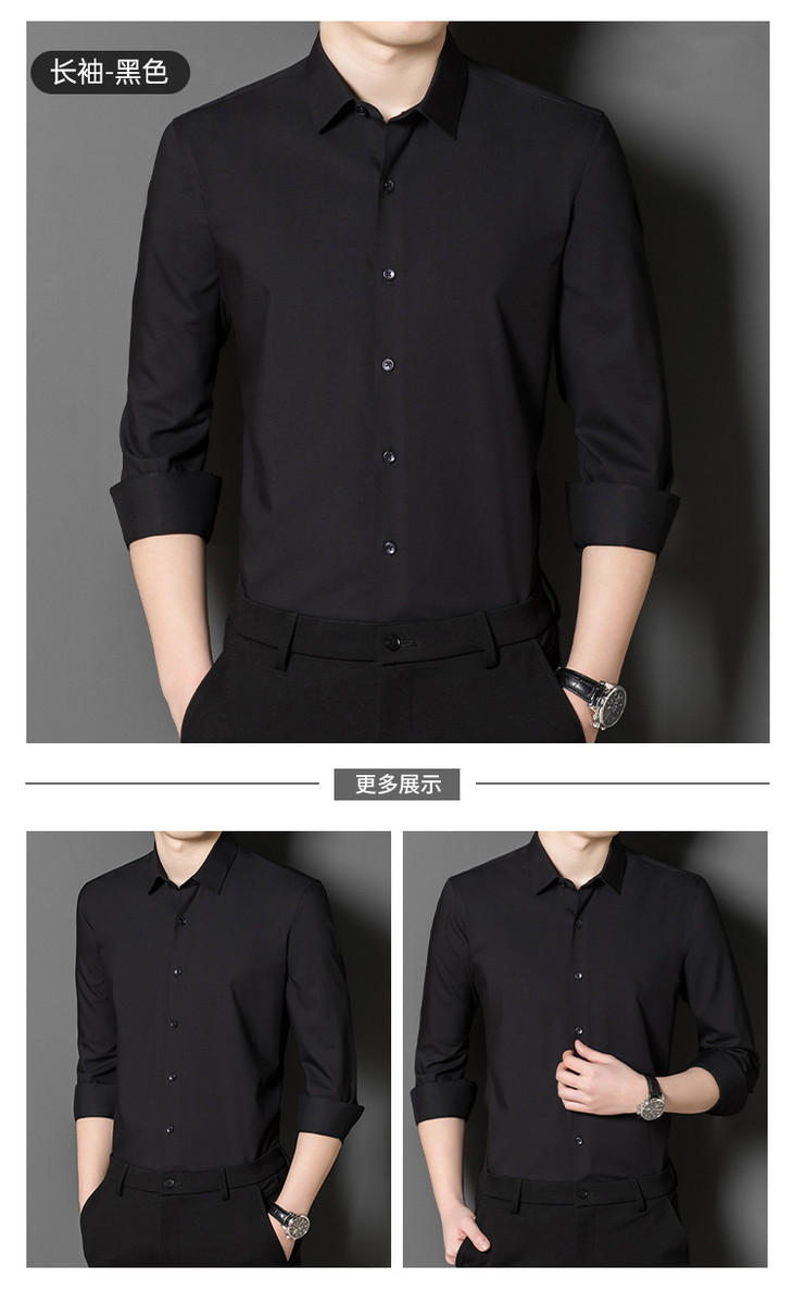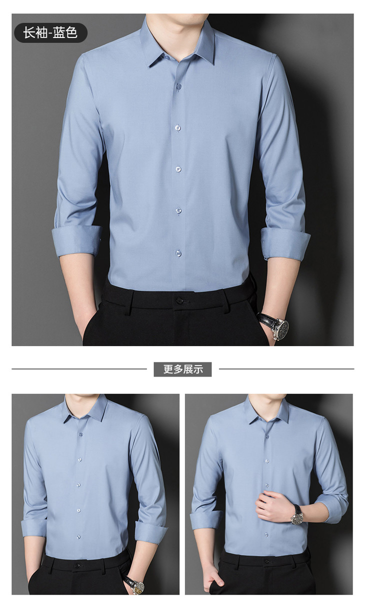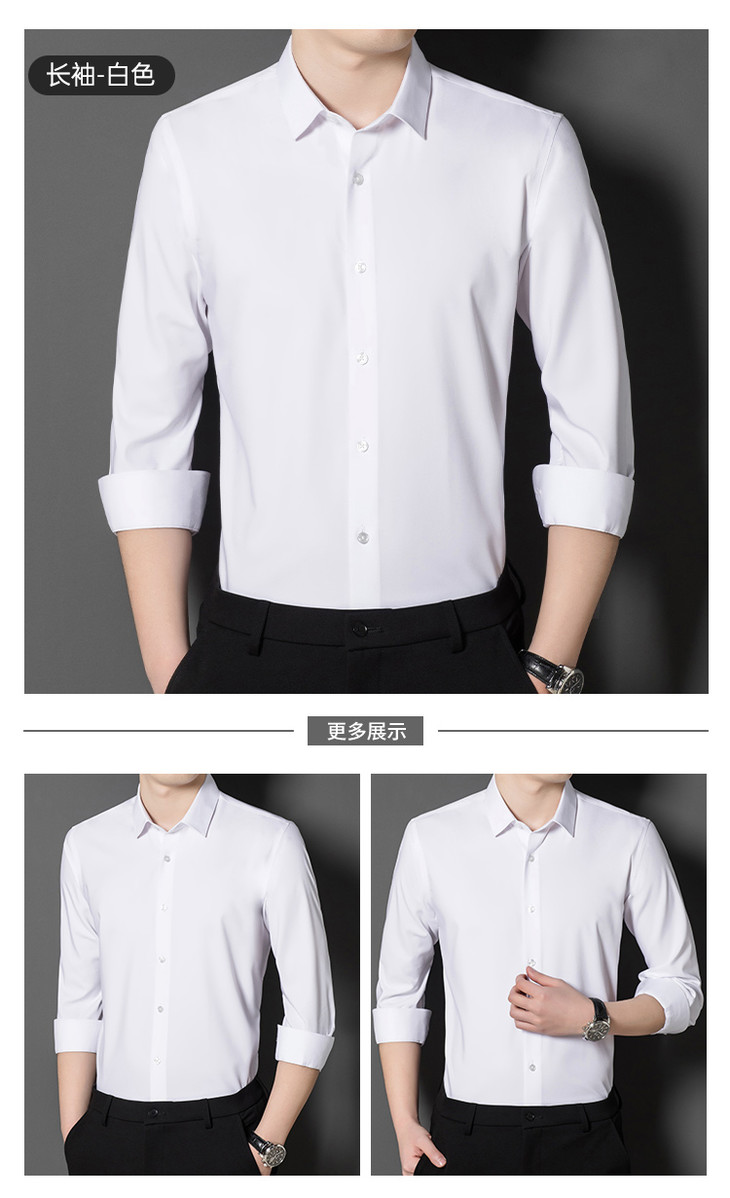 【桑蚕丝弹力免烫衬衫】商务通勤翻领长袖衬衫 透气修身男士短袖衬衣
