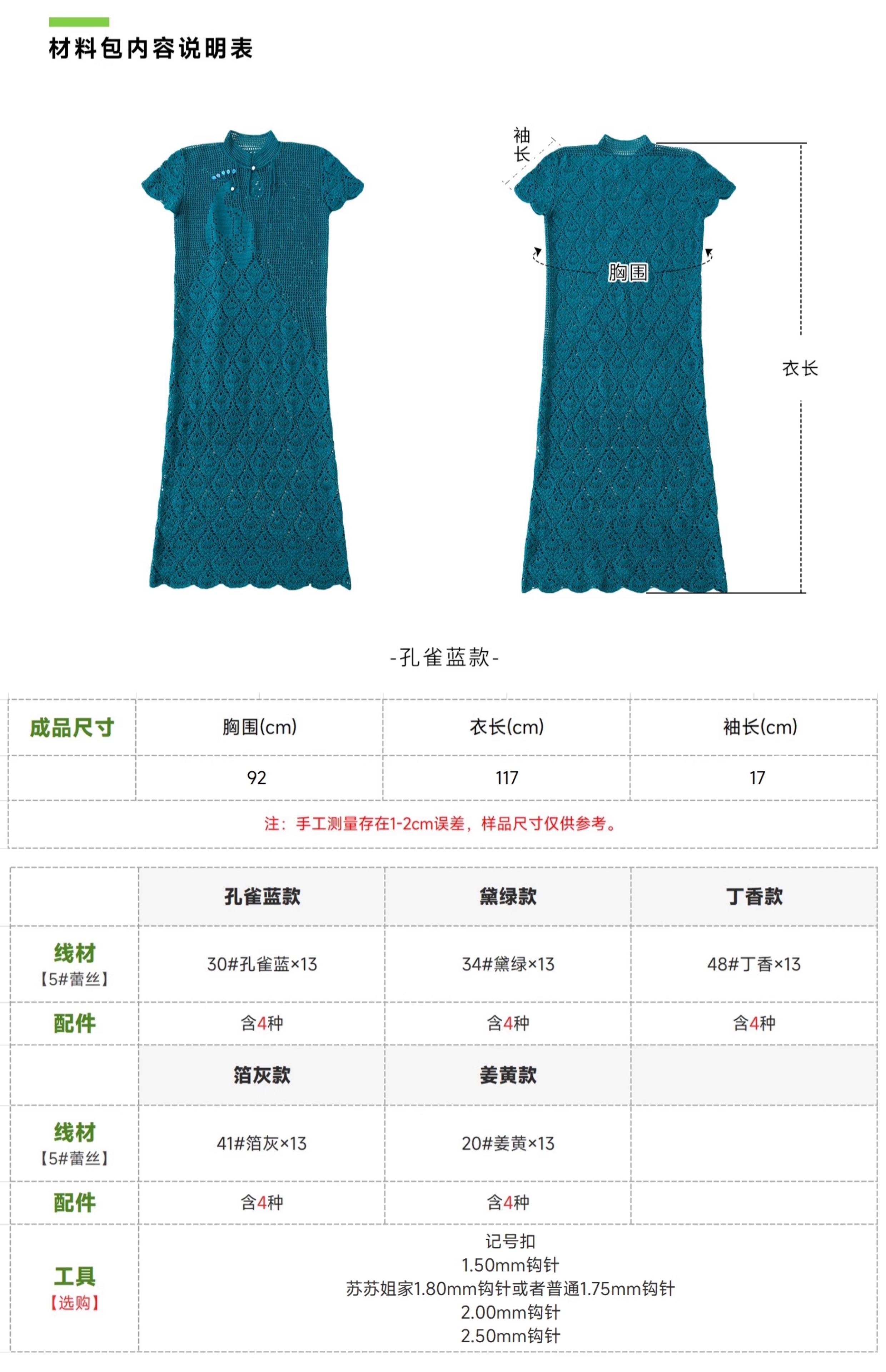 苏苏姐家翠羽灵雀旗袍裙手工DIY钩针裙子蕾丝线毛线团自制材料包