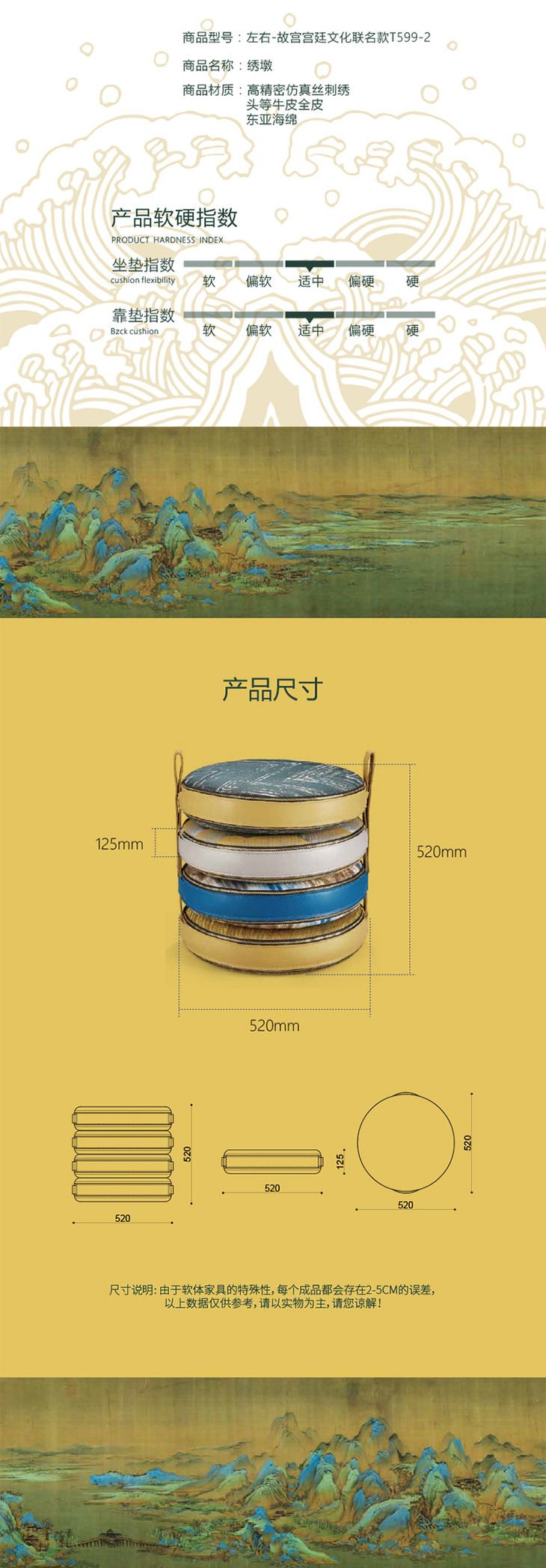 千里江山系列 四款四色 绣墩 故宫宫廷文化携手左右沙发