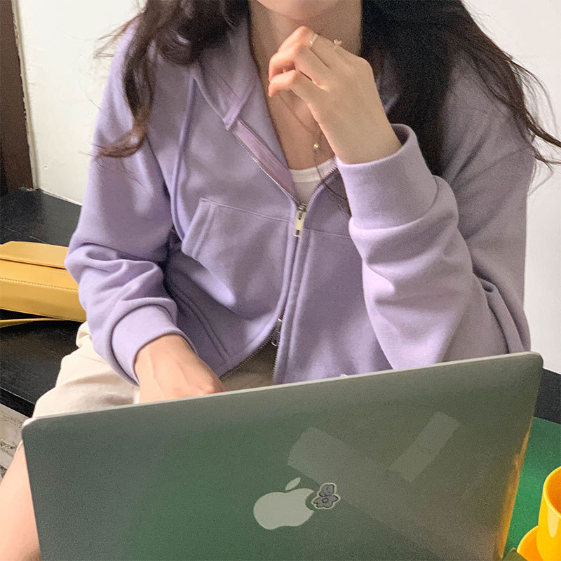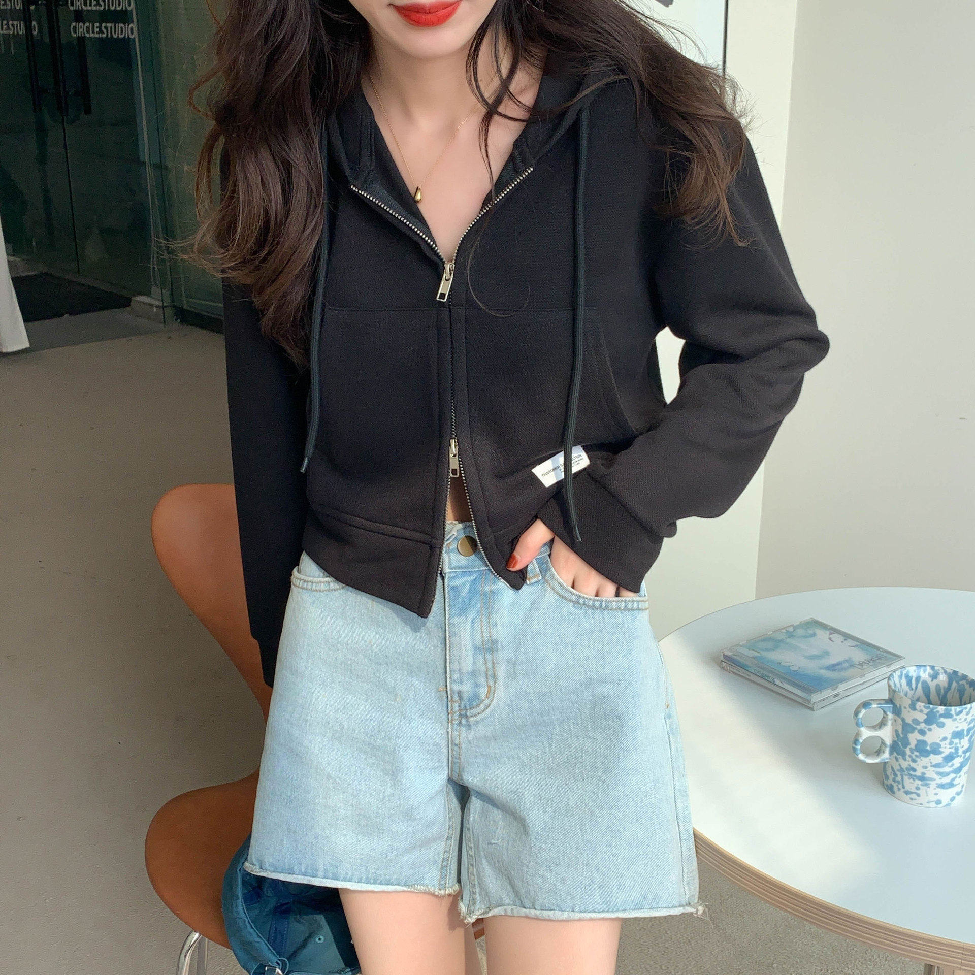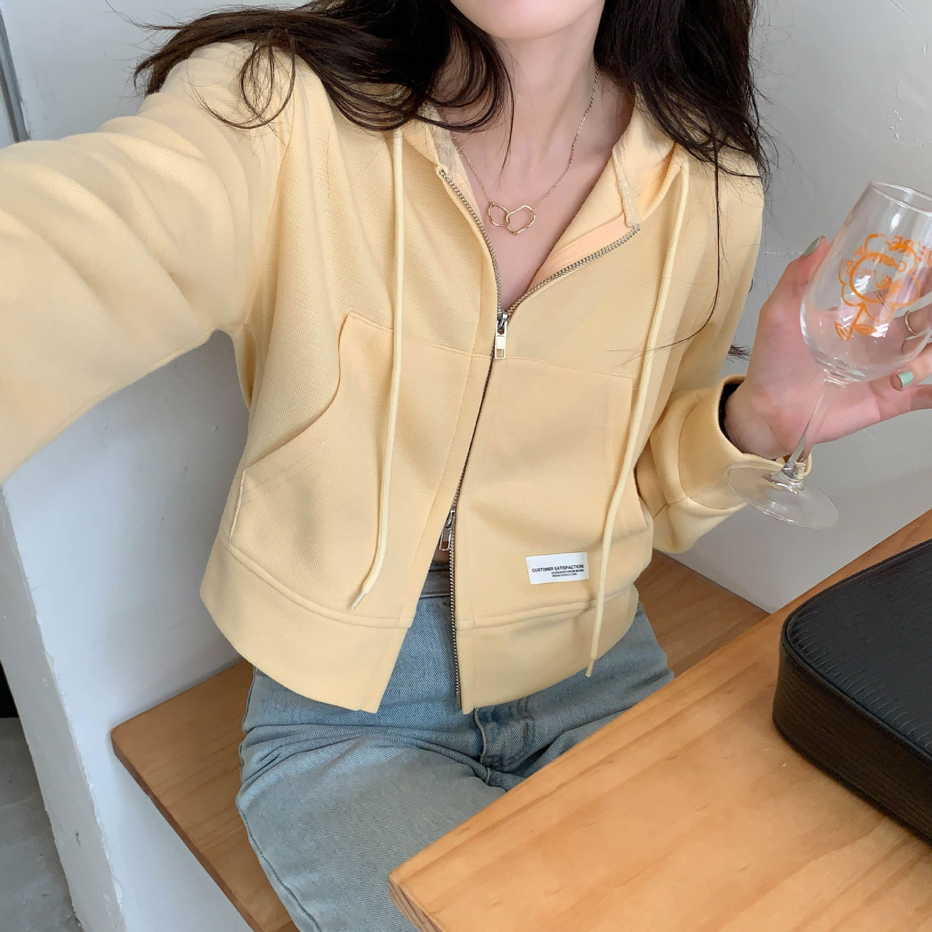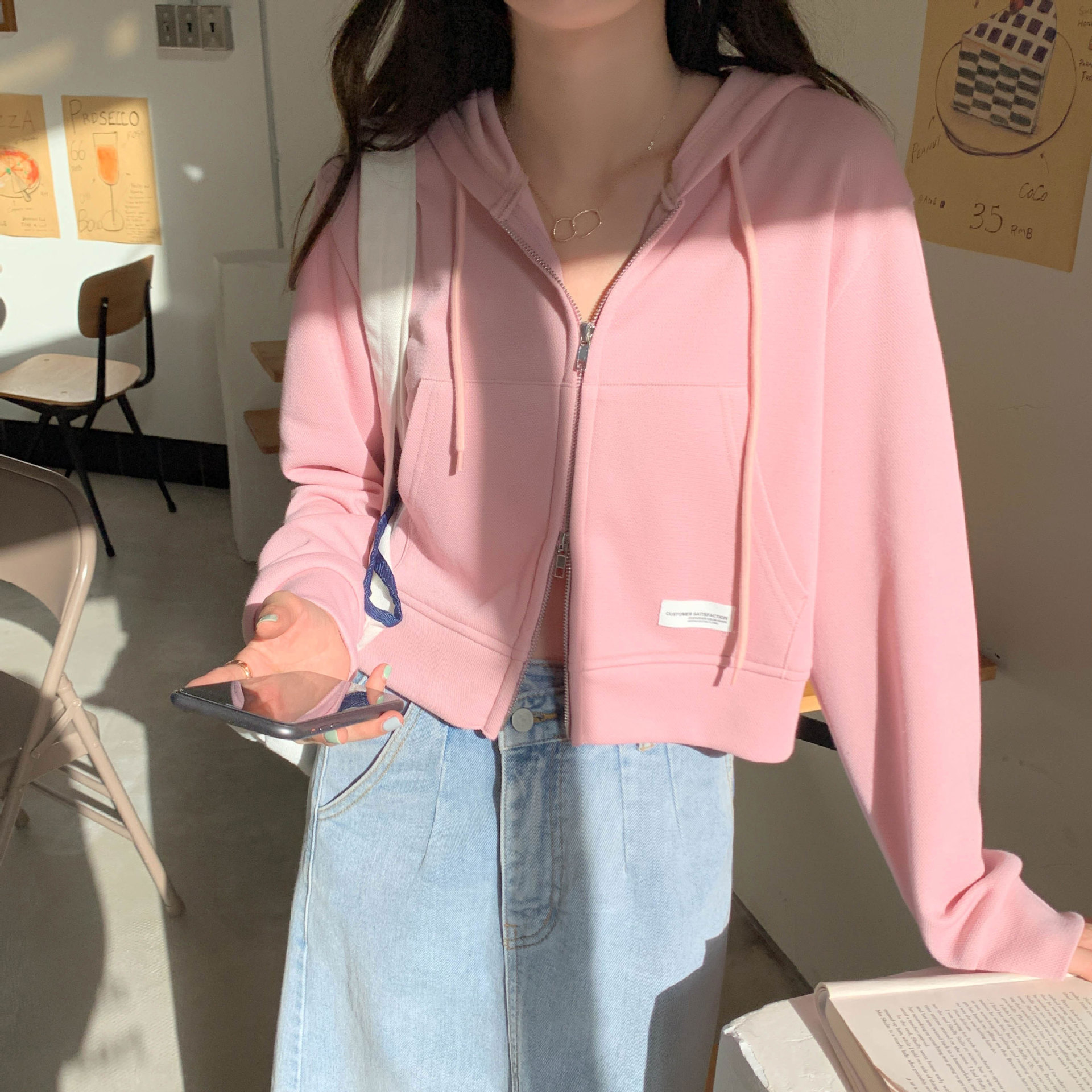 【时尚休闲之选!薄款卫衣】女短款拉链小众设计感短款粉色上衣休闲连帽开衫 商品图0