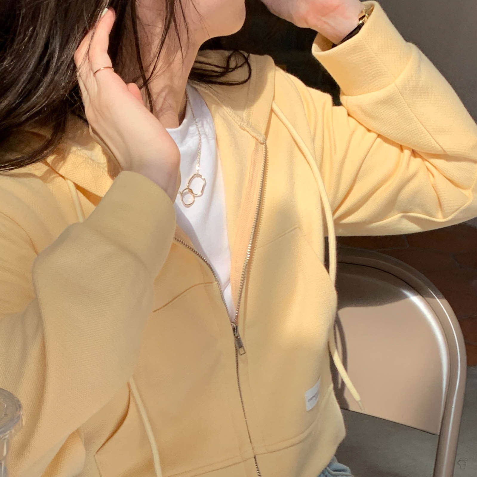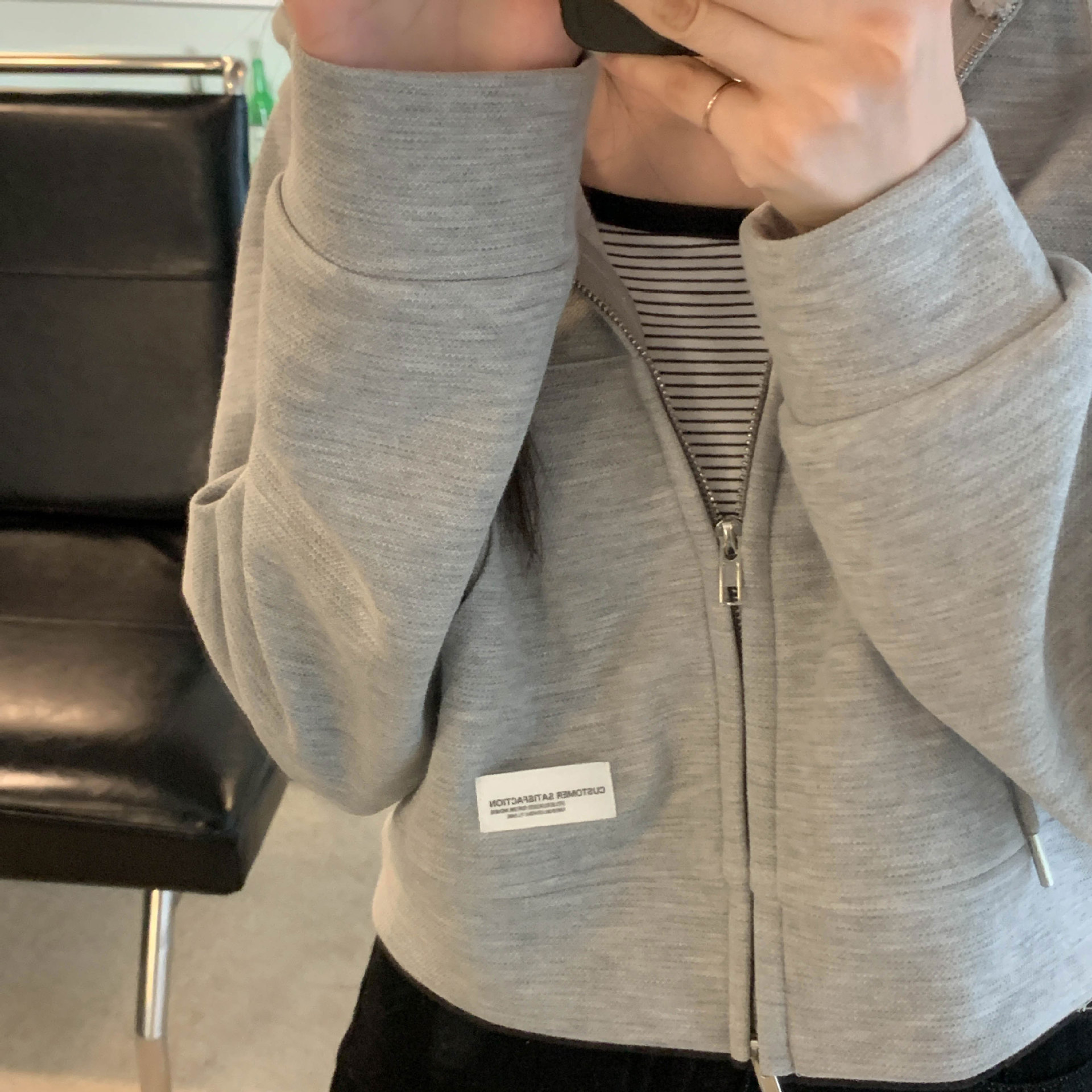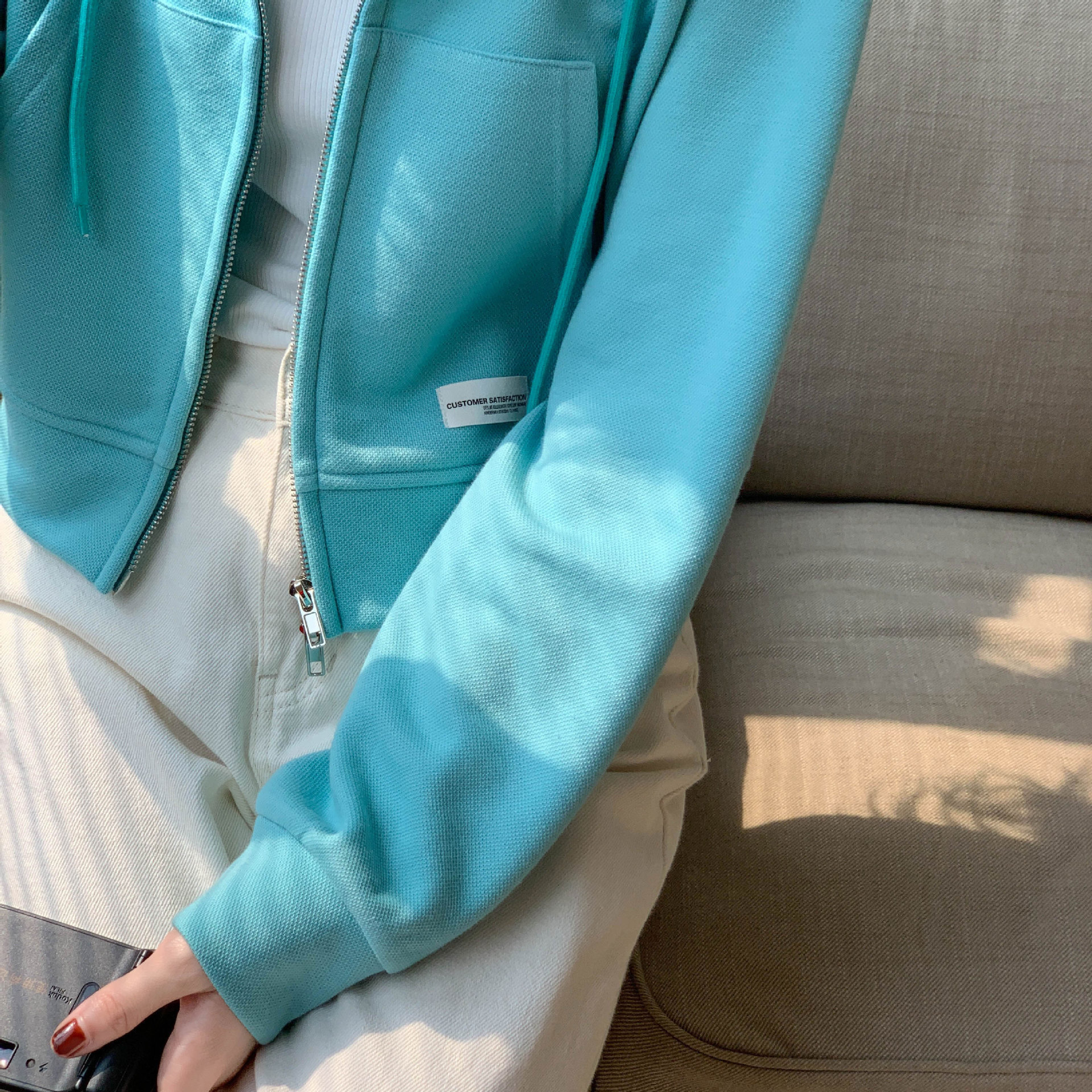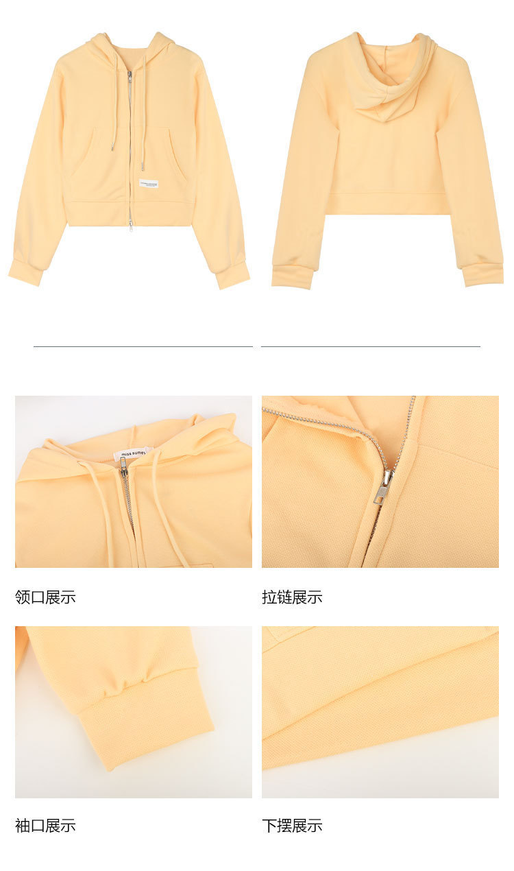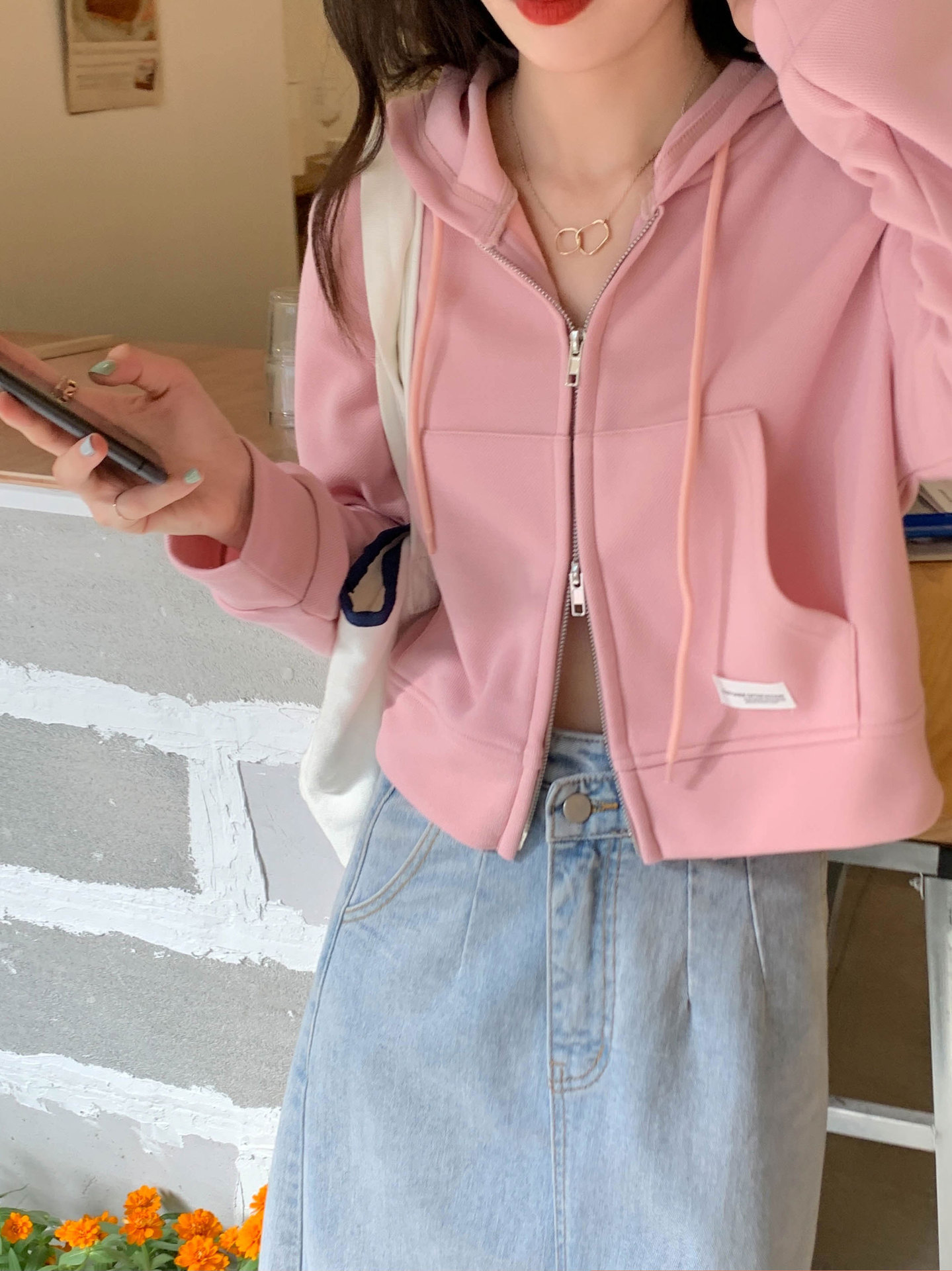 【时尚休闲之选!薄款卫衣】女短款拉链小众设计感短款粉色上衣休闲连帽开衫 商品图3