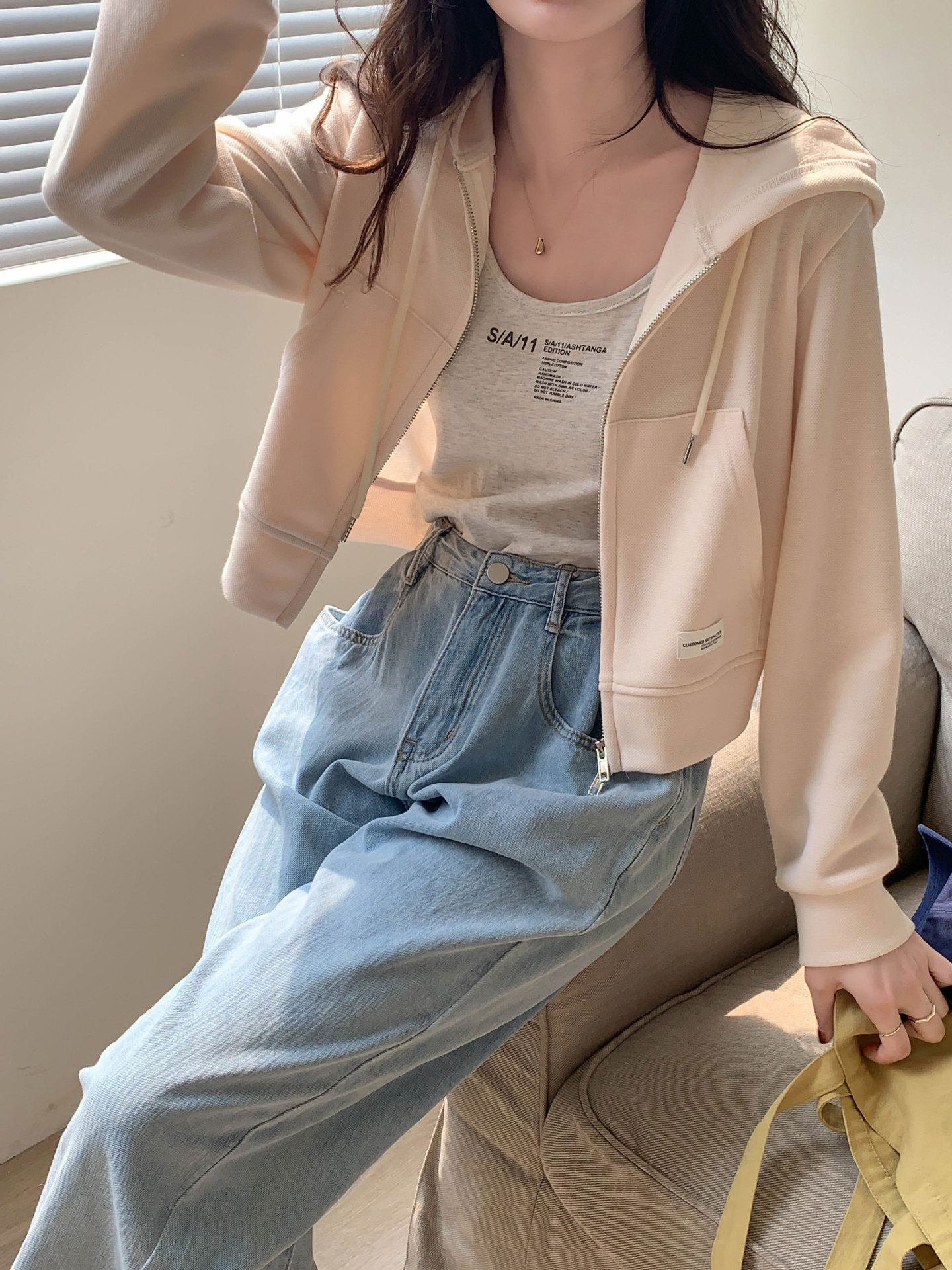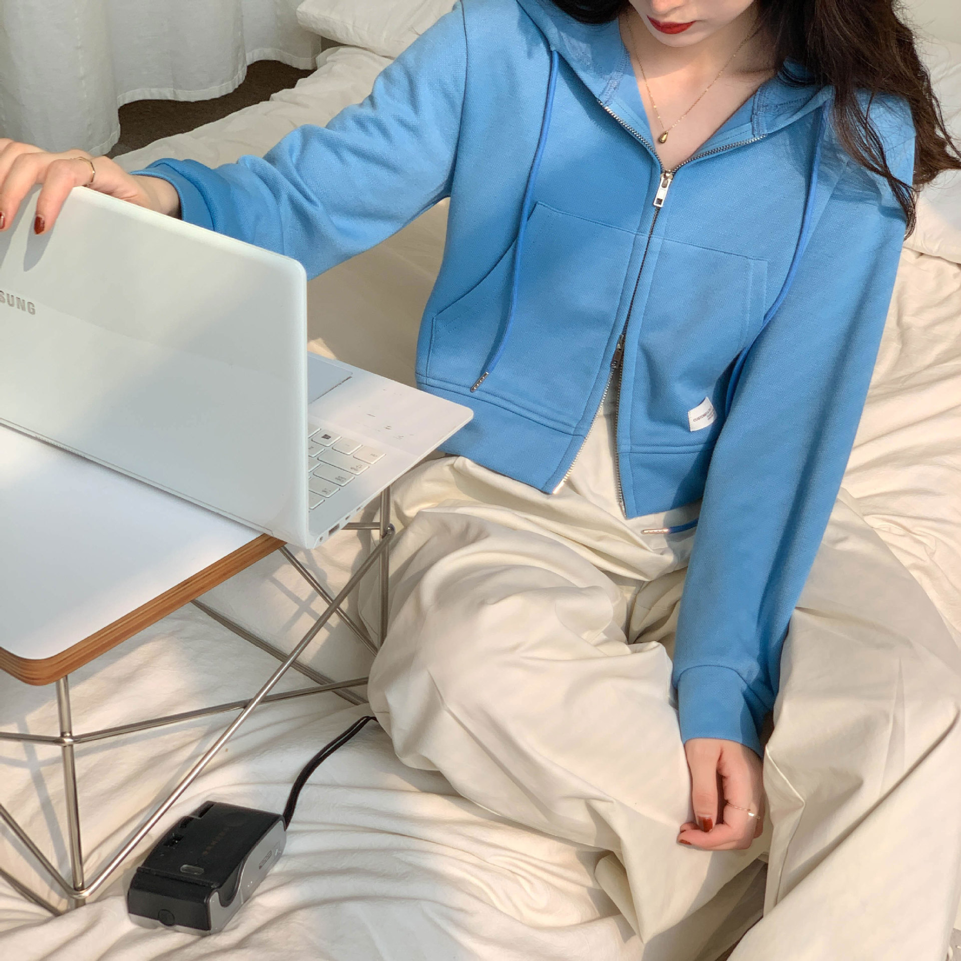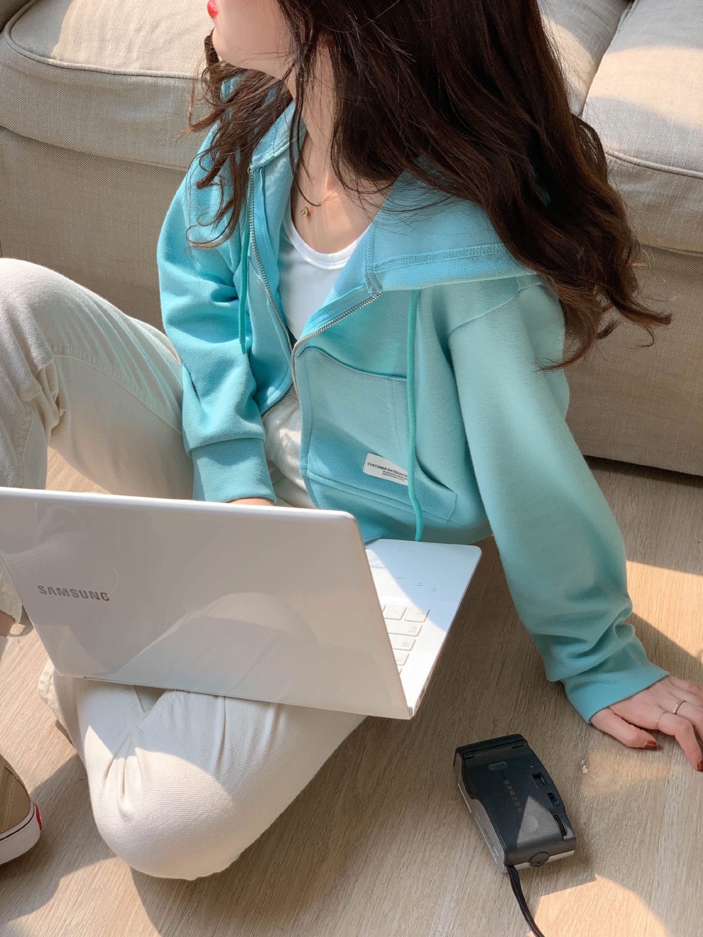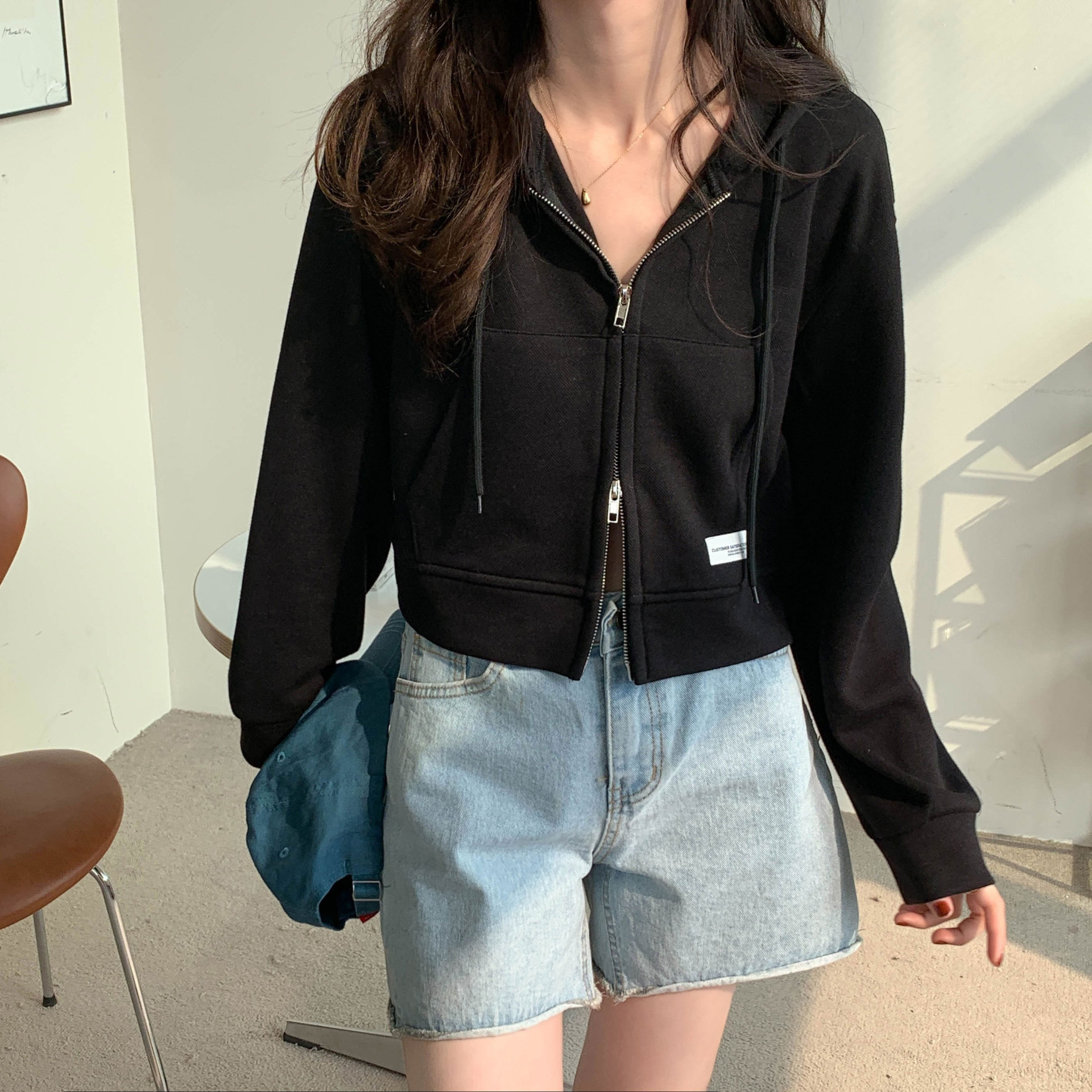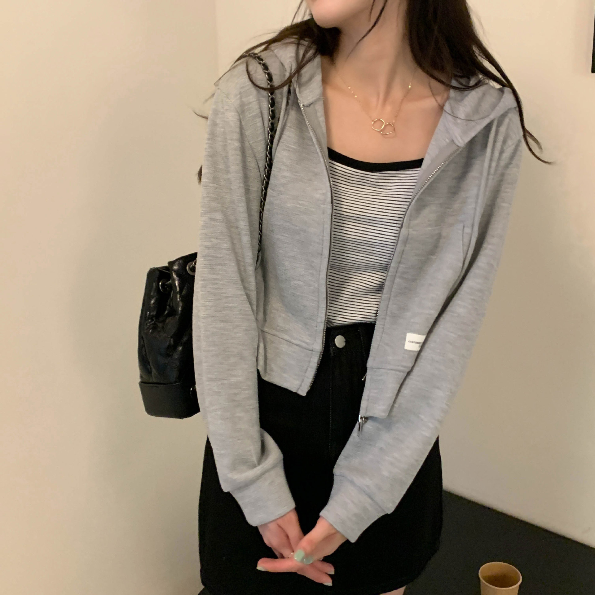 【时尚休闲之选!薄款卫衣】女短款拉链小众设计感短款粉色上衣休闲连帽开衫 商品图3