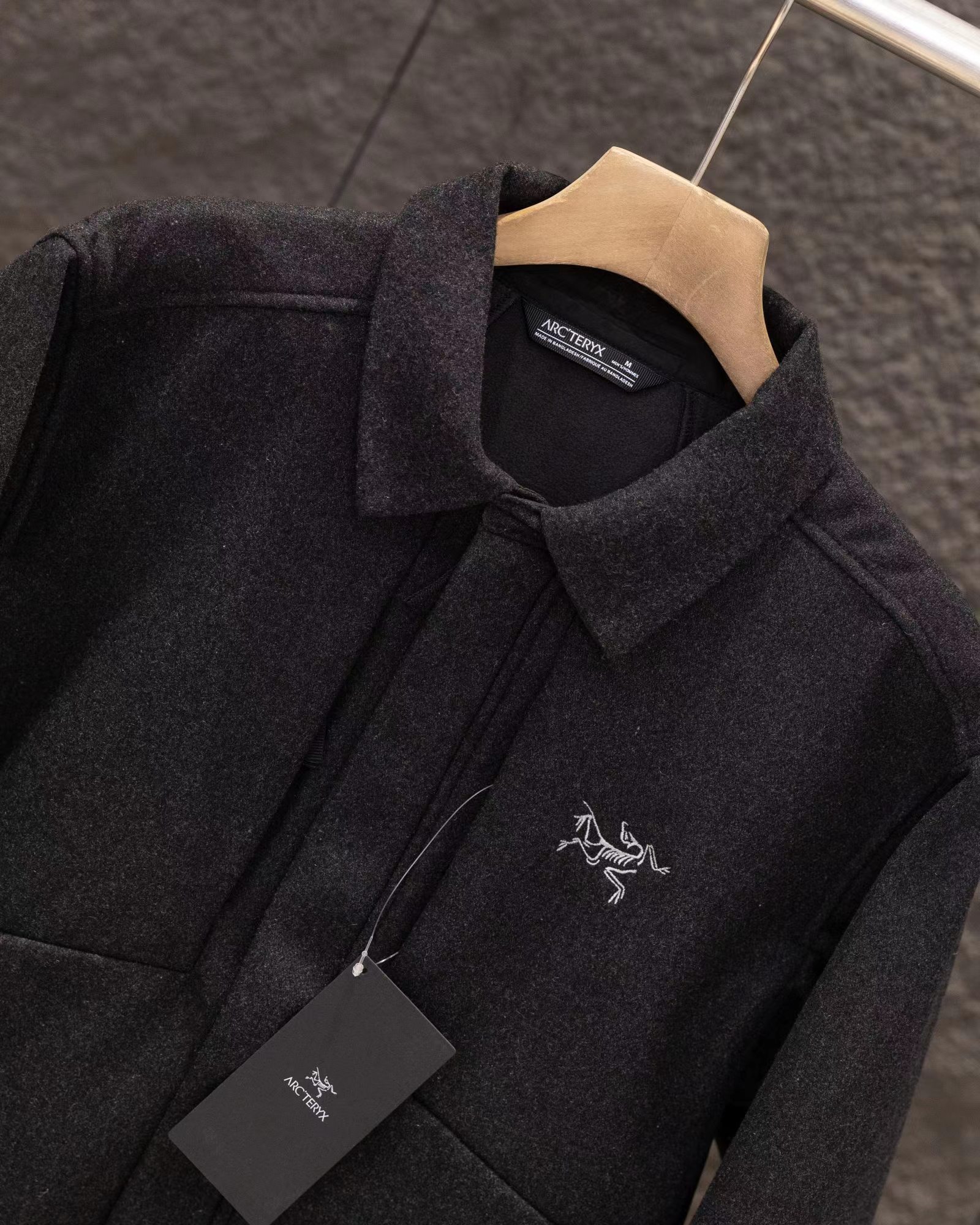 面料与做工:羊毛科技Sawyer 采用的是 自研的 Tech Wool 面料,本质上是一种羊毛混纺科技面料,手感偏硬、略粗糙,远不如同门的 Gamma MX 那种贴肤顺滑。但质感扎实,非常耐穿耐操。这不是一件适合贴身穿的软壳,个人感觉是偏“硬壳思路”的羊毛夹克。表面有轻微起毛,摸起来很有“正经羊毛大衣”的味道,但功能性比一般羊毛外套强太多。版型与上身感受:不贴身,有气场Sawyer 用的是 3D立体剪裁,整体偏宽松,上身不会有那种“鸟家软壳贴着肉的安全感”,而是更像一件机能风羊毛外套。肩膀有挺括感,视觉上很显精神、很利落。只适合当醉外层使用,不适合外面再叠穿一个硬壳夹克。