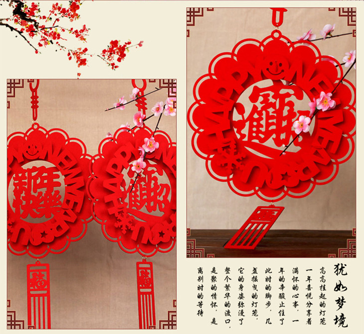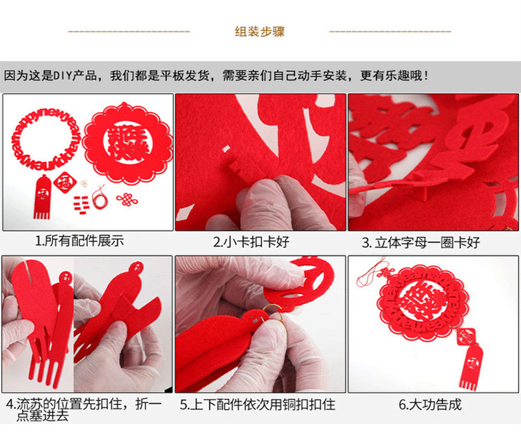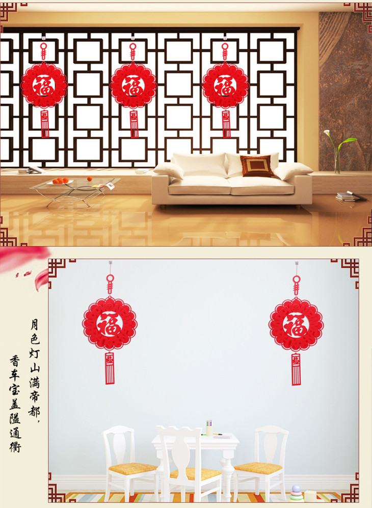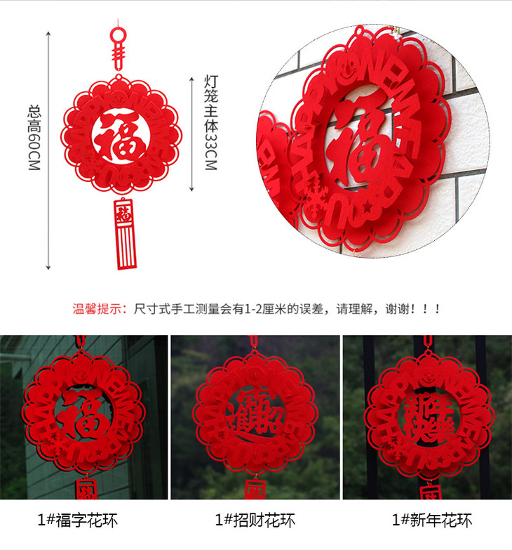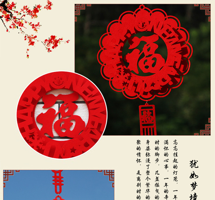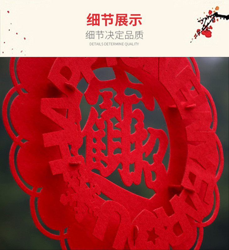 【装饰】*立体门福字3d挂件喜庆新年橱窗房门节日装饰毛毡布艺过年挂饰春节