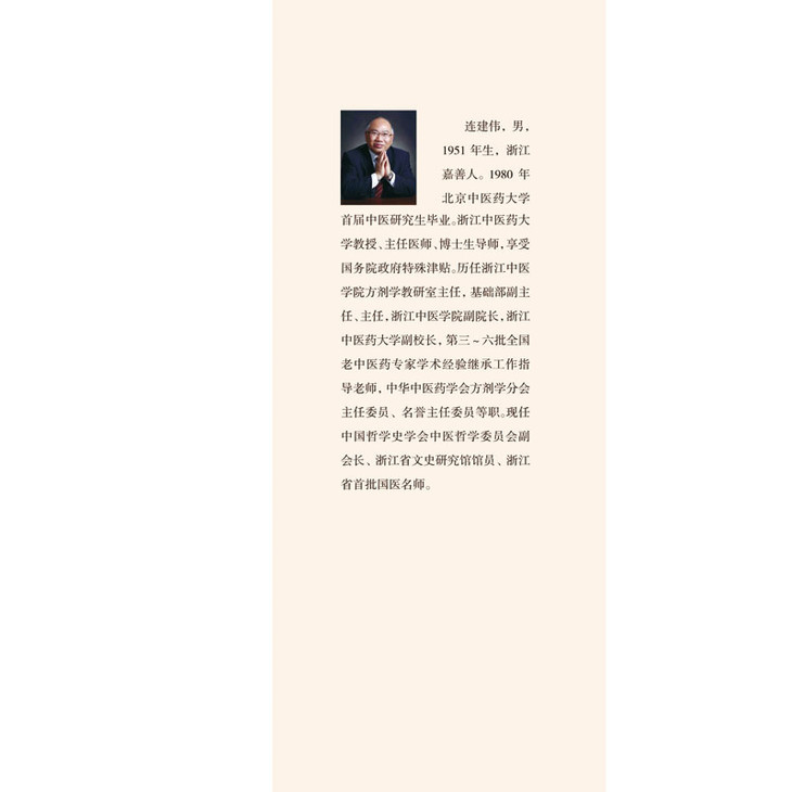连建伟,男,1951年生,浙江嘉善人。1980年毕业于北京中医药大学首届中医研究生。浙江中医药大学教授、主任中医师、博士生导师,享受国务院政府特殊津贴。历任浙江中医学院方剂学教研室主任,基础部副主任、主任,浙江中医学院副院长,浙江中医药大学副校长,第三、四、五、六批全国老中医药专家学术经验继承工作指导老师,中华中医药学会方剂学分会主任委员、名誉主任委员等职。现任中国哲学史学会中医哲学委员会副会长、浙江省文史研究馆馆员、浙江省首批国医名师。