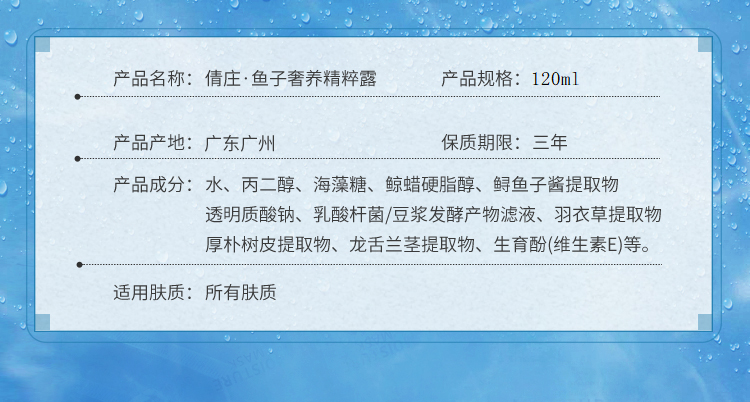 倩庄鱼子奢养精粹露提拉紧致紧致深层补水保湿滋润爽肤水正品