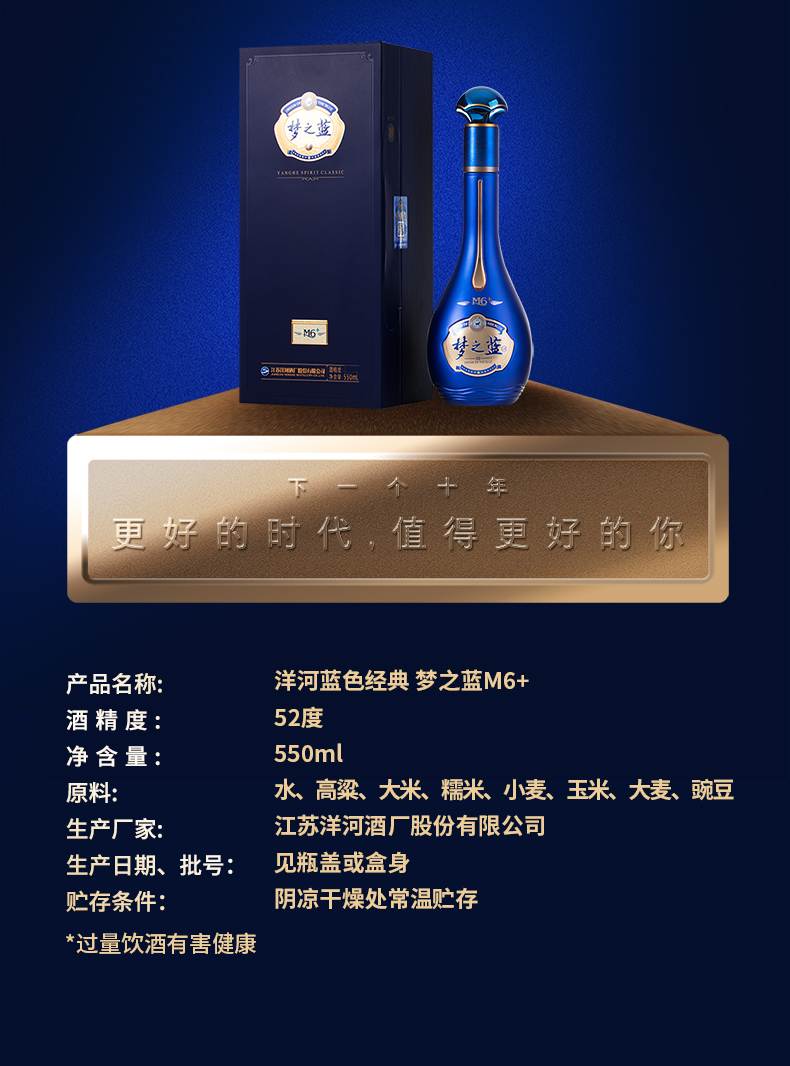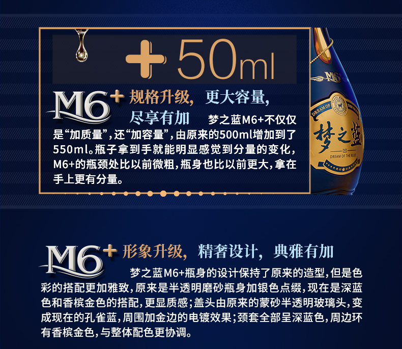 洋河蓝色经典梦之蓝M6+浓香型白酒 550ML(52度)