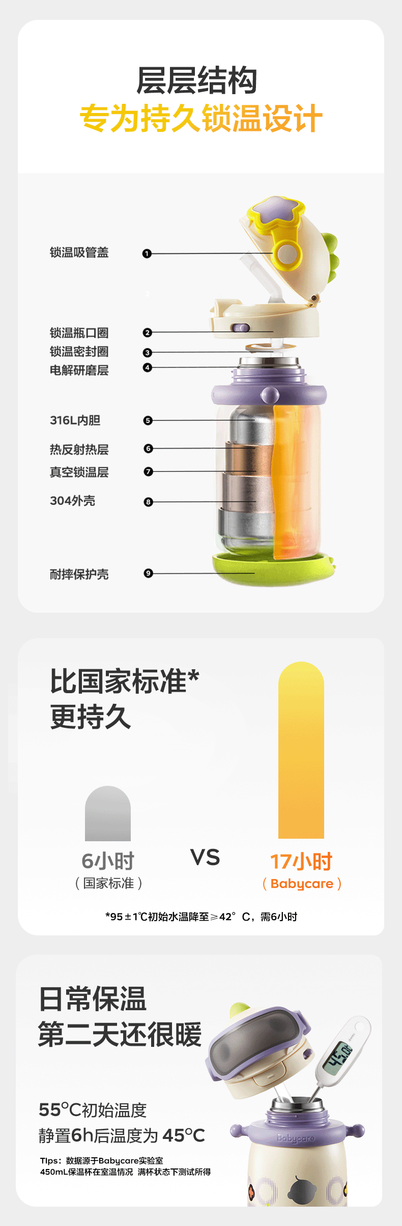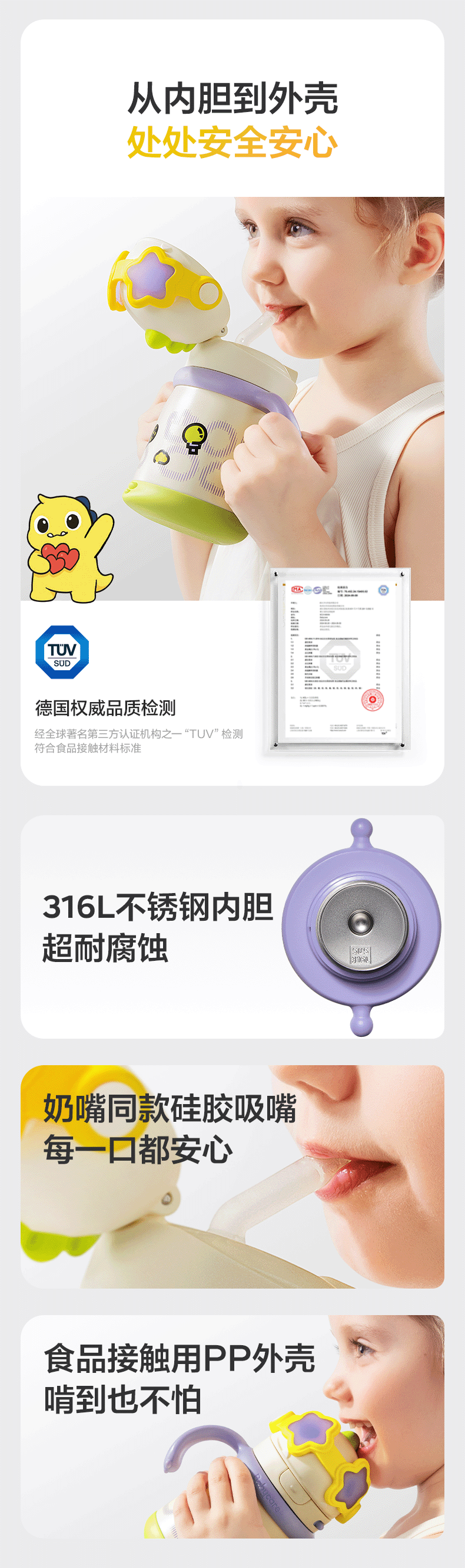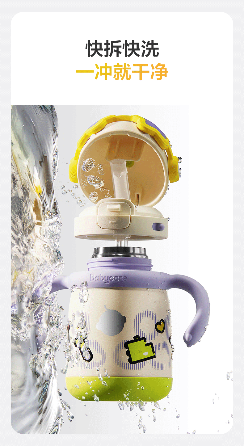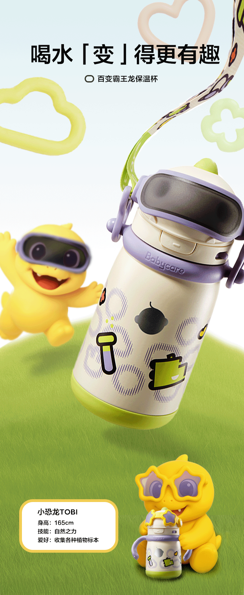 baby care300ml百变霸王龙保温杯把手款BC2410997黎空紫