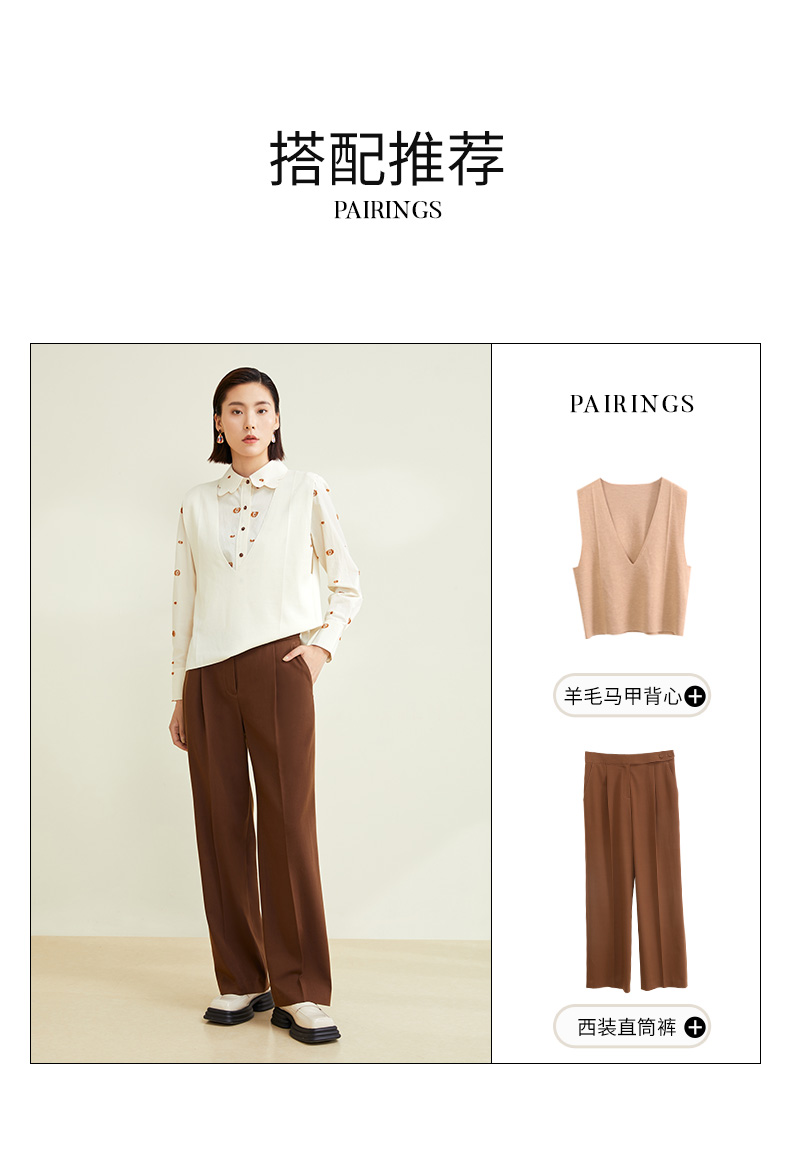玳莎宽松西装百搭直筒裤女2022早秋新款通勤显瘦垂感小个子阔腿裤 CC36304