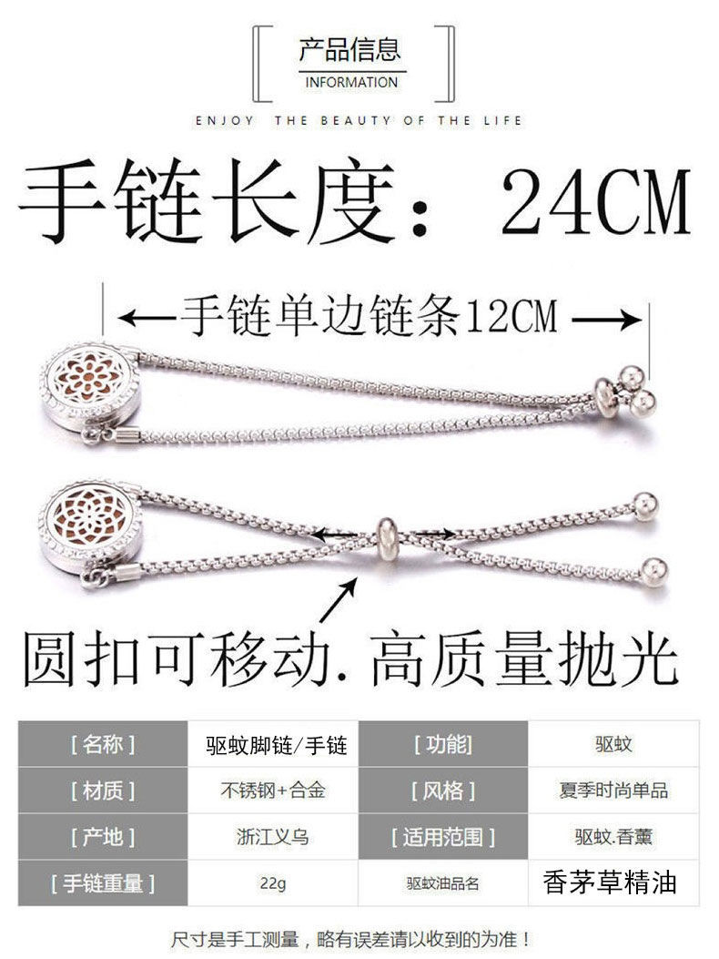 网红香薰驱蚊防蚊脚链女ins风脚踝链钛钢驱蚊手链脚环链2022年款